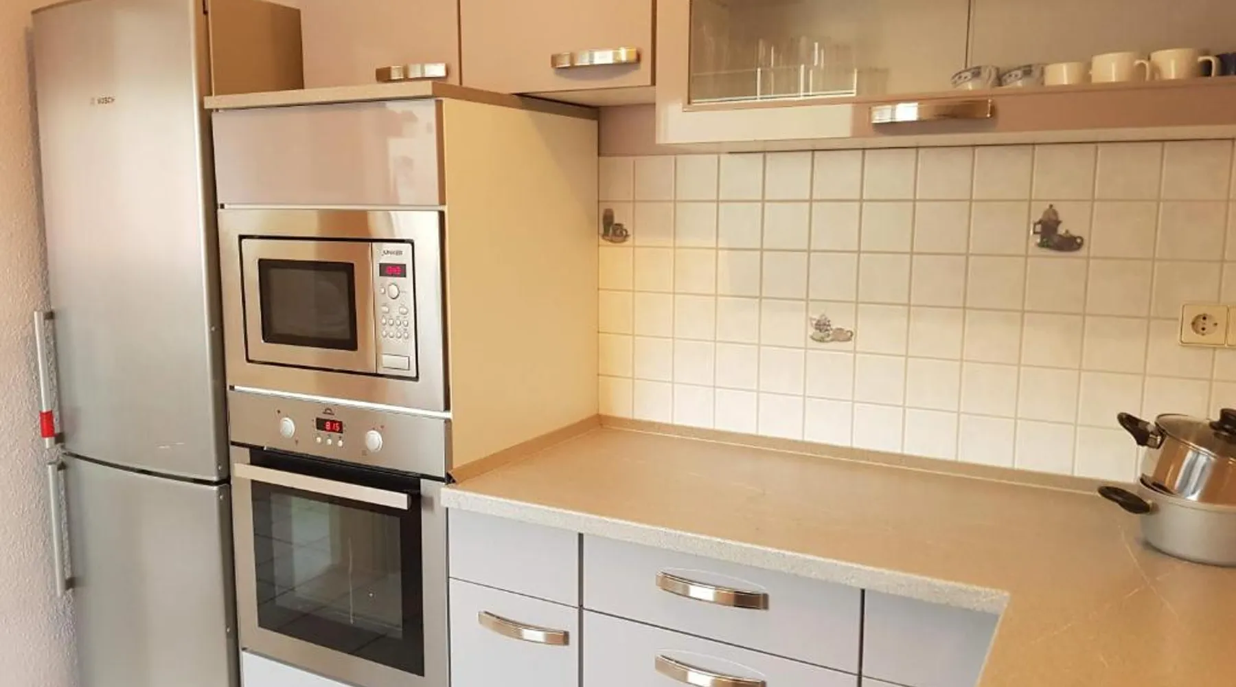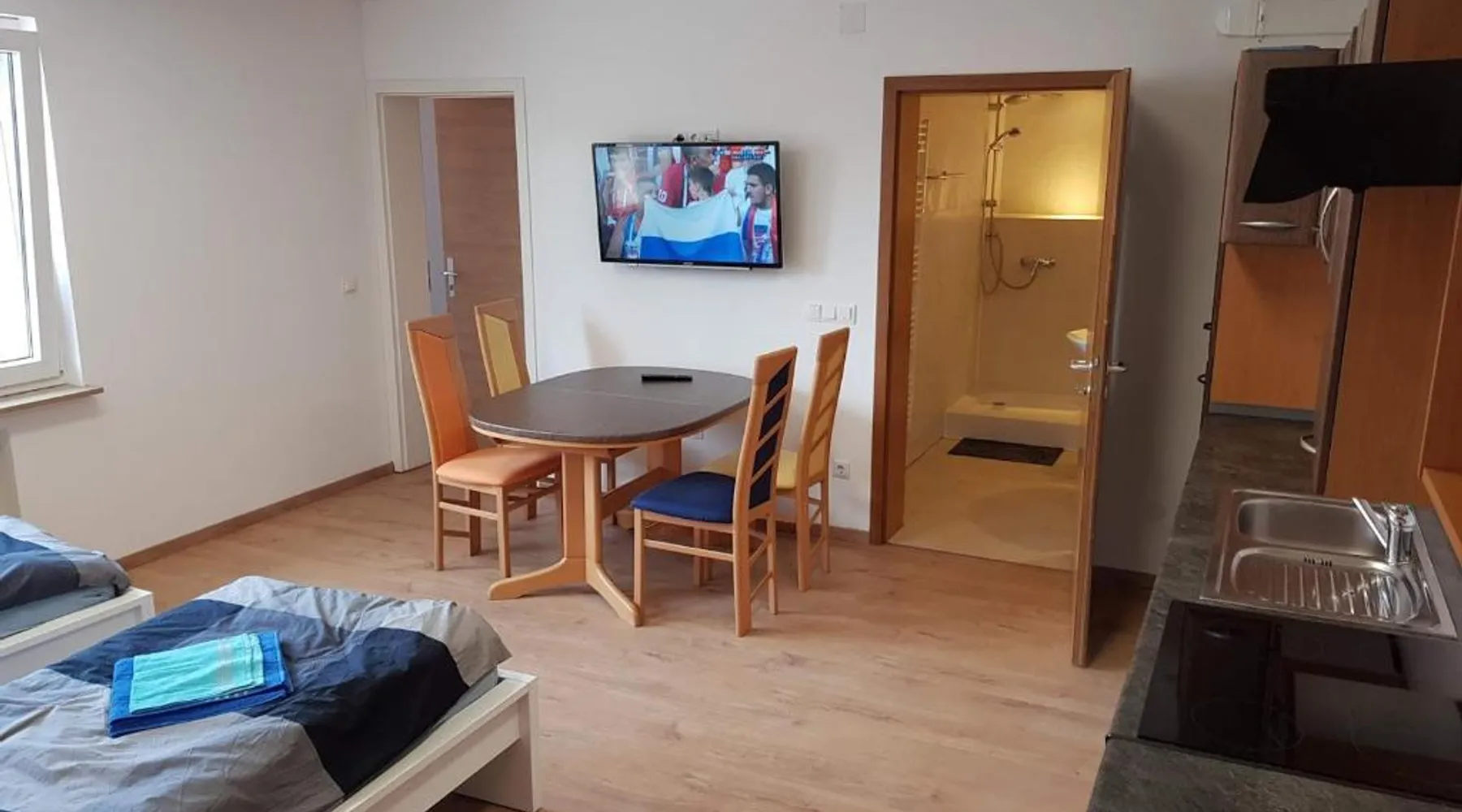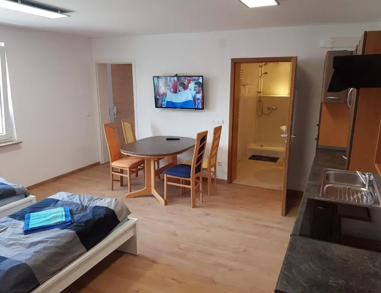 Comfortable Accommodations: Monteurzimmer Obersulm in Obersulm offers family rooms with private bathrooms, kitchenettes, and mountain views. Each room includes a work desk, sofa bed, and parquet floors. Outdoor Spaces: Guests can relax in the garden or on the terrace, enjoying free WiFi and outdoor furniture. The property features a lounge, shared kitchen, and dining area. Convenient Facilities: The guest house provides free on-site private parking, a paid airport shuttle service, and a lounge. Additional amenities include a washing machine, dishwasher, and soundproofing. Local Attractions: Located 50 mi from Stuttgart Airport, Monteurzimmer Obersulm is near Theater Heilbronn (11 mi), Market Square Heilbronn (14 mi), and Kolbenschmidt Arena (15 mi). This apartment is consisted of of 1 living room, 3 separate bedrooms and 1 bathroom with a shower and free toiletries. The well-equipped kitchen features a stovetop, a refrigerator, a dishwasher and kitchenware. The apartment offers a washing machine, a private entrance, a coffee machine, a flat-screen TV with satellite channels, as well as mountain views. The unit offers 6 beds.