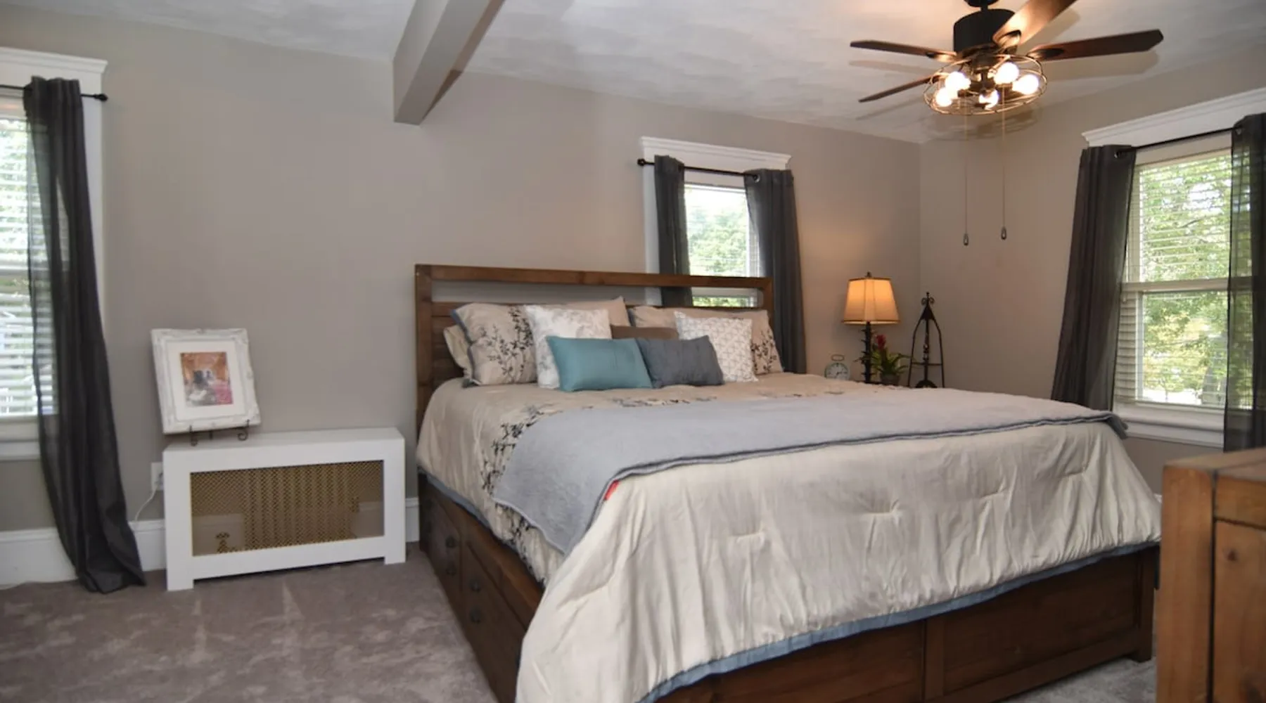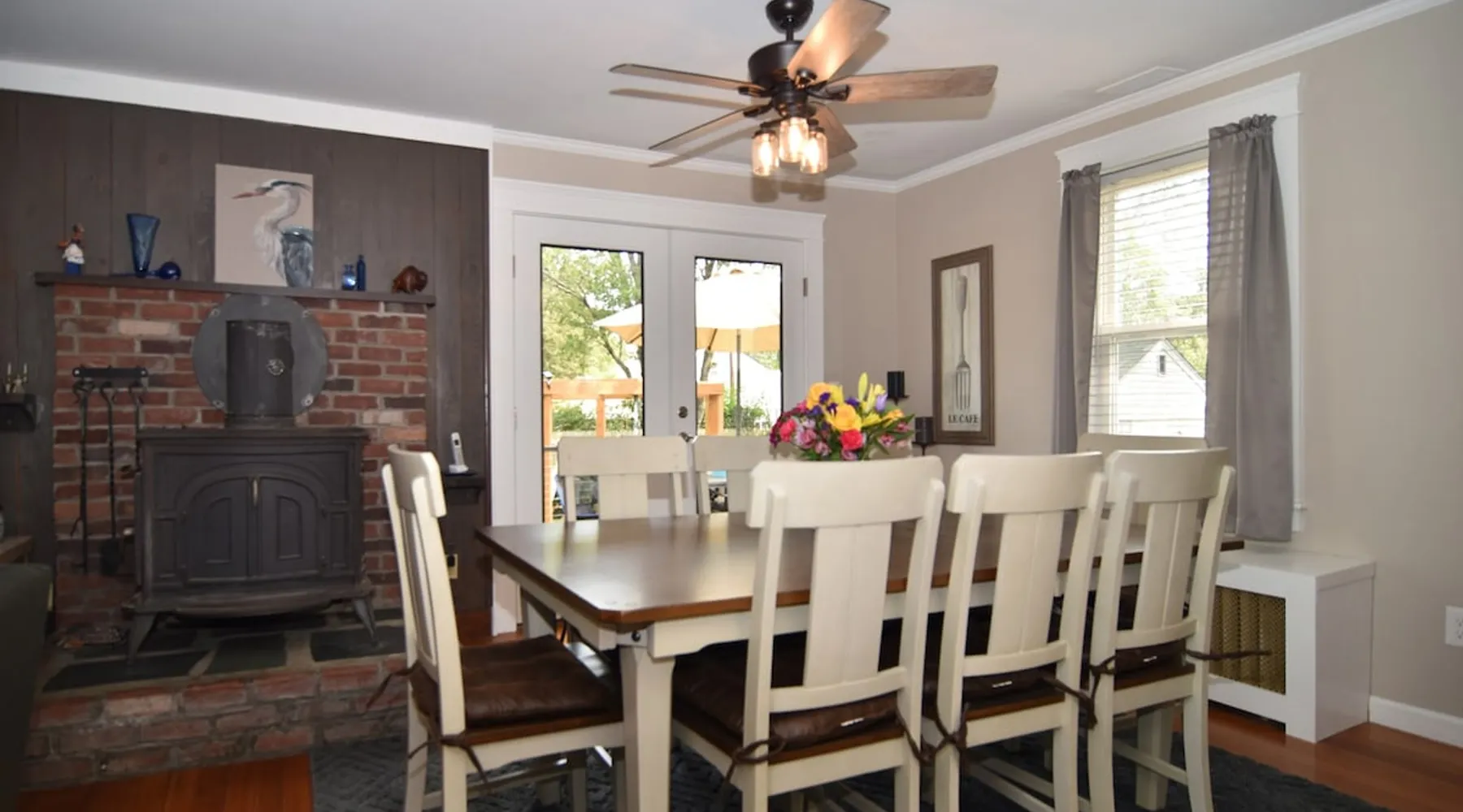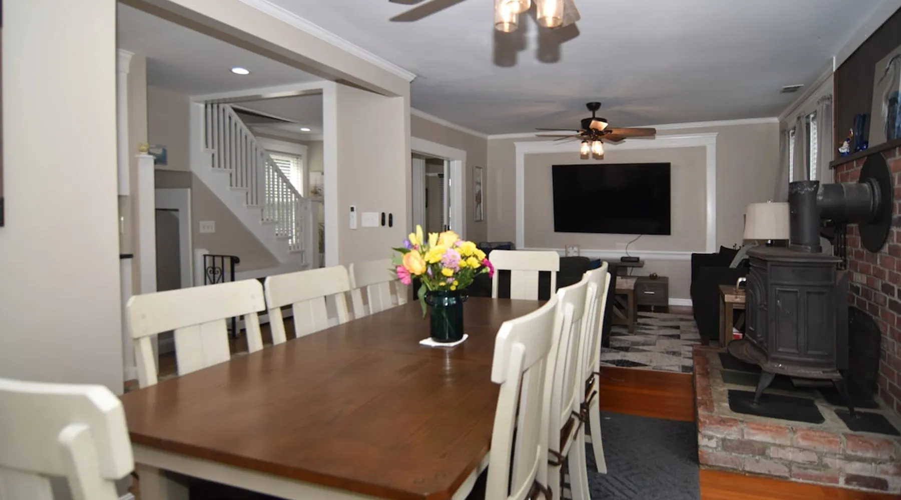Beautiful re-modeled single home, 3 bedroom, 2 full bath, full dining room, 1 living room, wood burning stove, kids entertainment room and laundry. New A/C, grill, outdoor dining table, ping pong, play structure, outdoor lounging area & large, private fenced in yard. Fully equipped kitchen stocked w/all the essentials, quiet kid friendly neighborhood, close to bike path and shopping necessities. Fast WIFI, parking, 3 smart TVs, private side entrance, outdoor security cameras w/sensor lighting. The space Modern home w/New England feel of coziness and warmth. Unique octagon pergola w/relaxing swinging chairs as you sit outside and listen to the birds sing all around you. At night you get to relax outside as you sit around a cozy fire and enjoy New England evenings making smores and creating new family memories that will last a lifetime! Registration Details RE.06857-STR, expiry date: 2026-01-06T00:00:00Z