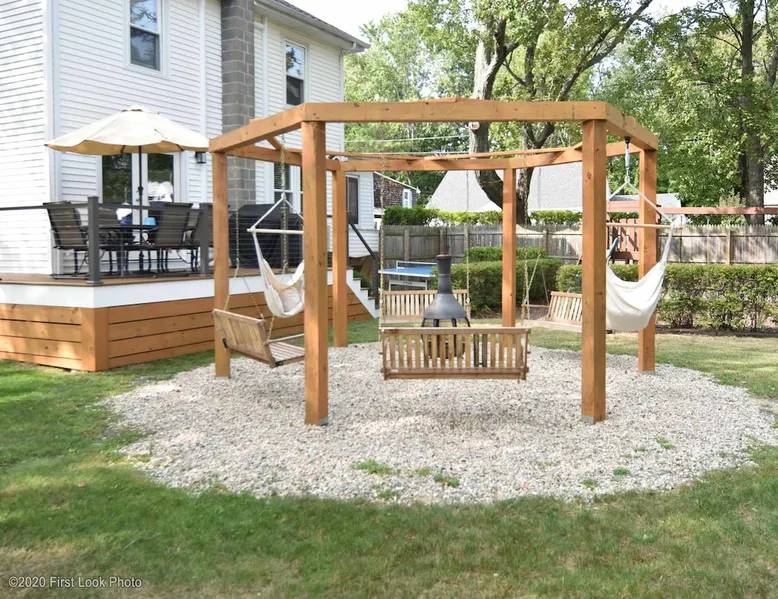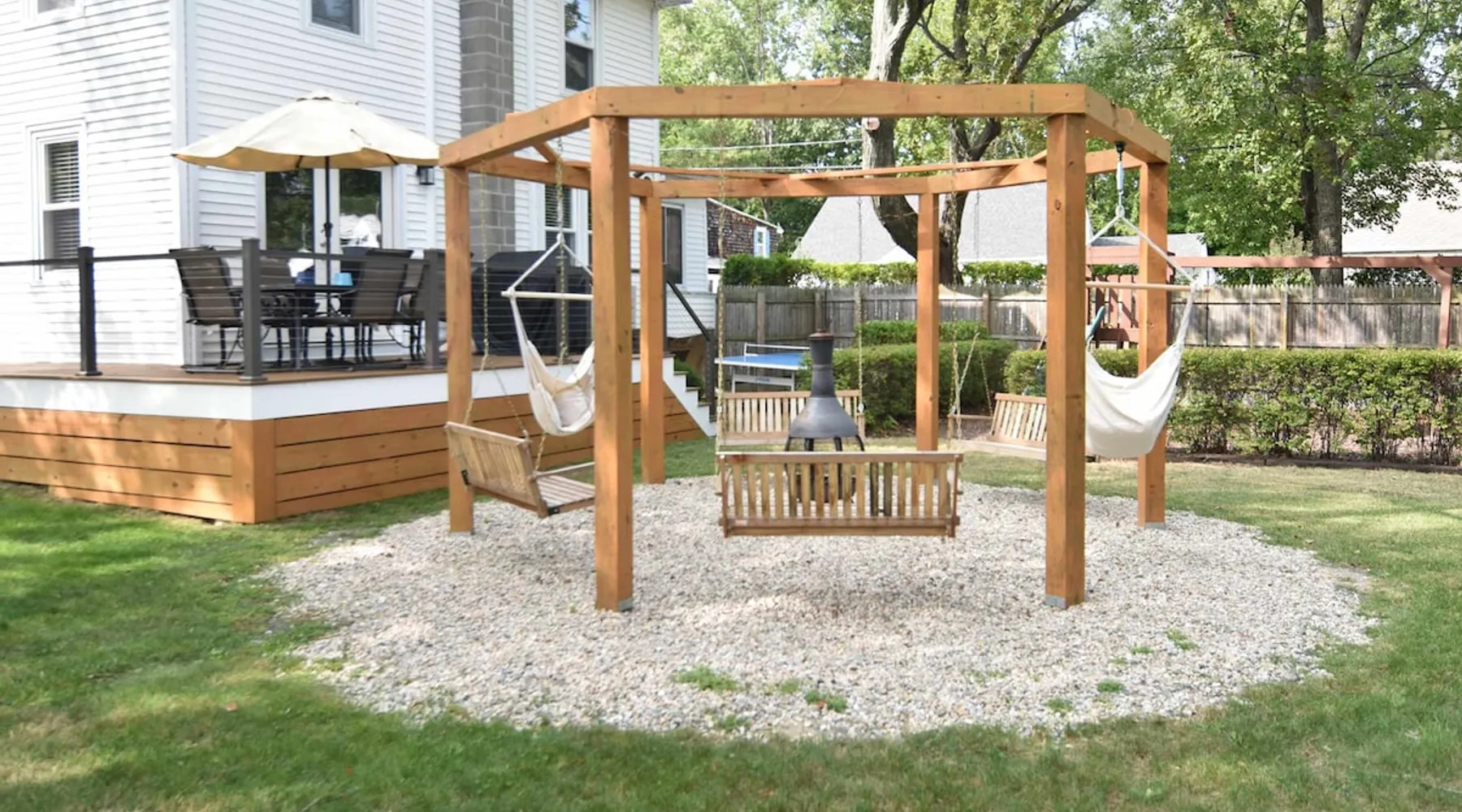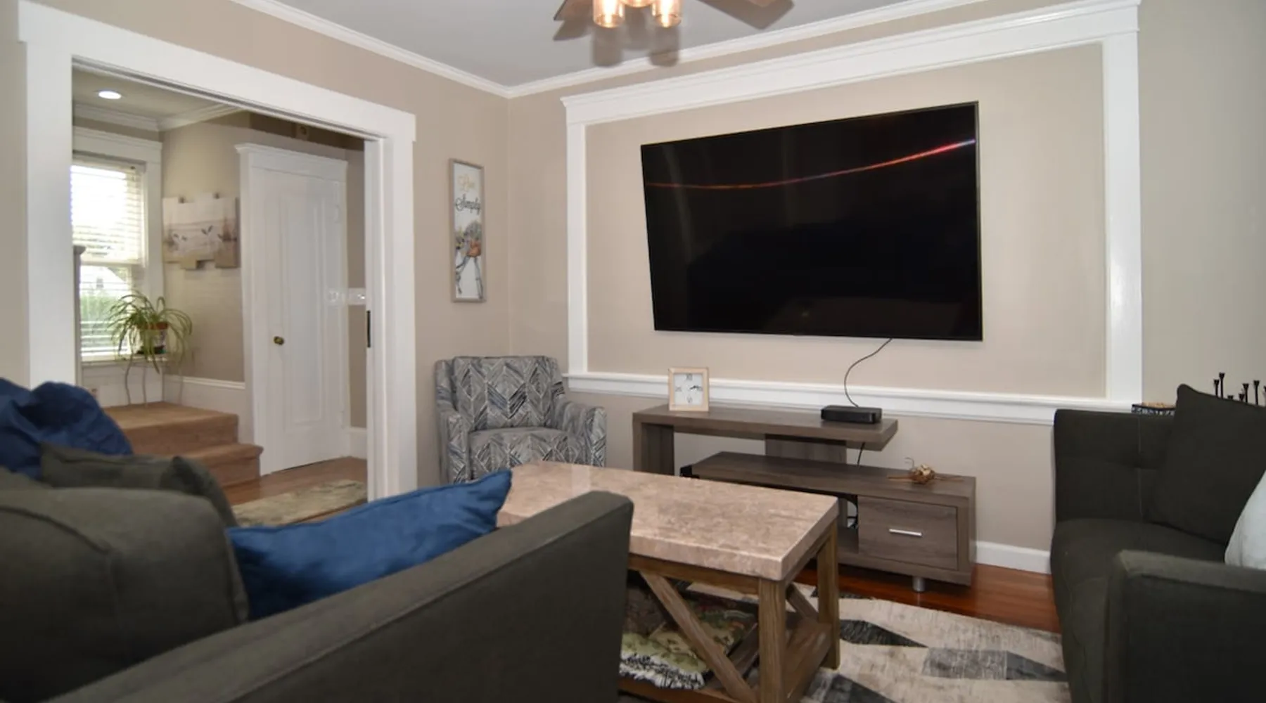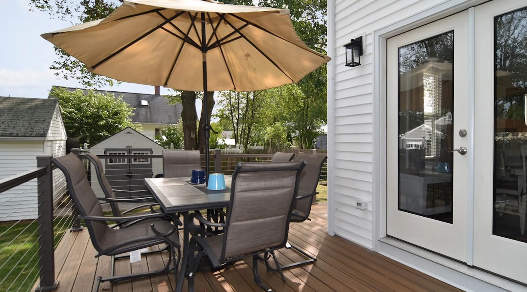 Beautiful re-modeled single home, 3 bedroom, 2 full bath, full dining room, 1 living room, wood burning stove, kids entertainment room and laundry. New A/C, grill, outdoor dining table, ping pong, play structure, outdoor lounging area & large, private fenced in yard. Fully equipped kitchen stocked w/all the essentials, quiet kid friendly neighborhood, close to bike path and shopping necessities. Fast WIFI, parking, 3 smart TVs, private side entrance, outdoor security cameras w/sensor lighting. The space Modern home w/New England feel of coziness and warmth. Unique octagon pergola w/relaxing swinging chairs as you sit outside and listen to the birds sing all around you. At night you get to relax outside as you sit around a cozy fire and enjoy New England evenings making smores and creating new family memories that will last a lifetime! Registration Details RE.06857-STR, expiry date: 2026-01-06T00:00:00Z