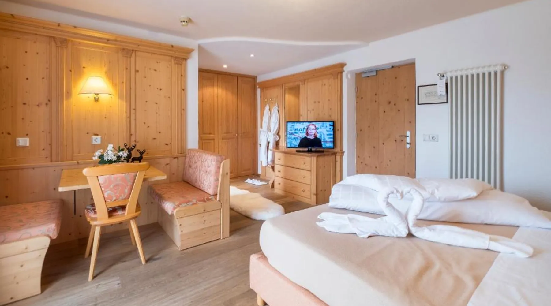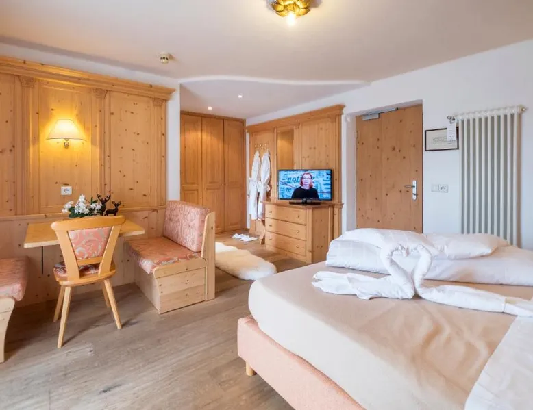Located 328 feet from the center of Badia, Hotel Serena offers rustic-style rooms, a free wellness center and a free ski bus to the Alta Badia ski area. The rooms come with an LCD TV, safety deposit box and wardrobe. The bathroom is complete with a hairdryer and free toiletries. Some rooms feature a balcony with mountain view. Wi-Fi is available. Breakfast at the Serena is buffet style. It includes sweet and savory food such as homemade cakes, biscuits, yogurt, fruit, cold cuts, eggs, bread and juices. The Serena’s restaurant à la carte offers local and international dishes. A dinner with local specialties is organized once a week. The wellness center includes a sauna, a hot tub and an indoor swimming pool. There is a games room for children with a ping pong and football table. Guests can relax on the terrace with loungers and parasols. The hotel also provides free guided excursions 3 times a week (ONLY IN SUMMER). Brunico Train Station is 22 mi away. The on-site parking is free of charge. Featuring a balcony with mountain view, this room offers an LCD TV, wooden furnishings and carpeted floors. Its bathroom is complete with a hairdryer and free toiletries. Please specify bed preference when booking.