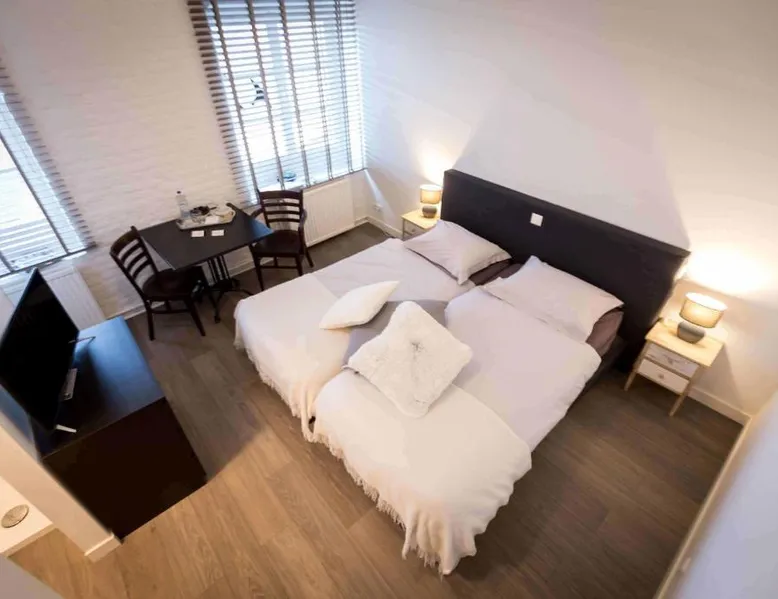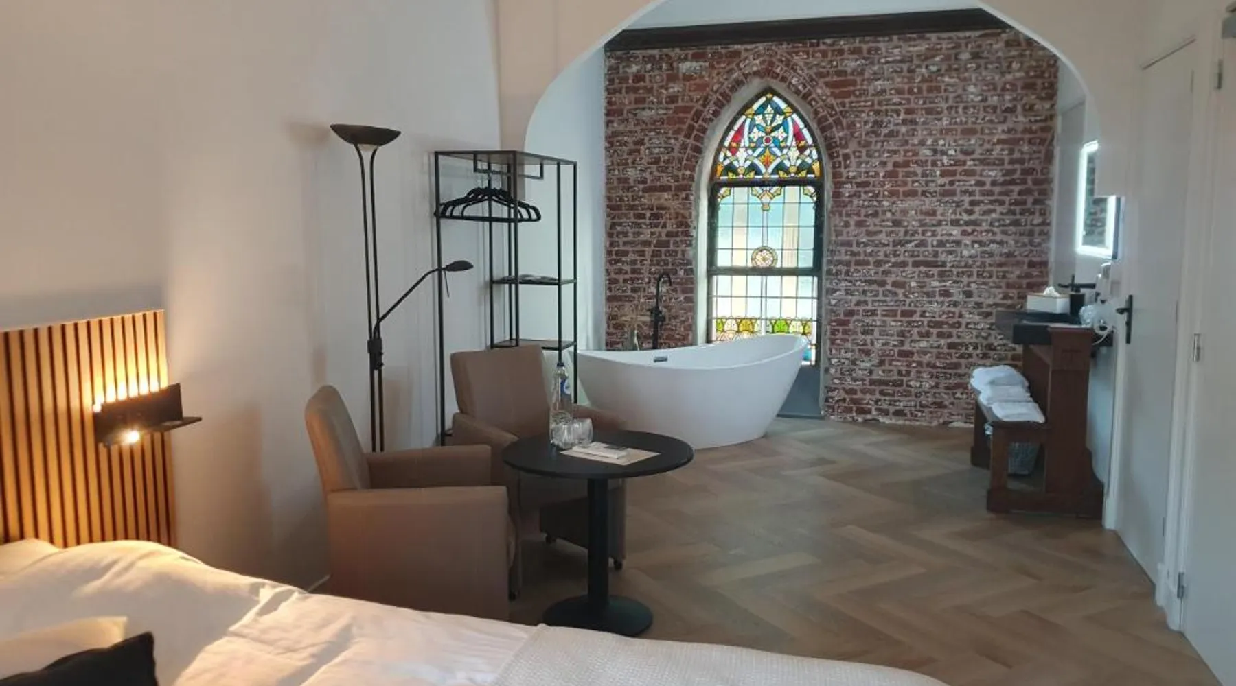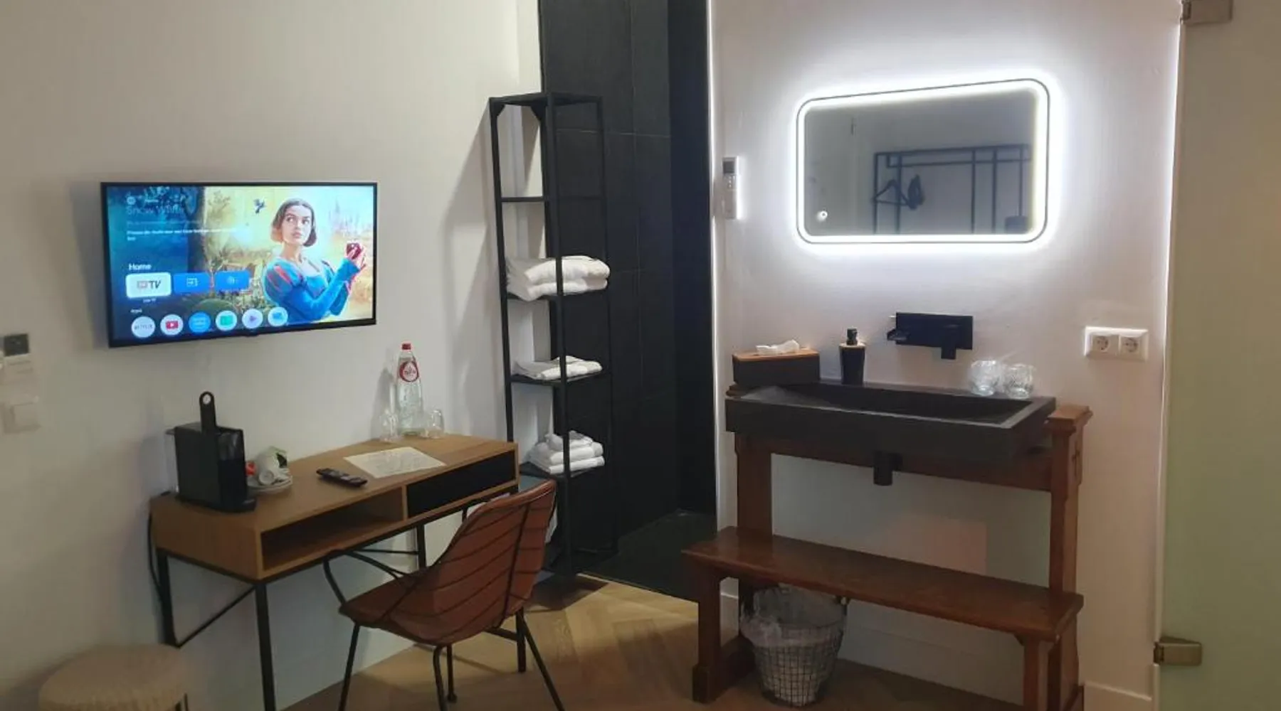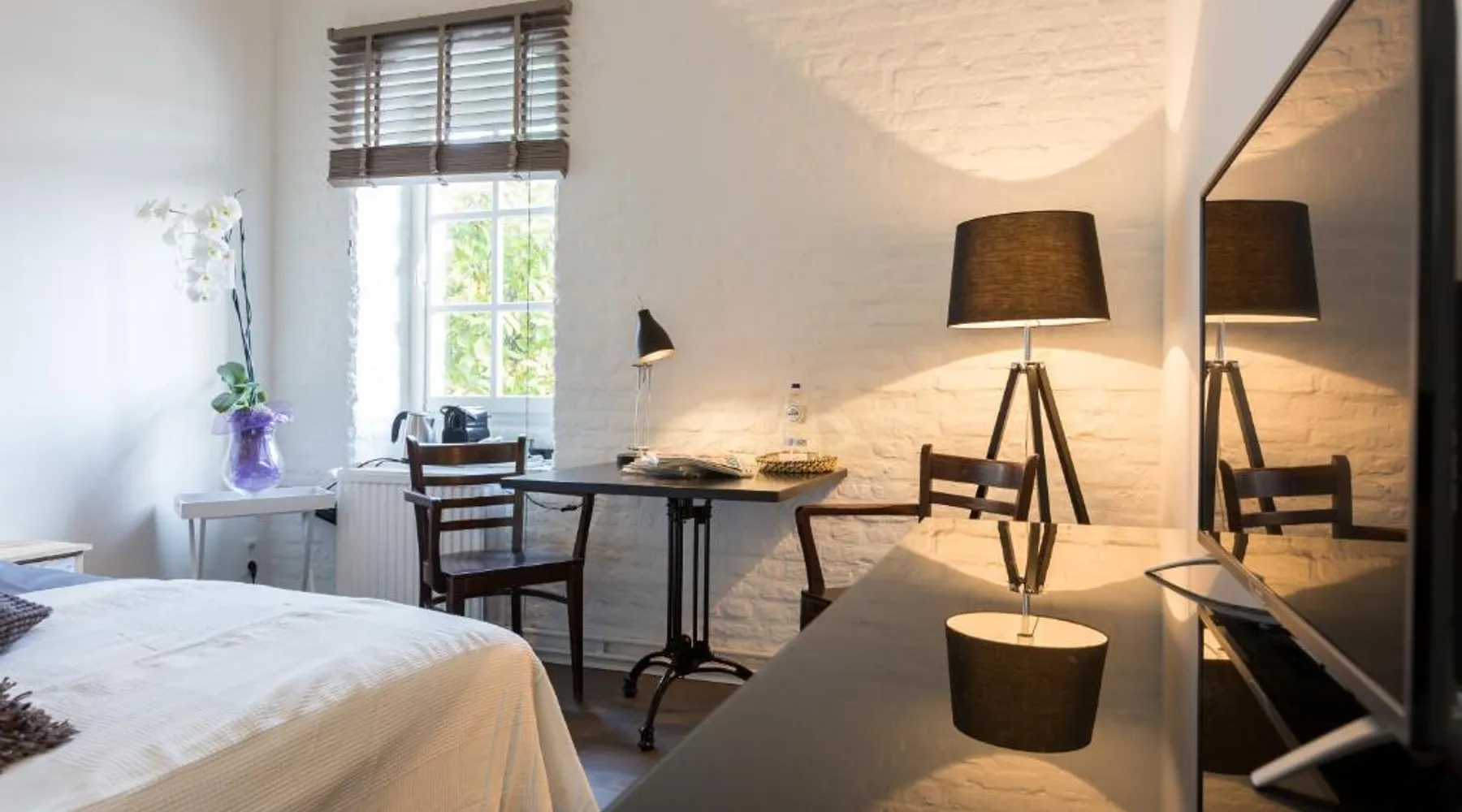 Comfortable Accommodations: B&B - Eetcafe - Riekelt in Gronsveld offers comfortable rooms with private bathrooms, free WiFi, and modern amenities. Each room includes a work desk, TV, and a private balcony or terrace. Dining and Leisure: Guests can enjoy a continental breakfast with vegetarian and gluten-free options, including juice, cheese, and fruits. The on-site restaurant serves European cuisine for brunch, lunch, and dinner, complemented by a bar offering cocktails. Convenient Location: Located 9.3 mi from Maastricht-Aachen Airport, the property is a short walk from Kasteel van Rijckholt. Nearby attractions include Basilica of Saint Servatius and Vrijthof, each 6.8 mi away. Free bicycles are available for exploring the area. The family room offers a seating area, a sofa, as well as a private bathroom featuring a walk-in shower and a hairdryer. This family room features a tea and coffee maker, flat-screen TV with streaming services, a quiet street view, as well as wine/champagne for guests.