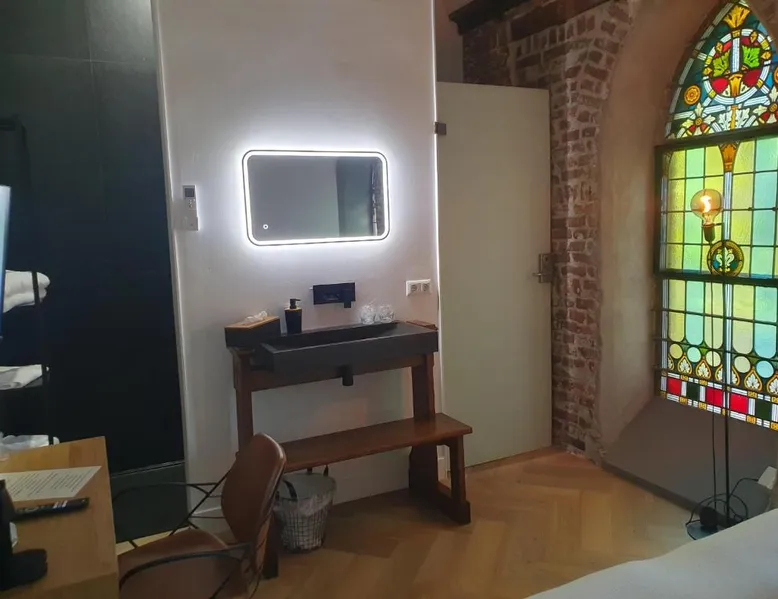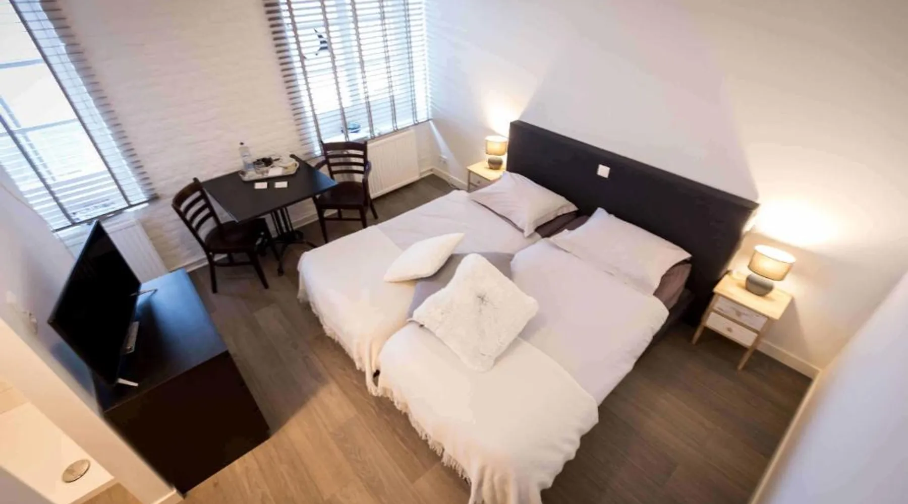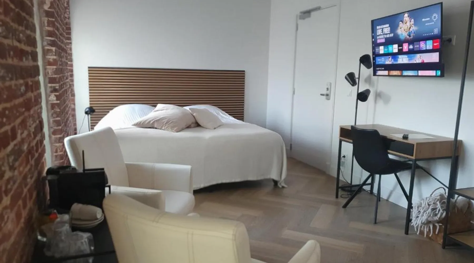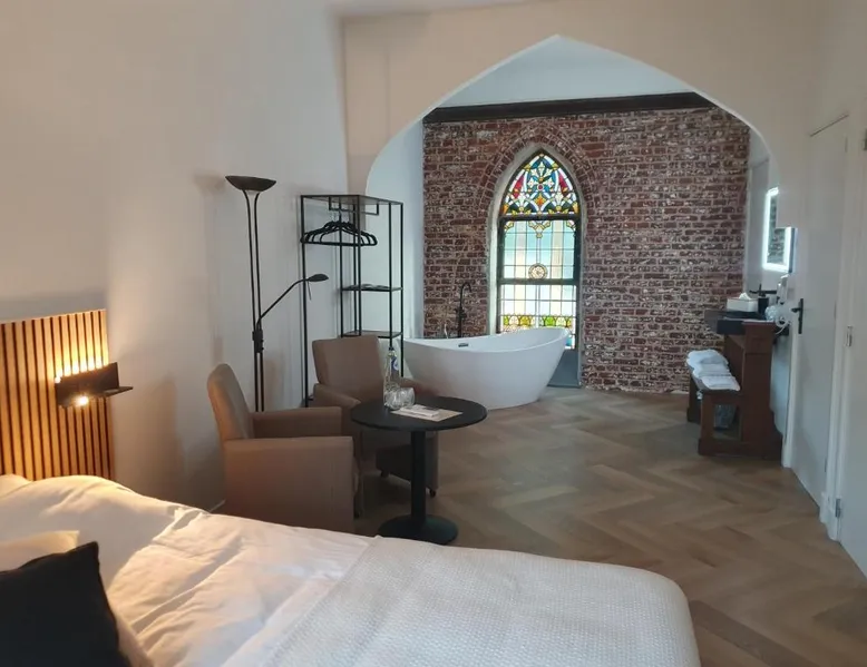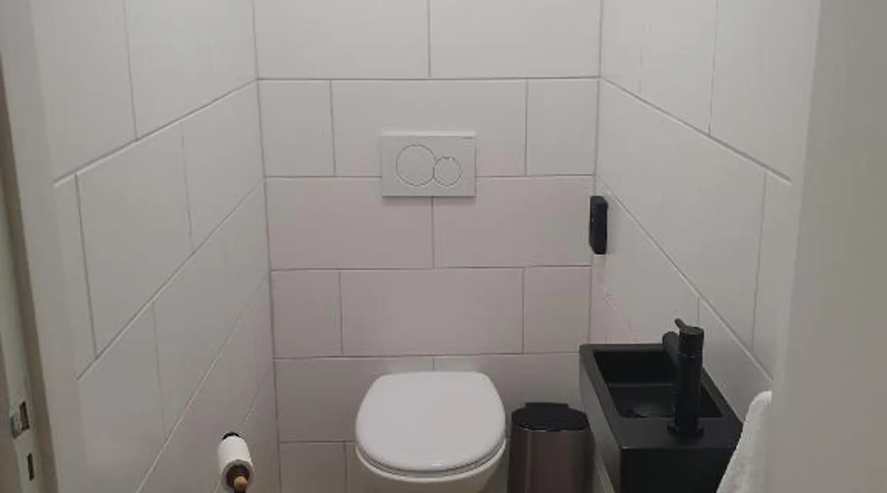 Comfortable Accommodations: B&B - Eetcafe - Riekelt in Gronsveld offers comfortable rooms with private bathrooms, free WiFi, and modern amenities. Each room includes a work desk, TV, and a private balcony or terrace. Dining and Leisure: Guests can enjoy a continental breakfast with vegetarian and gluten-free options, including juice, cheese, and fruits. The on-site restaurant serves European cuisine for brunch, lunch, and dinner, complemented by a bar offering cocktails. Convenient Location: Located 9.3 mi from Maastricht-Aachen Airport, the property is a short walk from Kasteel van Rijckholt. Nearby attractions include Basilica of Saint Servatius and Vrijthof, each 6.8 mi away. Free bicycles are available for exploring the area. The family room offers a seating area, a sofa, as well as a private bathroom featuring a walk-in shower and a hairdryer. This family room features a tea and coffee maker, flat-screen TV with streaming services, a quiet street view, as well as wine/champagne for guests.
