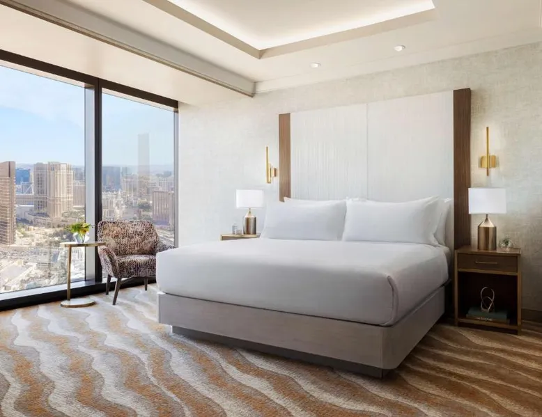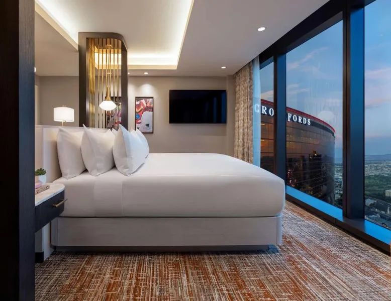 Crockfords Las Vegas, LXR Hotels & Resorts at Resorts World will present guests with approximately 230 lavish guest rooms and suites, upscale amenities and highly personalized service, providing a distinct experience that is poised to be the most coveted destination on the Strip. Guests at Crockfords Las Vegas can discreetly check-in and enjoy private access to their accommodations via an exclusive entrance and grand lobby. Integrated into Resorts World Las Vegas’s hotel tower, guests can also enjoy convenient access to the resort’s premier gaming, dining and entertainment offerings. The spacious suite offers air conditioning, a mini-bar, a safe deposit box, heating, as well as a flat-screen TV. The unit offers 1 bed.