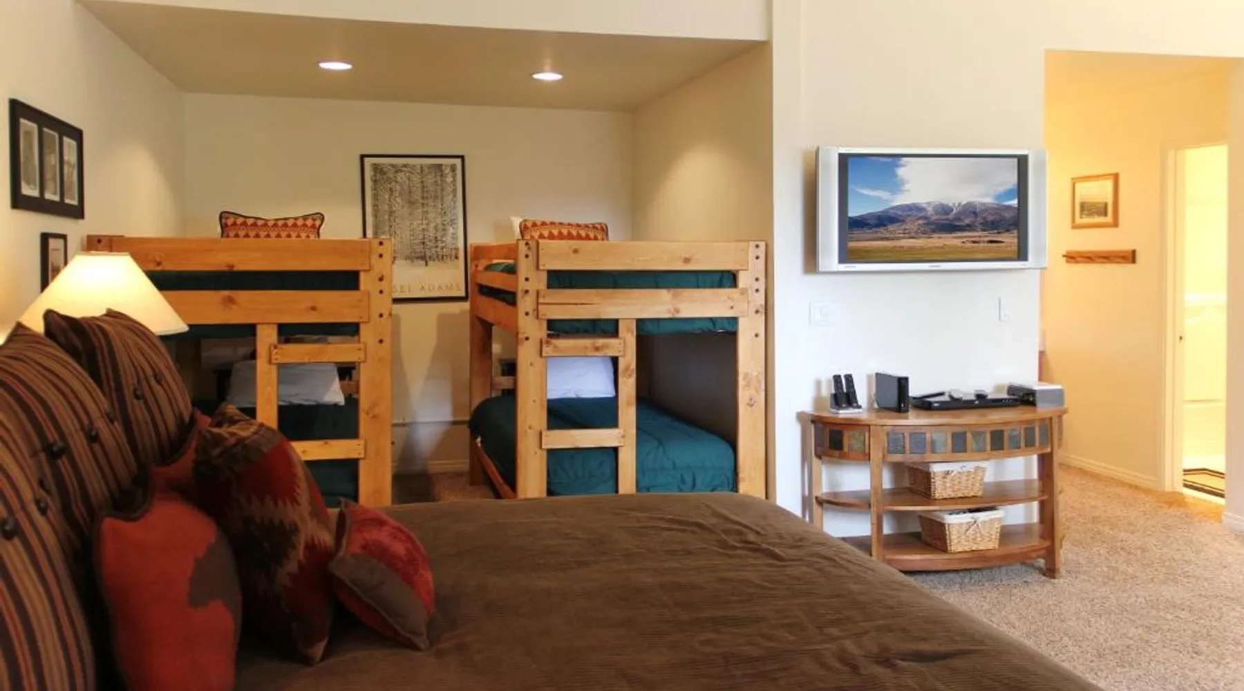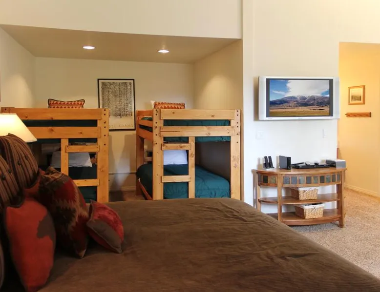 Comfortable Accommodations: St Anton Wooded View 2-Bedroom Condos with Ski Lockers in Mammoth Lakes offers apartment-style accommodations with two bedrooms. Each unit features a private bathroom, fully equipped kitchen, and a cozy fireplace. Leisure Facilities: Guests can enjoy a sauna, outdoor swimming pool, and hot tub. Free WiFi is available throughout the property, ensuring connectivity. Convenient Amenities: The apartment includes a barbecue area, hairdryer, and TV. Free on-site private parking is provided for added convenience. Activities and Attractions: Skiing and cycling are popular activities nearby. Mammoth Mountain is 5 mi away, while Yosemite Tioga Pass is 30 mi from the property. Mammoth Yosemite Airport is 11 mi distant. Highly rated by guests. Guests will have a special experience as this apartment provides a sauna and a fireplace. This spacious apartment comes with 1 living room, 2 separate bedrooms and 2 bathrooms with a hairdryer. The apartment's kitchen is available for cooking and storing food. This apartment features a barbecue and a TV with cable channels. The unit has 5 beds.