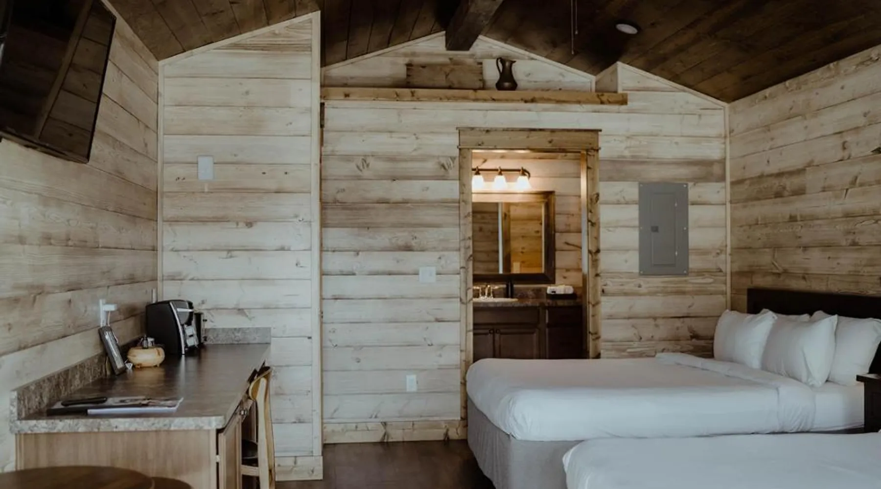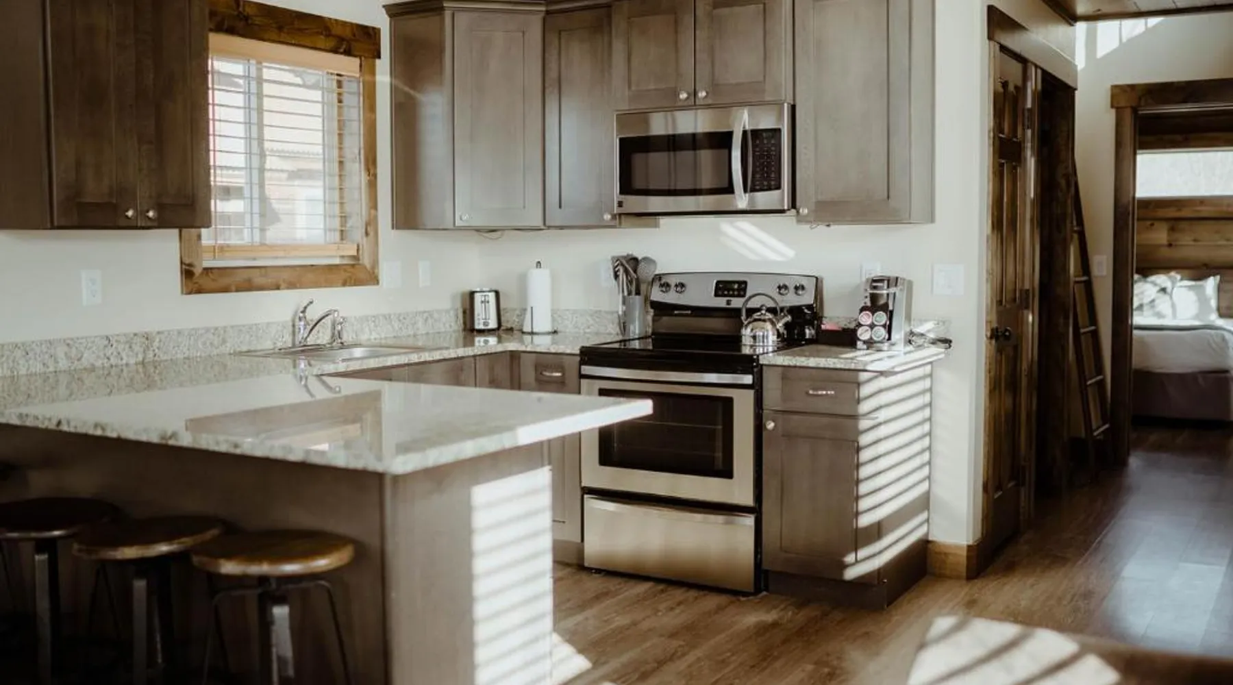 Comfortable Accommodations: Rooms feature air-conditioning, private bathrooms, and modern amenities. Guests appreciate the room cleanliness and comfort. Dining Experience: The family-friendly restaurant serves American cuisine with vegetarian, vegan, gluten-free, and dairy-free options. Breakfast includes fresh pastries and fruits. Leisure Facilities: The resort offers a seasonal outdoor swimming pool, hot tub, and outdoor play area. Additional amenities include an outdoor fireplace, beauty services, and live music. Location and Activities: Located in Victor, the resort is 35 mi from Jackson Hole Airport. Nearby attractions include Grand Teton National Park (26 mi) and an ice-skating rink. Activities include skiing and cycling. This studio's special feature is the fireplace. The fully equipped kitchenette features a refrigerator, a microwave, a tea and coffee maker and a toaster. This air-conditioned studio includes a flat-screen TV with streaming services, a private bathroom as well as a terrace. The unit offers 2 beds.