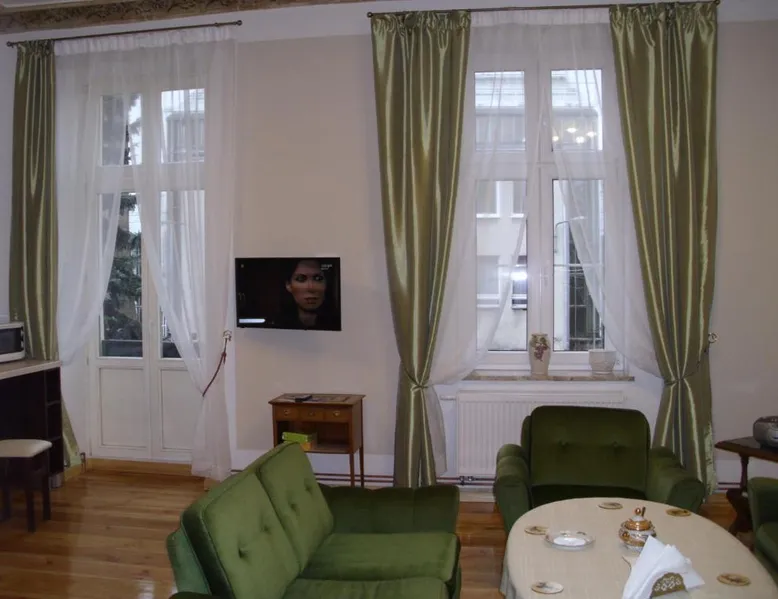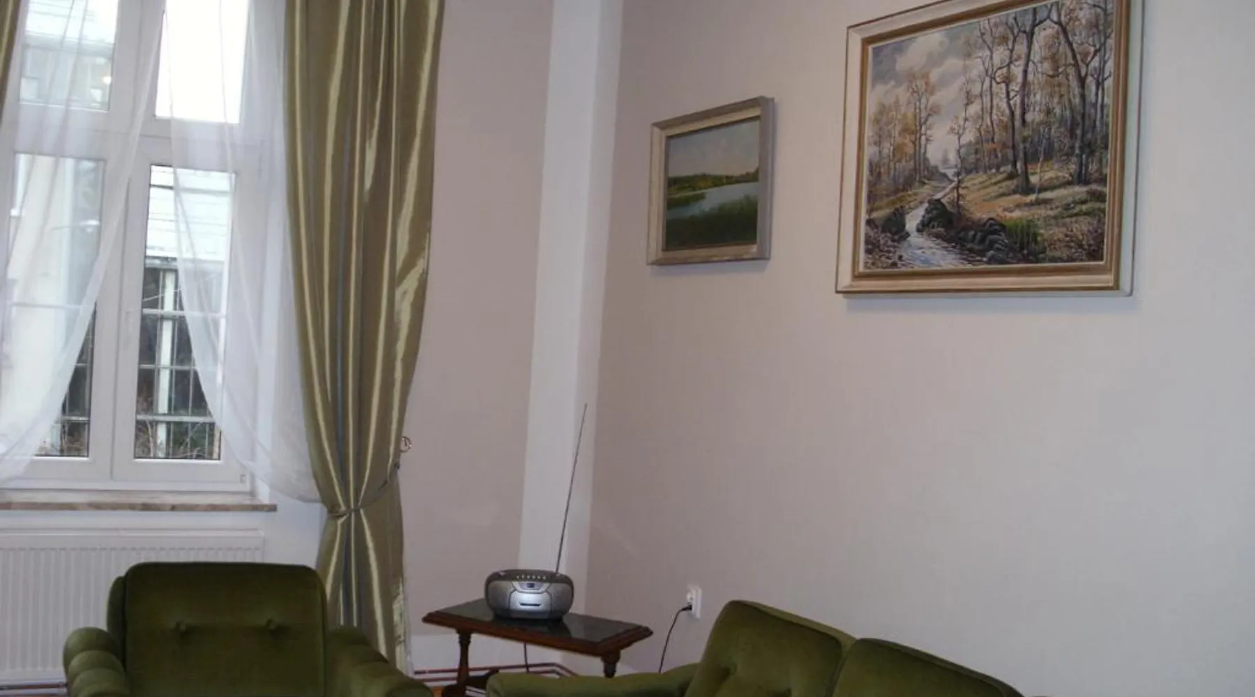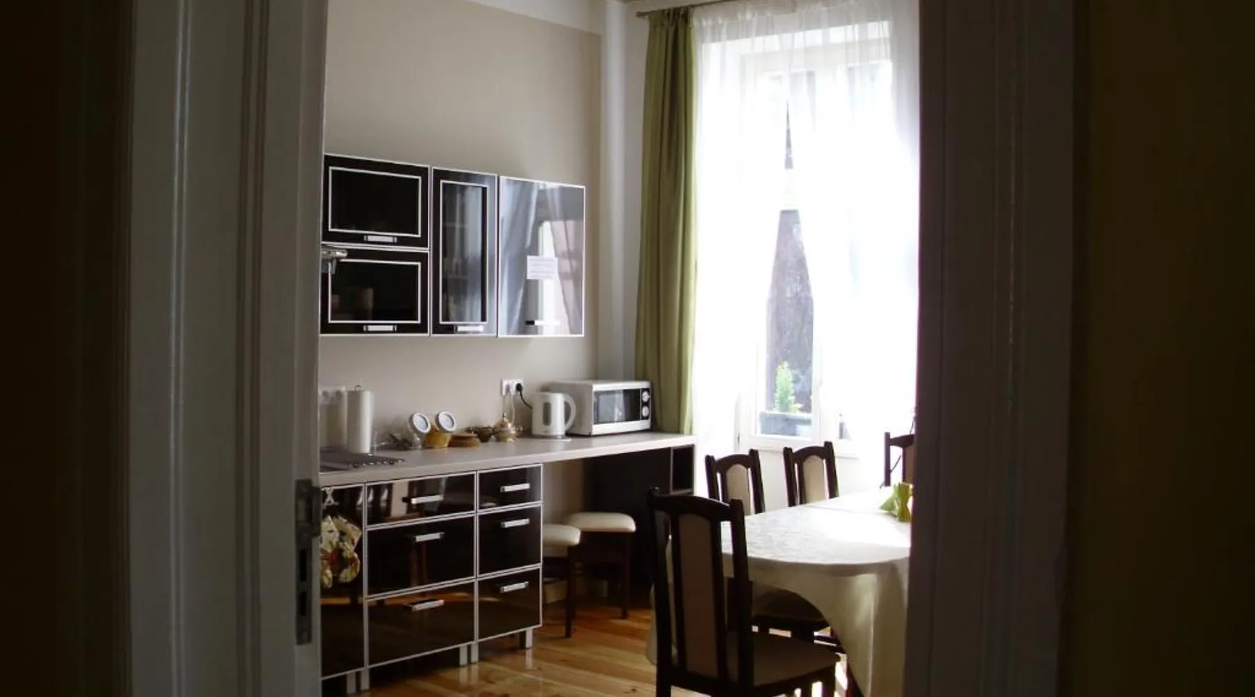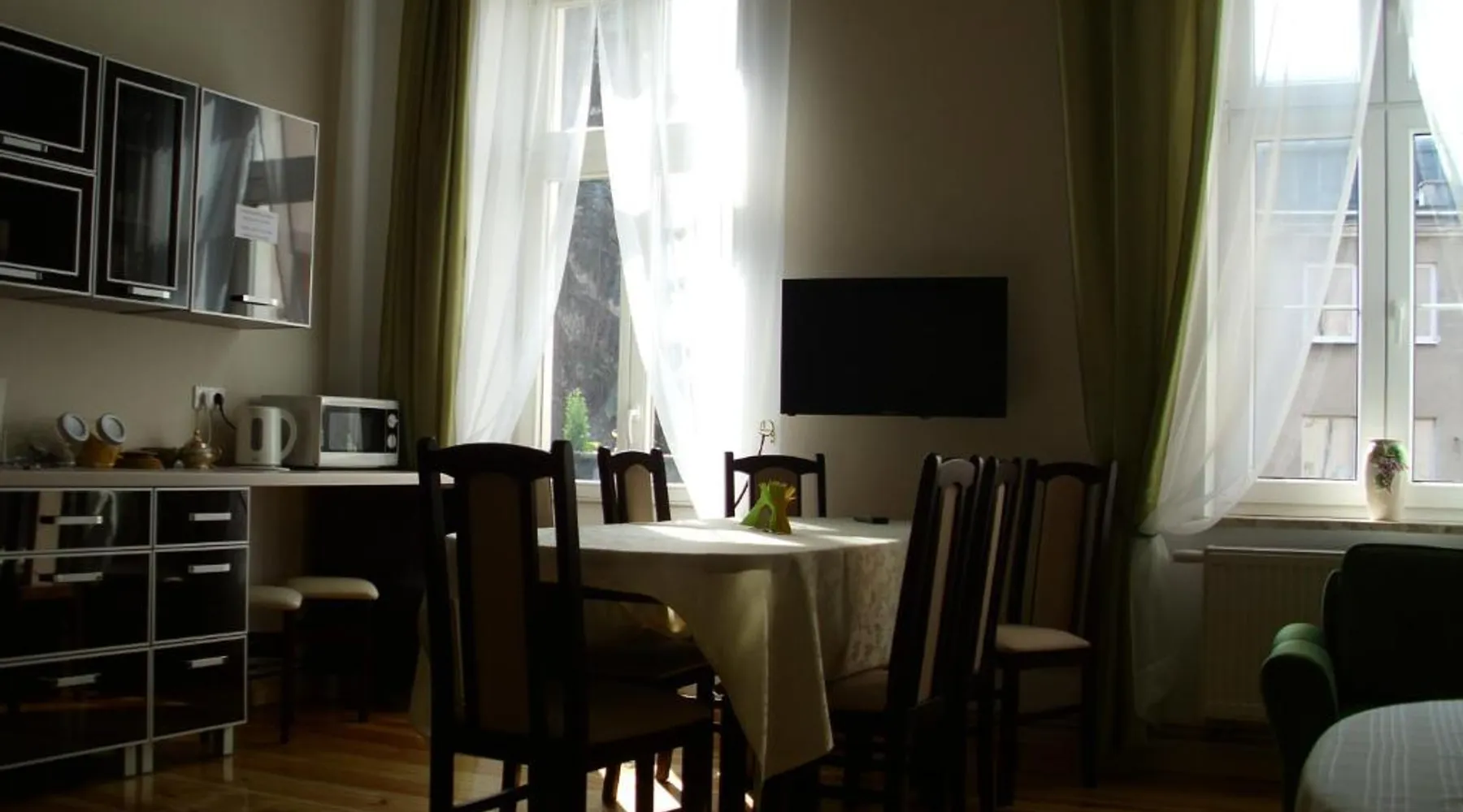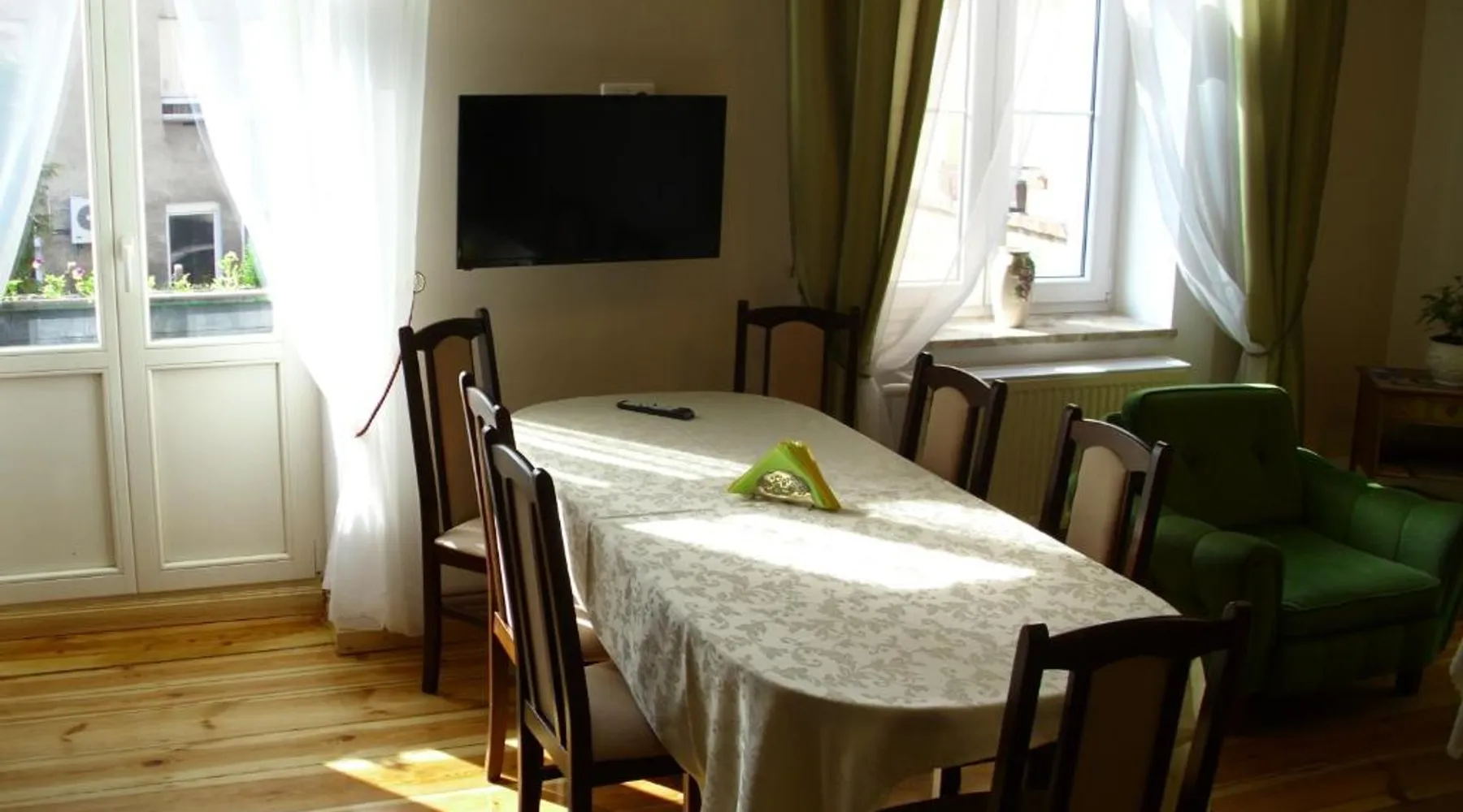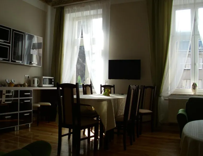 Historic Setting: Apartment Irene in Poznań offers a unique stay within a historic building. Guests enjoy city views and a serene garden setting. Modern Amenities: The apartment features free WiFi, a private check-in and check-out service, a lounge, shared kitchen, picnic area, family rooms, full-day security, and bicycle parking. Comfortable Living: Each unit includes a kitchen with a refrigerator, microwave, stovetop, and kitchenware. Additional amenities include a private bathroom with a walk-in shower, parquet floors, and a work desk. Prime Location: Located 5 mi from Poznań-Ławica Henryk Wieniawski Airport, the apartment is a short walk from Poznań Palm House and close to attractions such as the Philharmonic and Poznań Grand Theater. An ice-skating rink is also nearby. This apartment features 1 living room, 1 separate bedroom and 1 bathroom with a walk-in shower and a bath or a shower. Guests can make meals in the kitchen that has a refrigerator, kitchenware and a microwave. The apartment has parquet floors, a seating area with a flat-screen TV, a tea and coffee maker, a dining area as well as city views. The unit has 2 beds.
