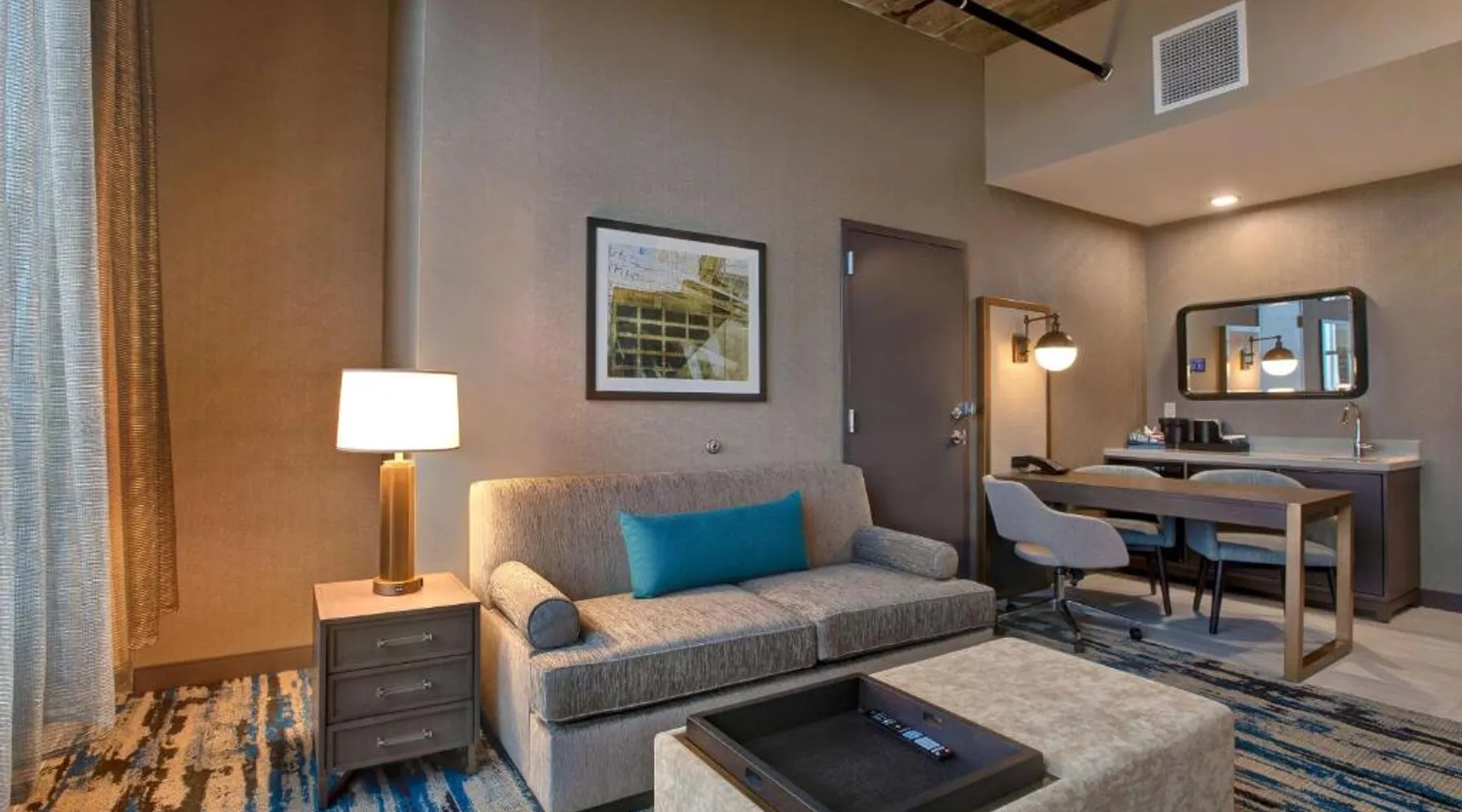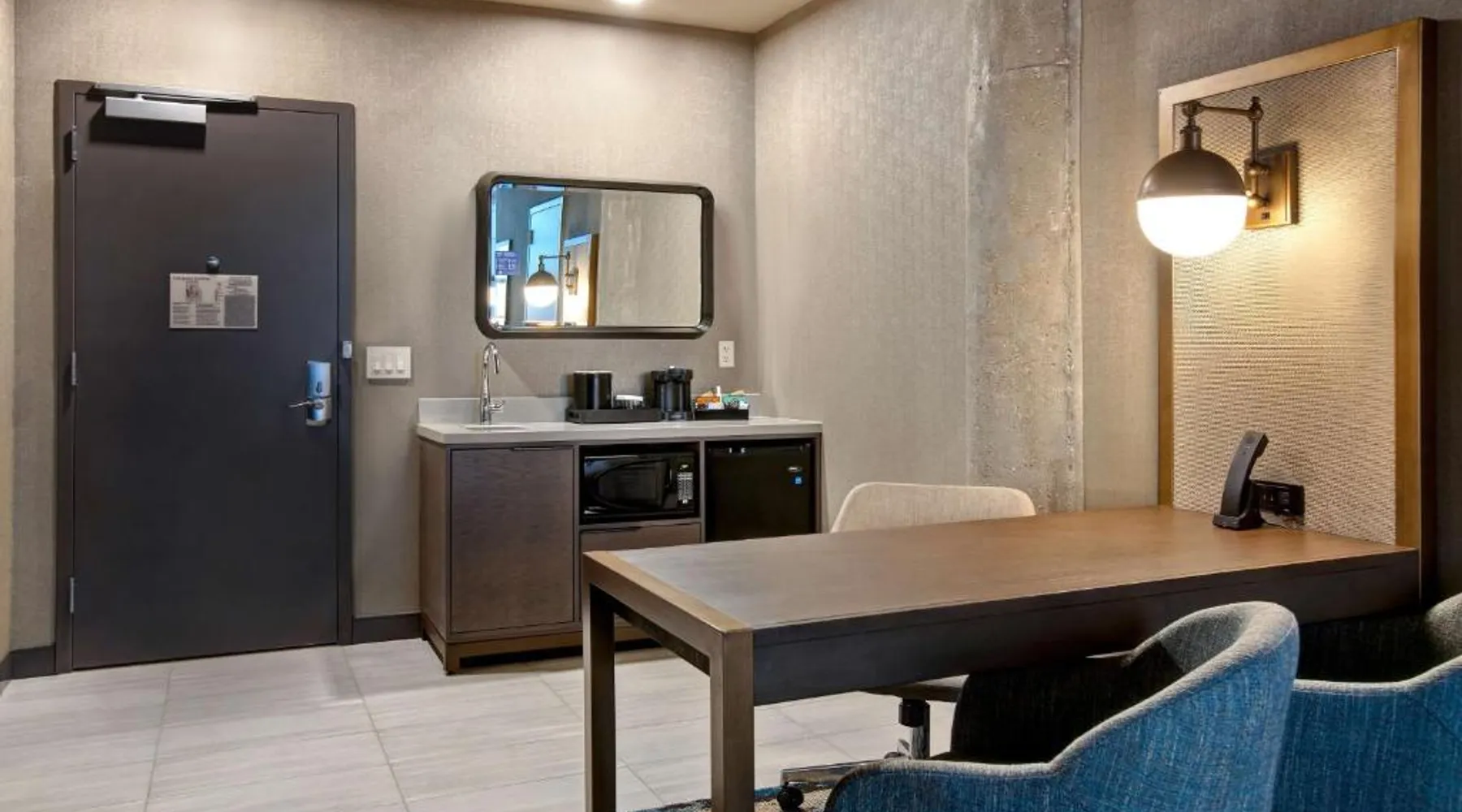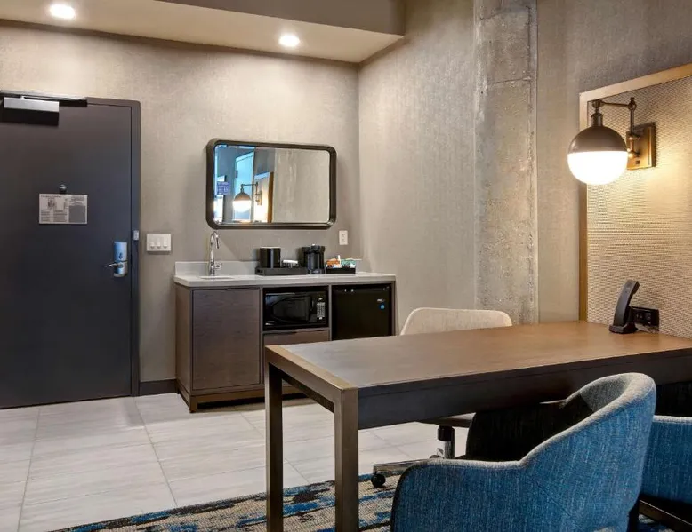 Comfortable Accommodations: Rooms feature air-conditioning, kitchenettes, tea and coffee makers, hairdryers, sofa beds, refrigerators, work desks, seating areas, free toiletries, microwaves, bath or showers, TVs, and toasters. Dining and Leisure: The hotel offers a restaurant serving American cuisine with vegetarian and vegan options, a bar, and a fitness center. Guests can relax in the saltwater or indoor swimming pools, hot tub, and fitness room. Convenient Location: Located in Rockford, the hotel is 4.3 mi from Chicago Rockford International Airport and near attractions such as Magic Waters Waterpark (9.3 mi) and Logan Museum of Anthropology (19 mi). An ice-skating rink is also nearby. Guest Services: The hotel provides free WiFi, a 24-hour front desk, room service, and a coffee shop. Paid off-site parking is available. Guests highly rate the breakfast, attentive staff, and comfortable rooms. The well-equipped kitchenette has a refrigerator, a microwave and a toaster. This studio is air-conditioned and features a flat-screen TV with cable channels, a tea and coffee maker, a seating area and a safe deposit box. The unit offers 2 beds.