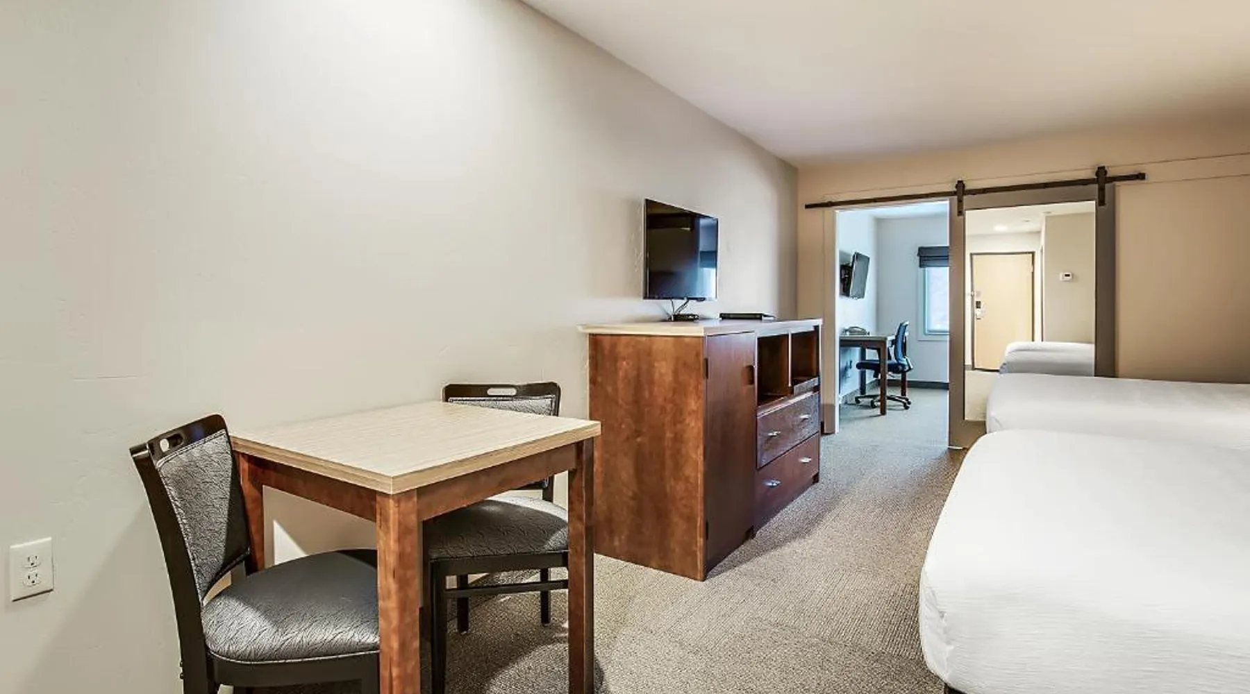 Comfortable Accommodations: Third Street Inn in McCall offers family rooms with air-conditioning, private bathrooms, and free WiFi. Each room includes a tea and coffee maker, hypoallergenic bedding, and a work desk. Leisure Facilities: Guests can enjoy an indoor swimming pool, hot tub, and lounge. Additional amenities include a 24-hour front desk, bicycle parking, and free on-site private parking. Convenient Location: Located near an ice-skating rink, the hotel is highly rated for its breakfast, convenient location, and room cleanliness. The spacious triple room features air conditioning, a tea and coffee maker, as well as a private bathroom boasting a walk-in shower and a hairdryer. This triple room has a carpeted floor, heating and a flat-screen TV with cable channels. The unit has 3 beds.