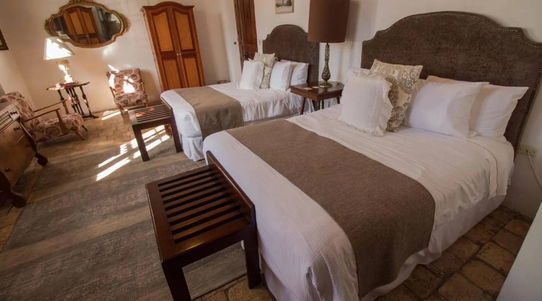 Elegant Accommodations: La Casona Del Banco Hotel Boutique in Parras de la Fuente offers adults-only rooms with garden or inner courtyard views. Each room features air-conditioning, a private bathroom, and a coffee machine. Exceptional Facilities: Guests can relax on the sun terrace or in the lush garden. Free WiFi is available throughout the property. Additional amenities include a lounge, outdoor seating area, and a tour desk. Comfortable Amenities: Rooms are equipped with a TV, hairdryer, and free toiletries. Private check-in and check-out services ensure a smooth arrival and departure. Free on-site private parking is provided. Convenient Location: Located 97 mi from Francisco Sarabia International Airport, the hotel is highly rated by guests for its excellent service and comfortable accommodations. Offering free toiletries, this double room includes a private bathroom with a shower and a hairdryer. The air-conditioned double room offers a flat-screen TV with cable channels, a private entrance, a coffee machine, a wardrobe as well as an inner courtyard view. The unit has 2 beds.