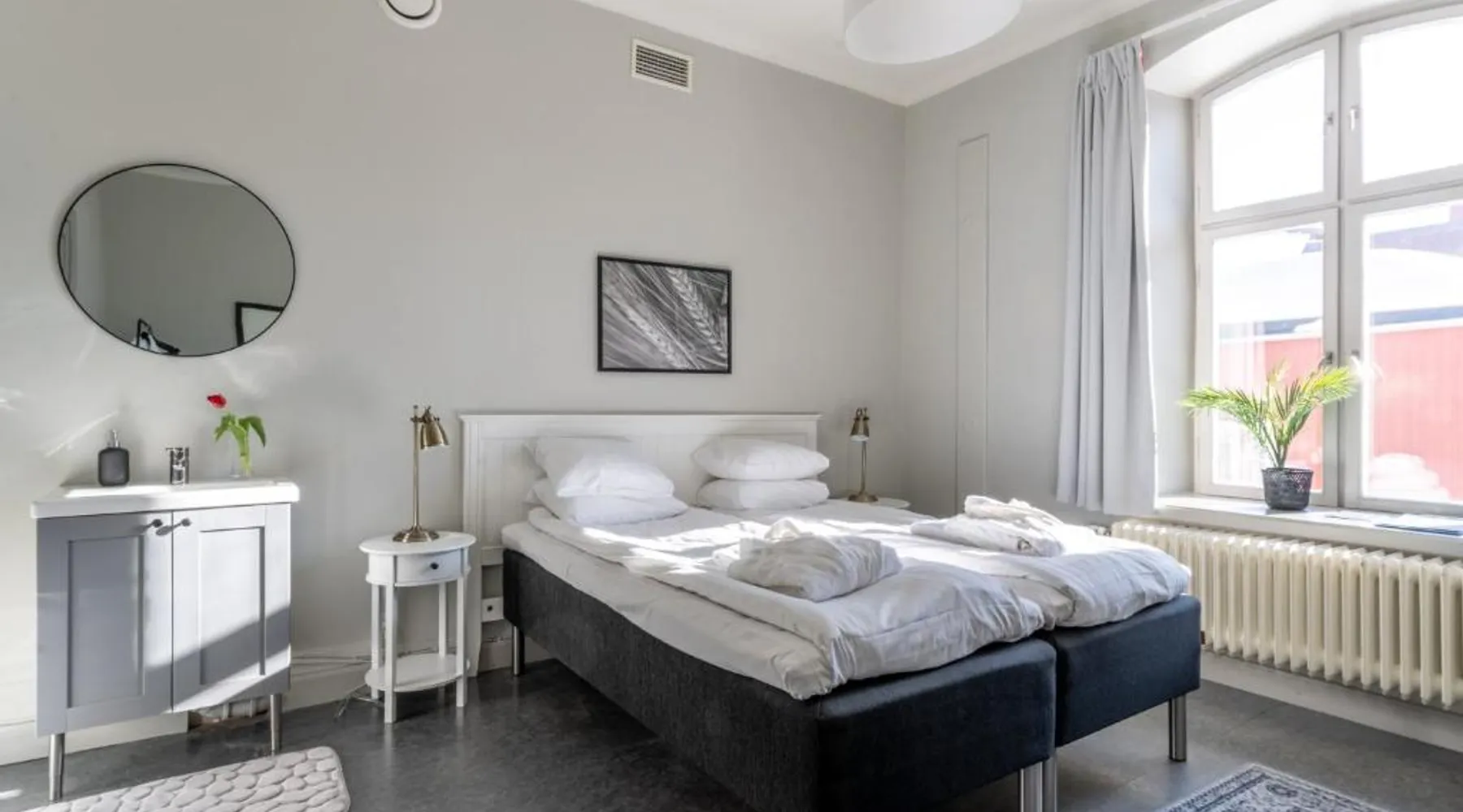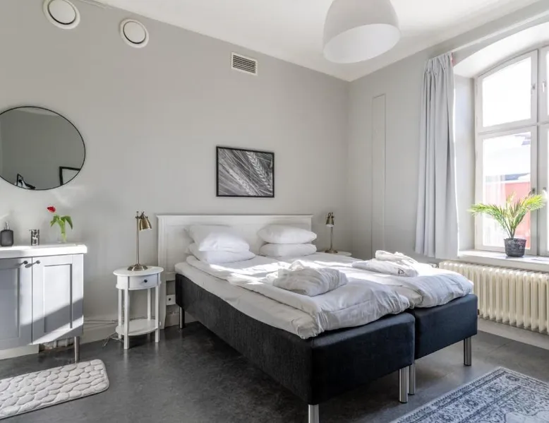 Hotell Gamla Fängelset is a converted prison from 1861 located in central Umeå and offers free WiFi and breakfast. All rooms have windows and shared bathroom facilities. Guests have access to a fully equipped kitchen with a microwave and refrigerator, as well as a common TV room. Ironing and laundry facilities are available in the hotel. Restaurant Lilla Krogen Brasserie & Bar is located in the building next door, offering food and drinks in a relaxed setting. Guests can dine outdoors in the garden during the summer. The main railway station is a 15-minute walk away. Hotell Gamla Fängselet is a short walking distance from Umeå University, Umeå University hospital, Västerbottens Museum, Bildmuseet and Norrlandsoperan. Umeå Airport is 12 minutes away by bus. This room has access to shared bathroom and kitchen facilities.