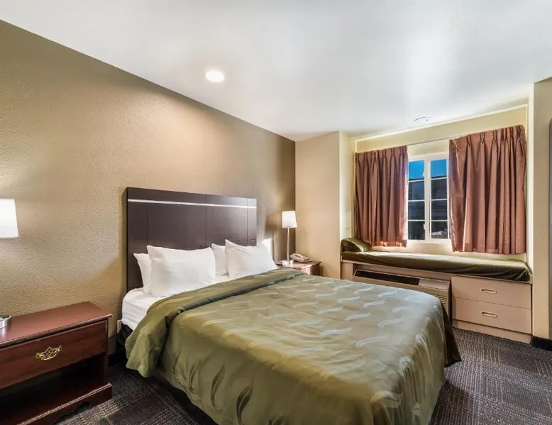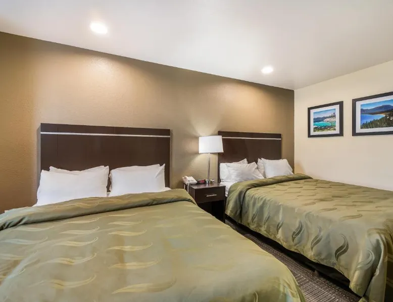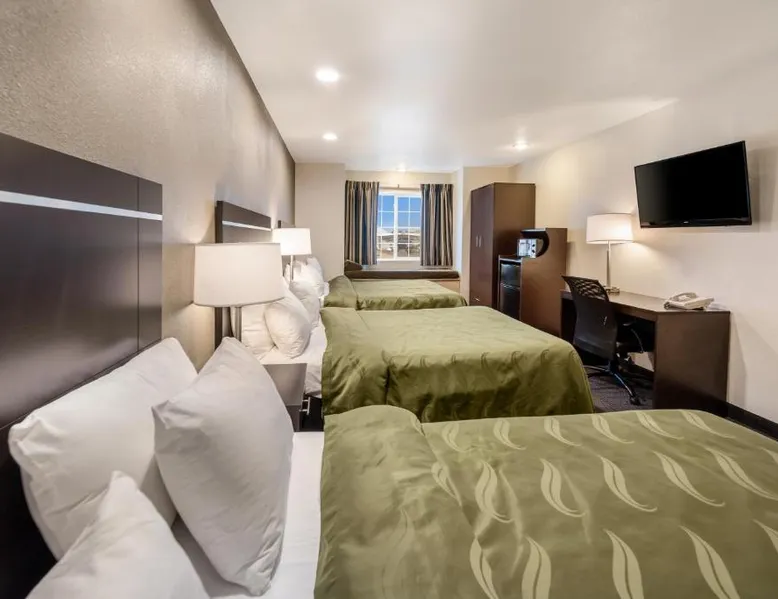 Comfortable Accommodations: Quality Inn & Suites near NAS Fallon in Fallon offers family rooms with air-conditioning, private bathrooms, and modern amenities. Each room includes a work desk, TV, and wardrobe, ensuring a pleasant stay. Essential Facilities: Guests can enjoy a fitness center and free WiFi throughout the property. Additional facilities include a 24-hour front desk, daily housekeeping service, luggage storage, and a buffet breakfast with warm dishes, juice, fresh pastries, and fruits. Convenient Location: Located 60 mi from Reno-Tahoe International Airport, the hotel provides easy access to local attractions. Nearby activities include golfing, hiking, and fishing, offering diverse options for leisure. This air-conditioned family room includes a flat-screen TV with cable channels and a private bathroom. The unit offers 3 beds.