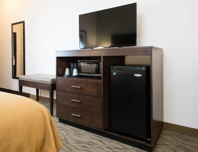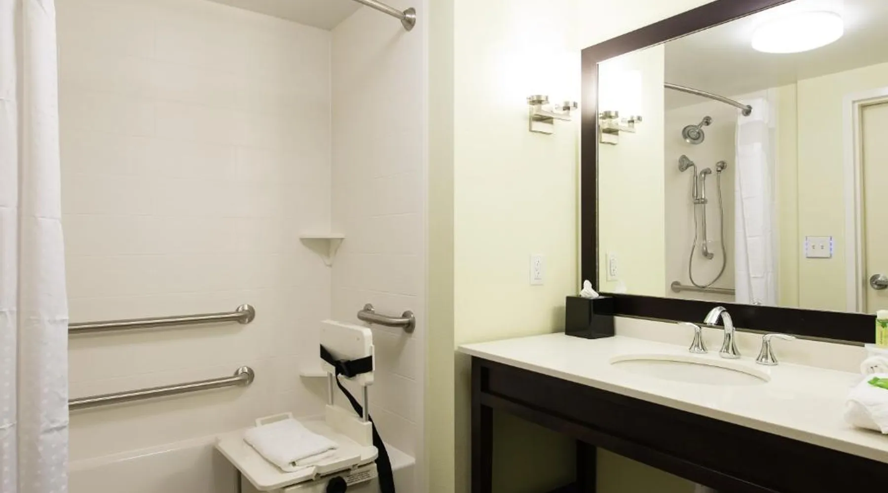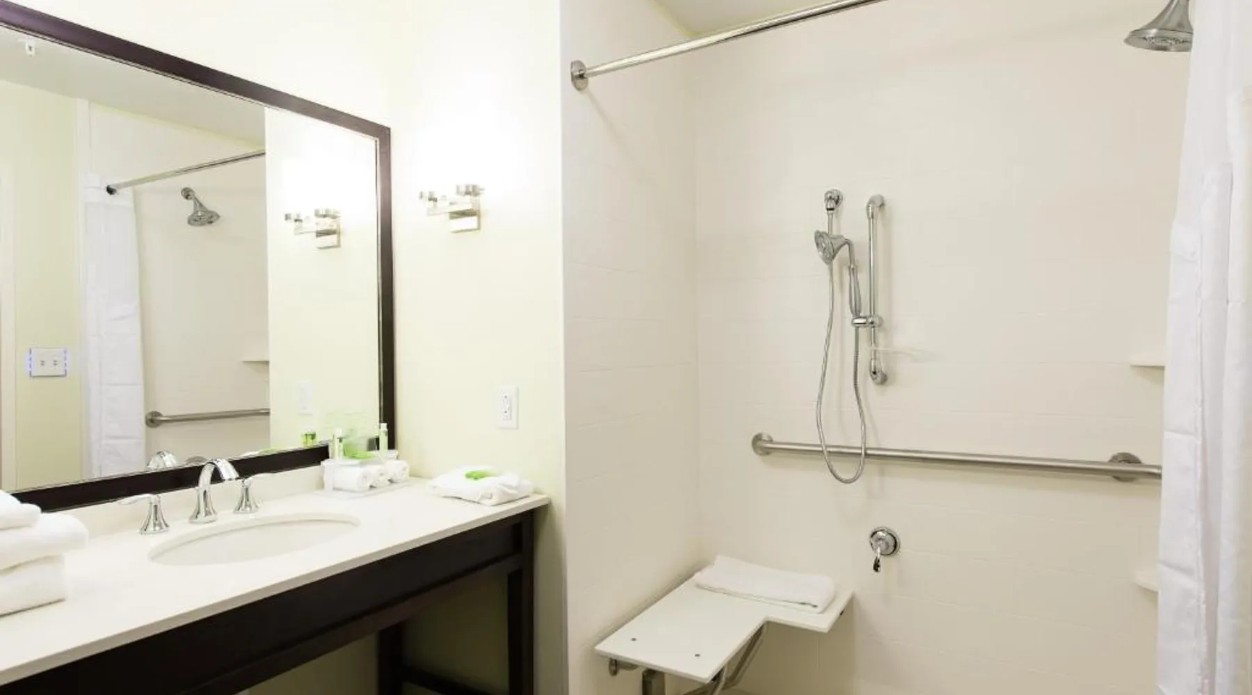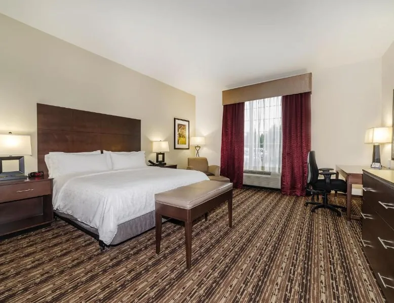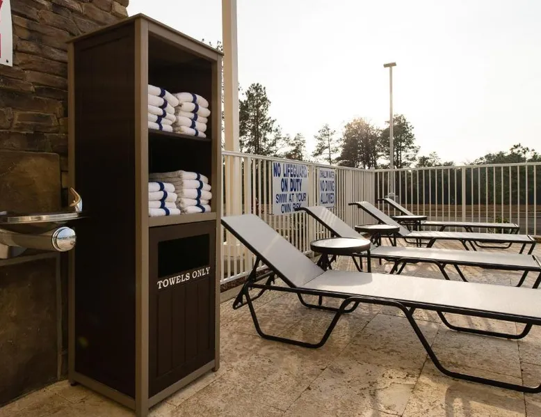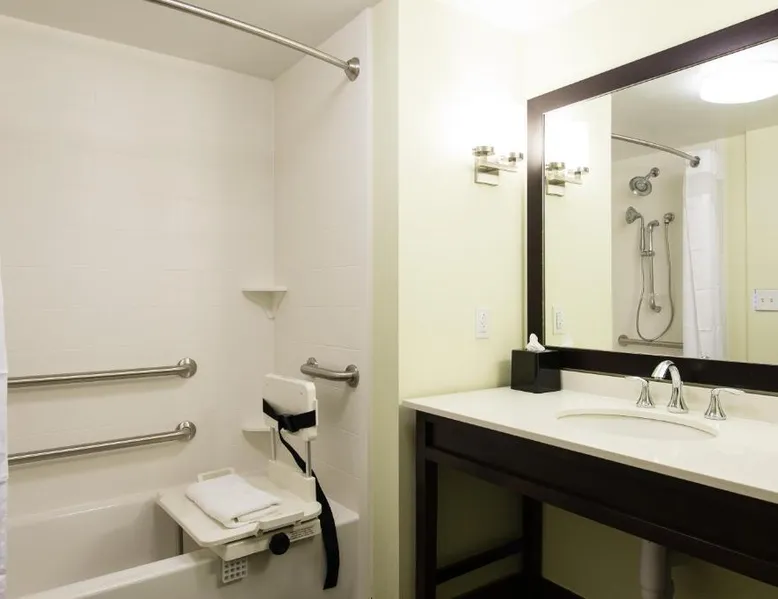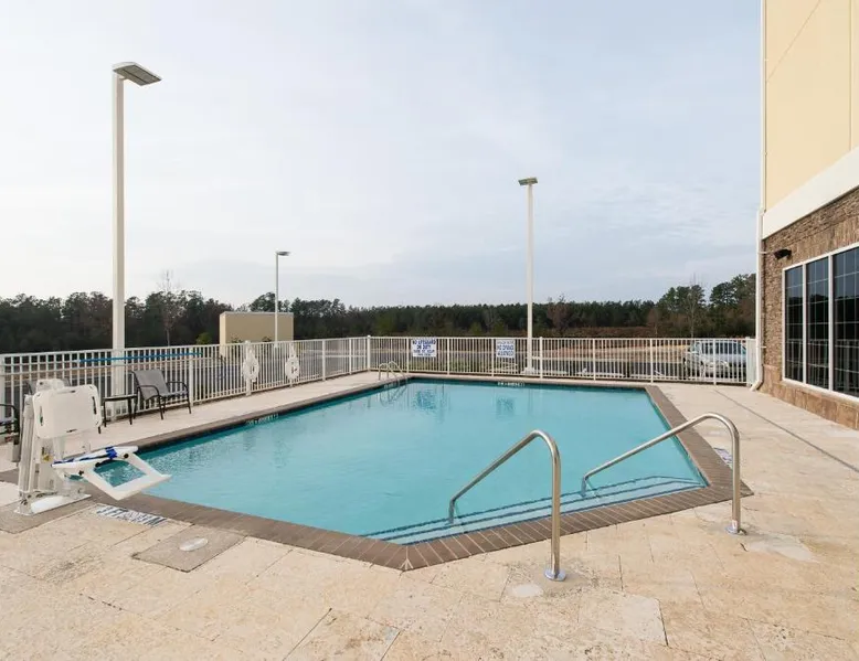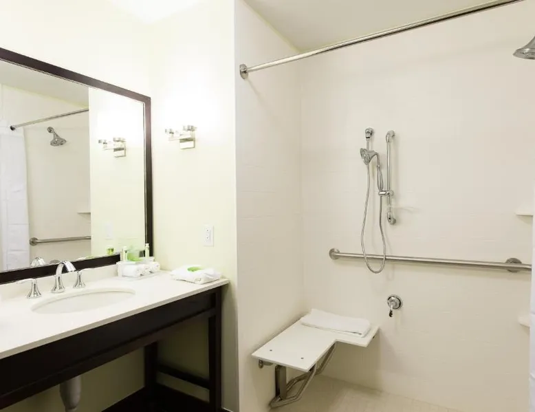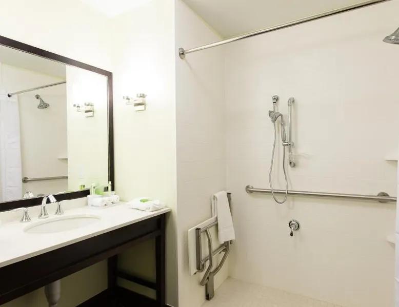 Comfortable Accommodations: Holiday Inn Express & Suites Aiken by IHG in Aiken offers family rooms with air-conditioning, private bathrooms, and modern amenities including a coffee machine, refrigerator, and work desk. Exceptional Facilities: Guests enjoy a fitness center, seasonal outdoor swimming pool, and free WiFi. Additional facilities include a minimarket, business area, and outdoor seating and picnic areas. Convenient Location: Located 29 mi from Augusta Regional Airport, the hotel is near attractions such as Augusta Museum of History (20 mi) and Augusta National Golf Club (25 mi). Free on-site parking is available. Guest Satisfaction: Highly rated for room cleanliness, convenient location, and value for money of food provided by the property. A microwave, small refrigerator, and tea- and coffee-making facilities are included in this accessible room. A flat-screen cable TV and a desk are also featured.