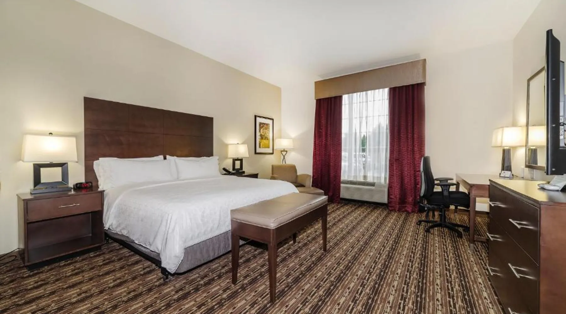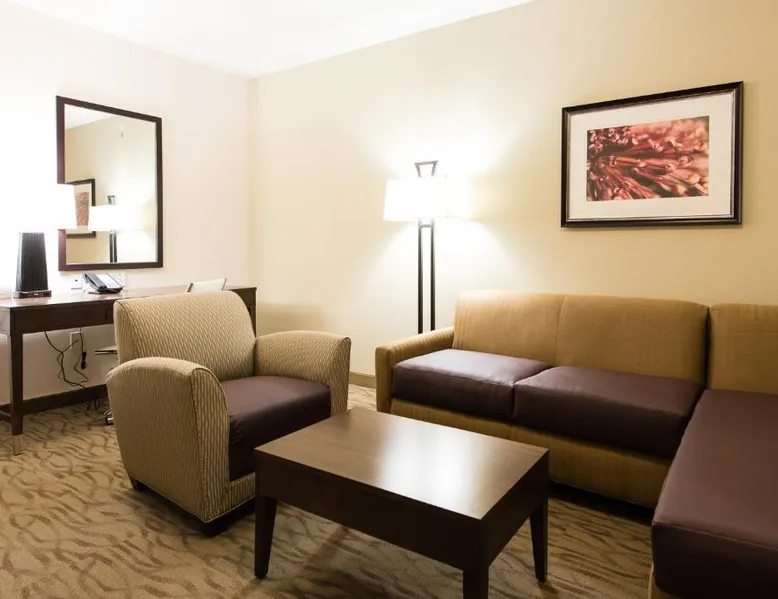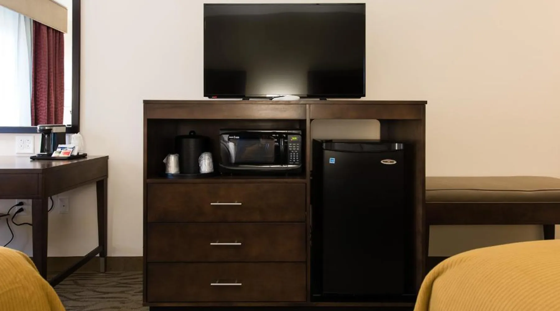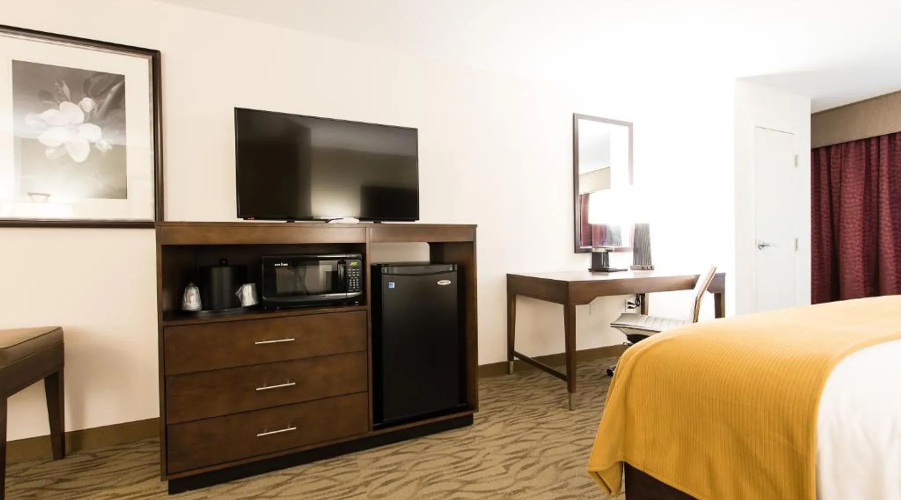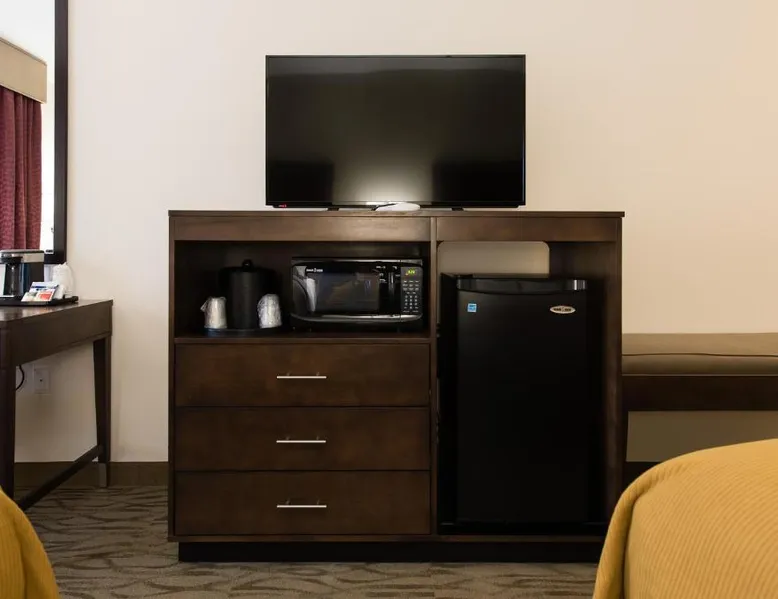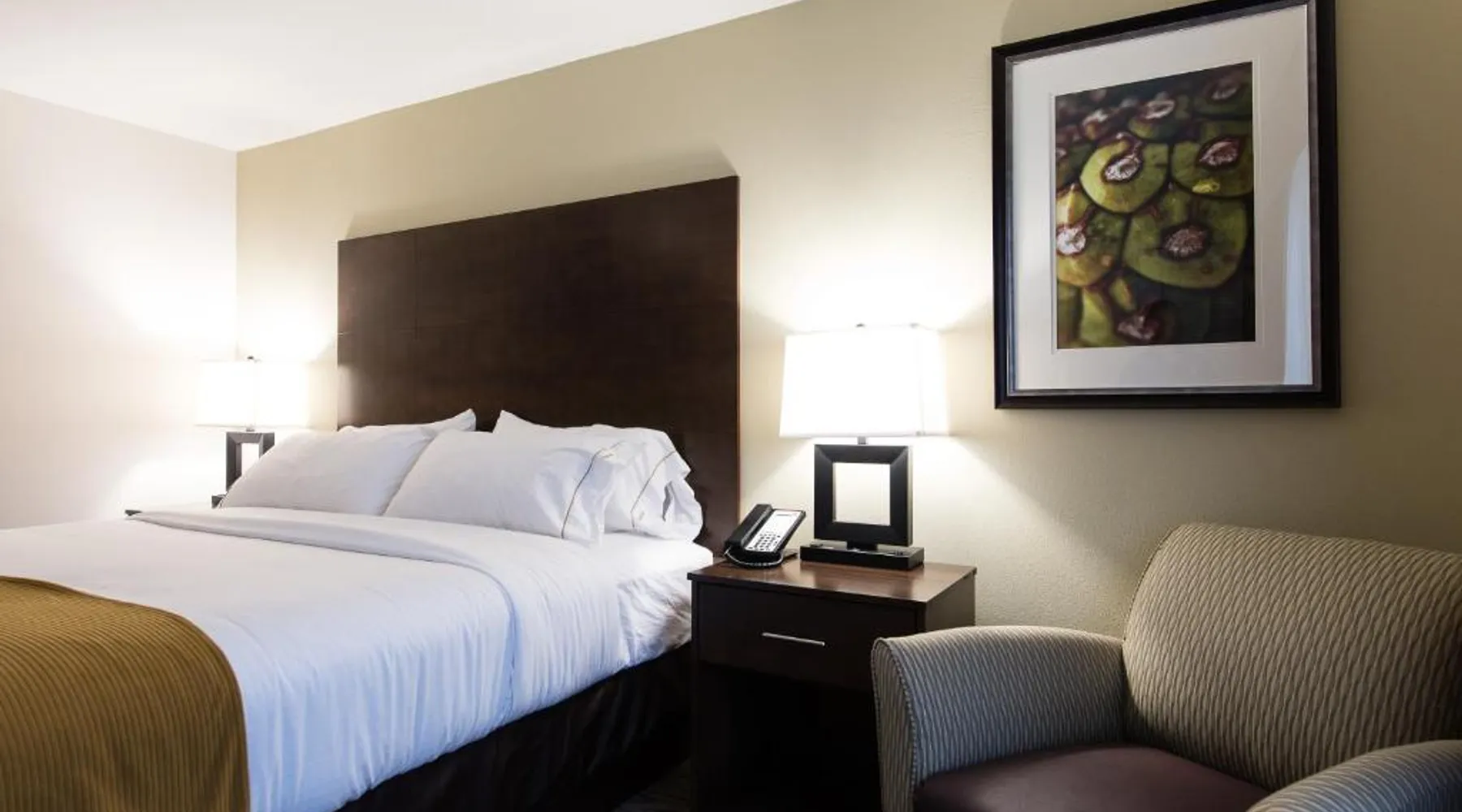 Comfortable Accommodations: Holiday Inn Express & Suites Aiken by IHG in Aiken offers family rooms with air-conditioning, private bathrooms, and modern amenities including a coffee machine, refrigerator, and work desk. Exceptional Facilities: Guests enjoy a fitness center, seasonal outdoor swimming pool, and free WiFi. Additional facilities include a minimarket, business area, and outdoor seating and picnic areas. Convenient Location: Located 29 mi from Augusta Regional Airport, the hotel is near attractions such as Augusta Museum of History (20 mi) and Augusta National Golf Club (25 mi). Free on-site parking is available. Guest Satisfaction: Highly rated for room cleanliness, convenient location, and value for money of food provided by the property. A microwave, small refrigerator, and tea- and coffee-making facilities are included in this accessible room. A flat-screen cable TV and a desk are also featured.