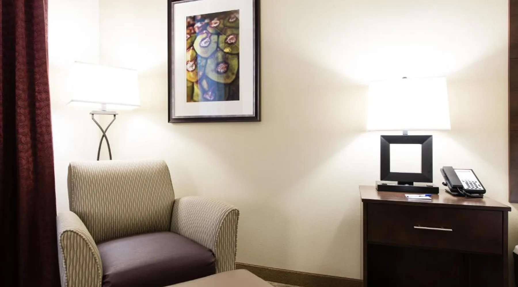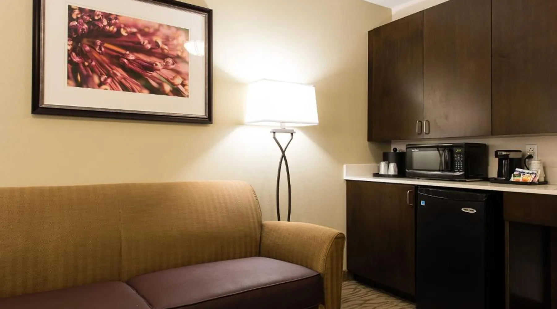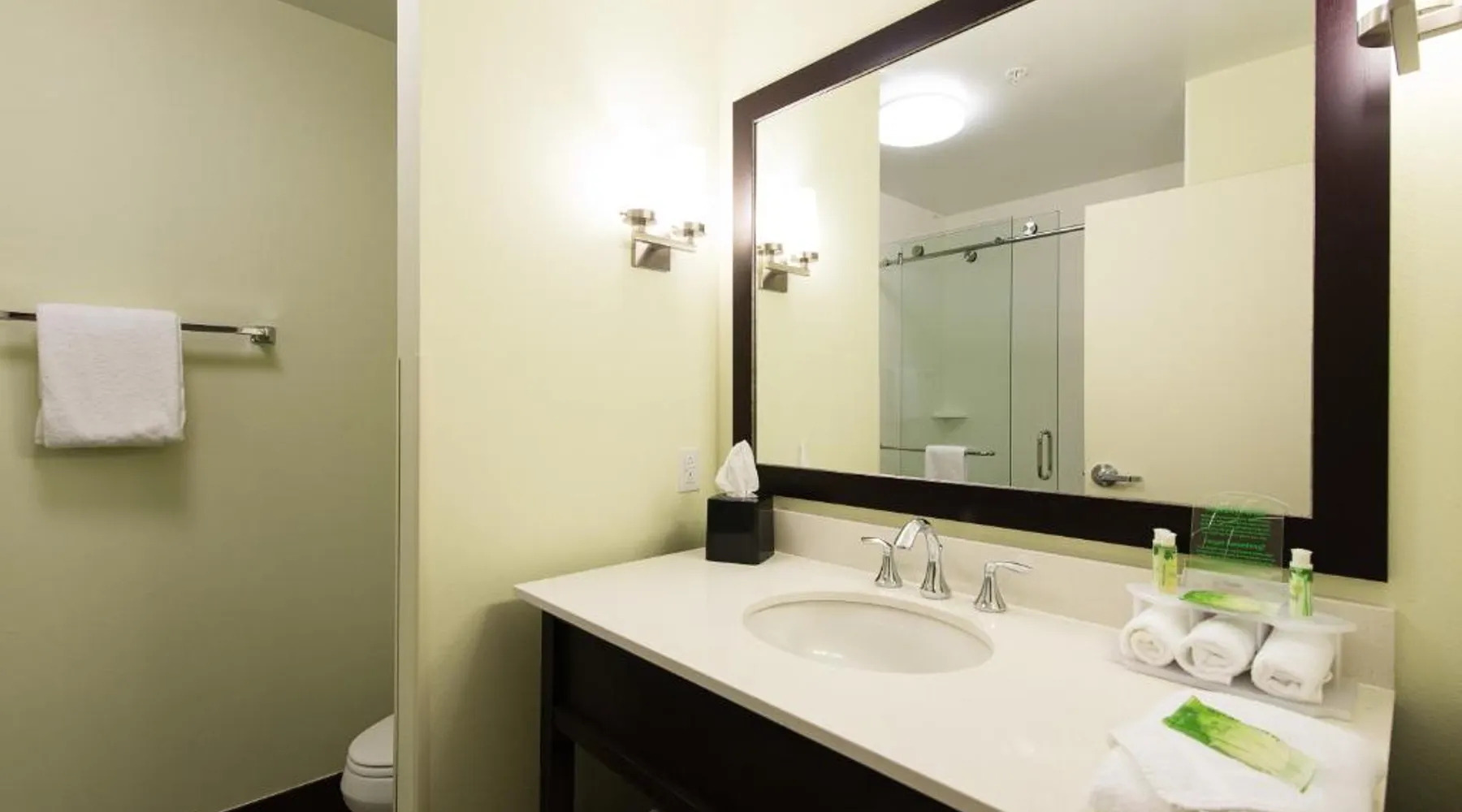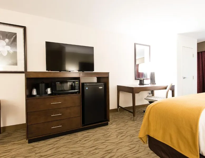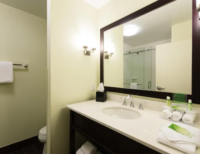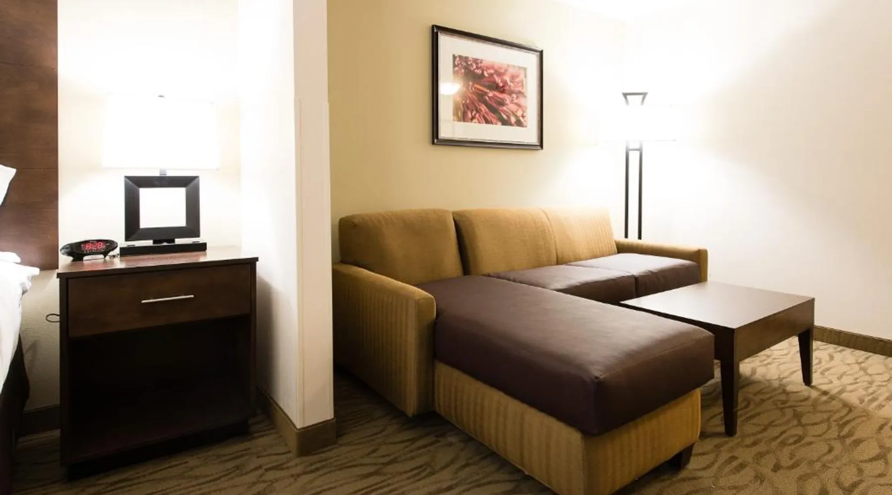 Comfortable Accommodations: Holiday Inn Express & Suites Aiken by IHG in Aiken offers family rooms with air-conditioning, private bathrooms, and modern amenities including a coffee machine, refrigerator, and work desk. Exceptional Facilities: Guests enjoy a fitness center, seasonal outdoor swimming pool, and free WiFi. Additional facilities include a minimarket, business area, and outdoor seating and picnic areas. Convenient Location: Located 29 mi from Augusta Regional Airport, the hotel is near attractions such as Augusta Museum of History (20 mi) and Augusta National Golf Club (25 mi). Free on-site parking is available. Guest Satisfaction: Highly rated for room cleanliness, convenient location, and value for money of food provided by the property. A microwave, small refrigerator, and tea- and coffee-making facilities are included in this accessible room. A flat-screen cable TV and a desk are also featured.