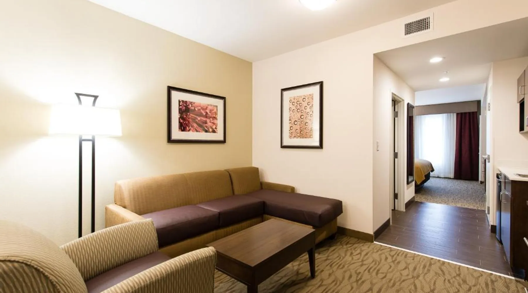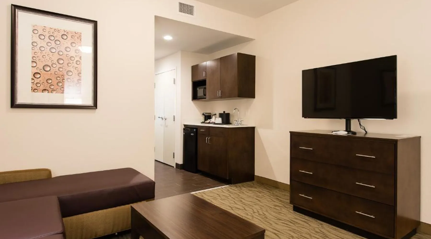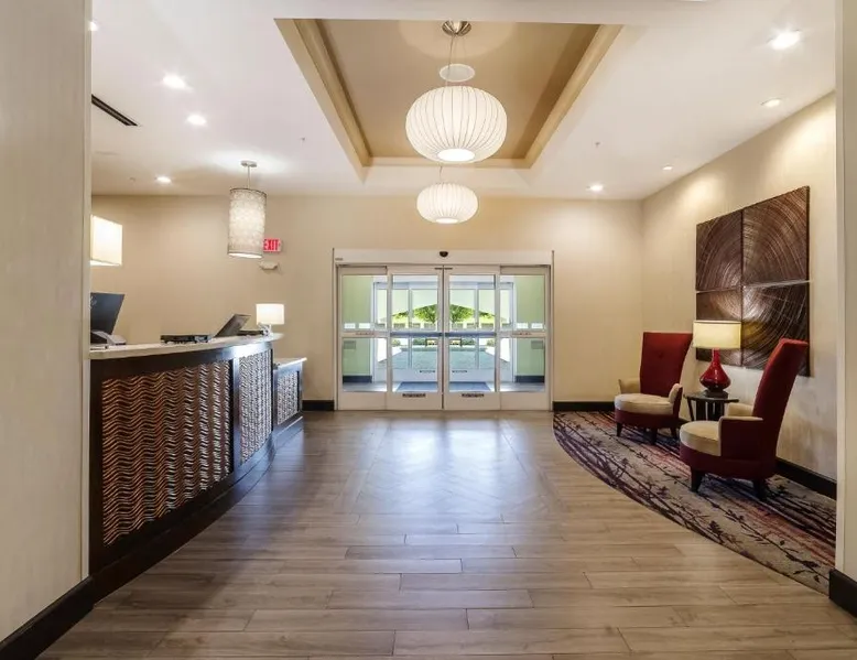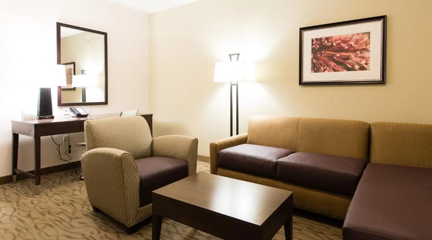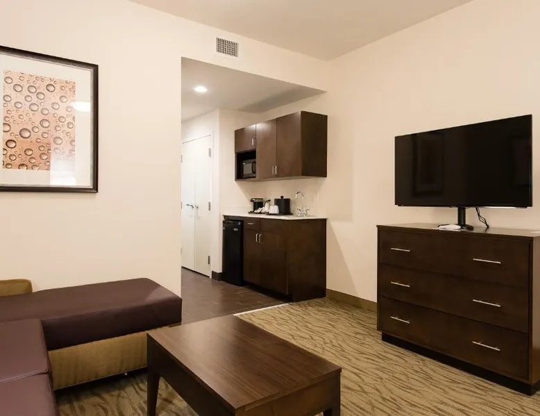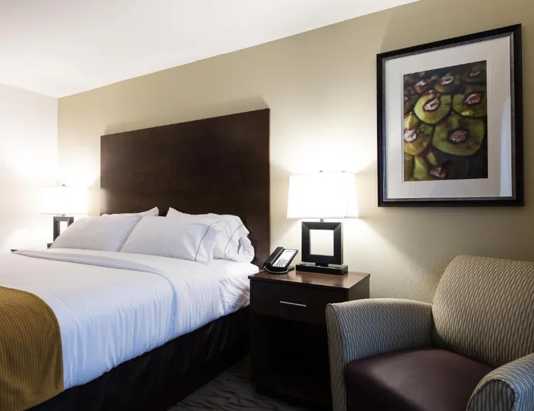Comfortable Accommodations: Holiday Inn Express & Suites Aiken by IHG in Aiken offers family rooms with air-conditioning, private bathrooms, and modern amenities including a coffee machine, refrigerator, and work desk. Exceptional Facilities: Guests enjoy a fitness center, seasonal outdoor swimming pool, and free WiFi. Additional facilities include a minimarket, business area, and outdoor seating and picnic areas. Convenient Location: Located 29 mi from Augusta Regional Airport, the hotel is near attractions such as Augusta Museum of History (20 mi) and Augusta National Golf Club (25 mi). Free on-site parking is available. Guest Satisfaction: Highly rated for room cleanliness, convenient location, and value for money of food provided by the property. A microwave, small refrigerator, and tea- and coffee-making facilities are included in this accessible room. A flat-screen cable TV and a desk are also featured.