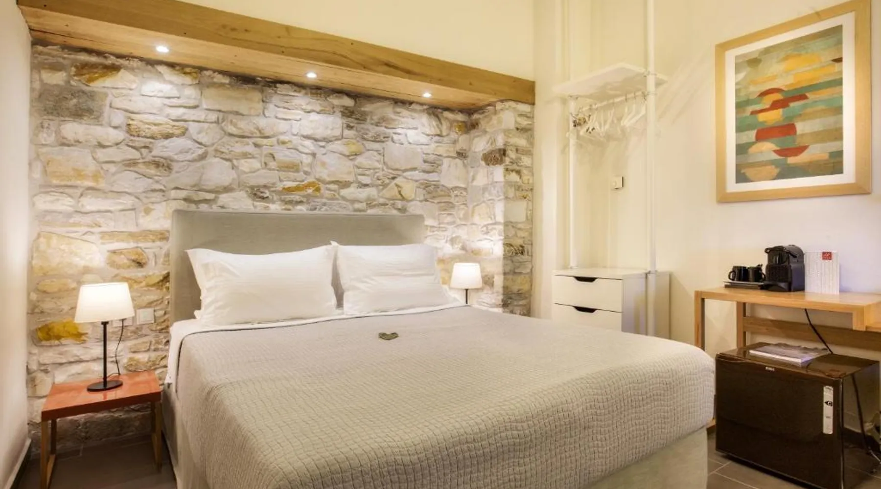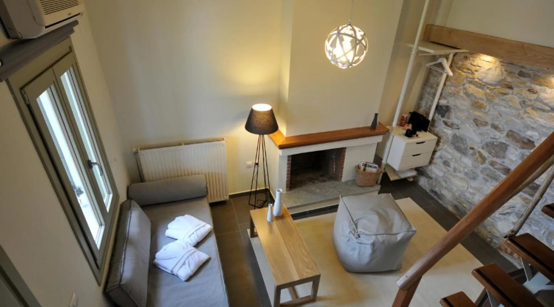Comfortable Accommodations: Olga Hotel Mouresi in Mouresi offers family rooms with sea or garden views. Each room includes air-conditioning, a private bathroom, and modern amenities. Exceptional Facilities: Guests enjoy a sun terrace, lush garden, bar, and free WiFi. Additional services include private check-in and check-out, a lounge, and a games room. Delicious Breakfast: A variety of breakfast options are available, including continental, buffet, and full English/Irish. Special diet menus cater to vegetarian, vegan, and gluten-free diets. Prime Location: Located 58 mi from Nea Anchialos National Airport, the hotel is near Papa Nero Beach (1.9 mi) and Panthessaliko Stadium (27 mi). Boating and walking tours enhance the stay. Divided in 2 levels, this elegantly decorated suite opens to a balcony with sea views and has a seating area with fireplace and a bathroom at the lower level. It is fitted with Coco-mat mattresses, pillows and linen.