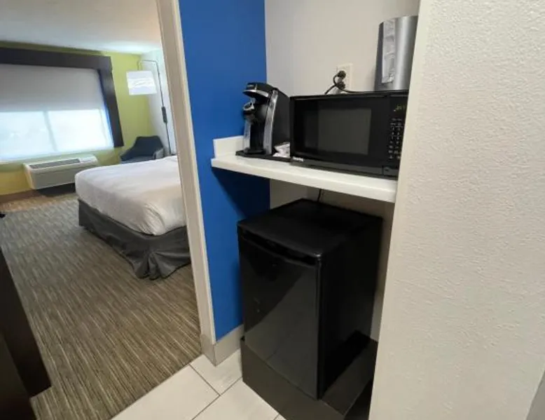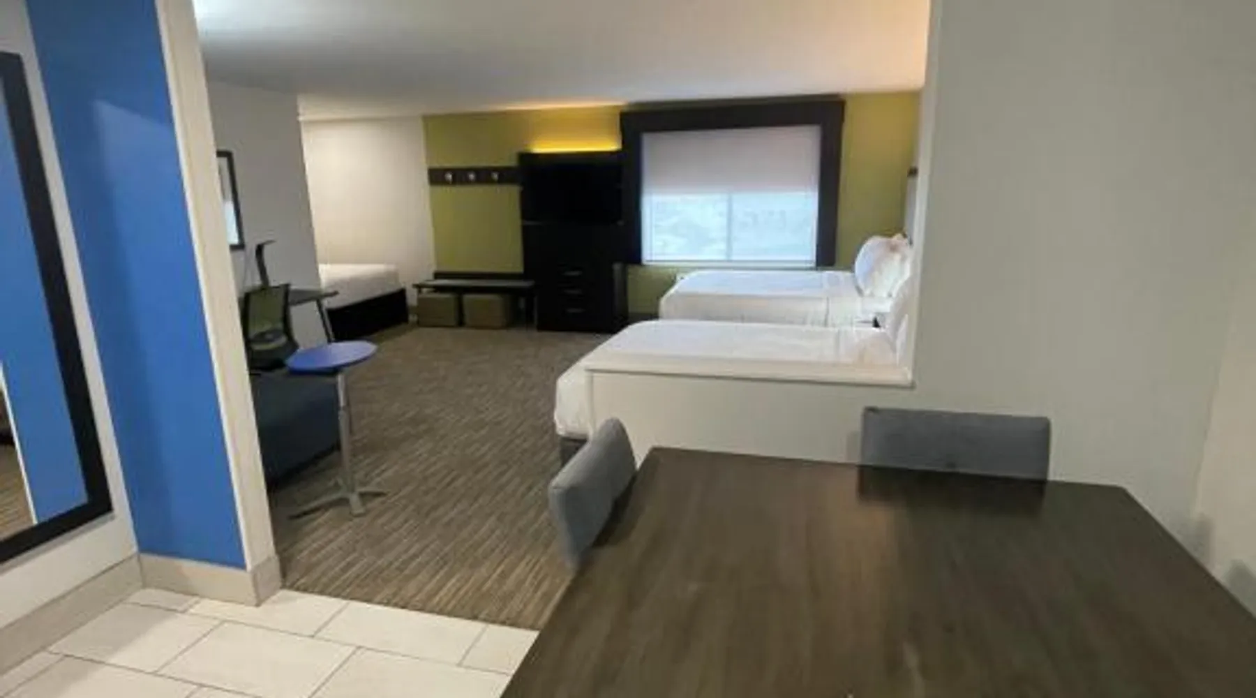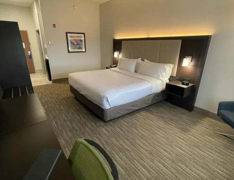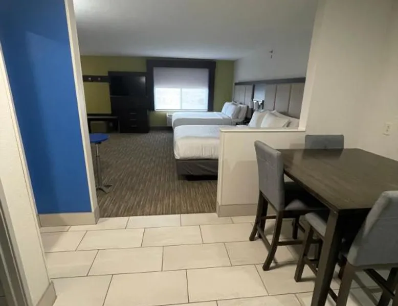 Comfortable Accommodations: Holiday Inn Express Hotel & Suites Las Vegas NM by IHG in Las Vegas offers comfortable rooms with air-conditioning, private bathrooms, and free WiFi. Each room includes a coffee machine, refrigerator, work desk, and TV. Relaxing Facilities: Guests can enjoy a spa and wellness center, indoor swimming pool, and hot tub. Additional amenities include a elevator, 24-hour front desk, and free on-site parking. Breakfast and Services: A highly rated breakfast is provided by the property, complemented by room comfort and cleanliness. Location and Access: Located 71 mi from Santa Fe Municipal Airport, the hotel offers easy access to local attractions. The unit offers 1 bed.