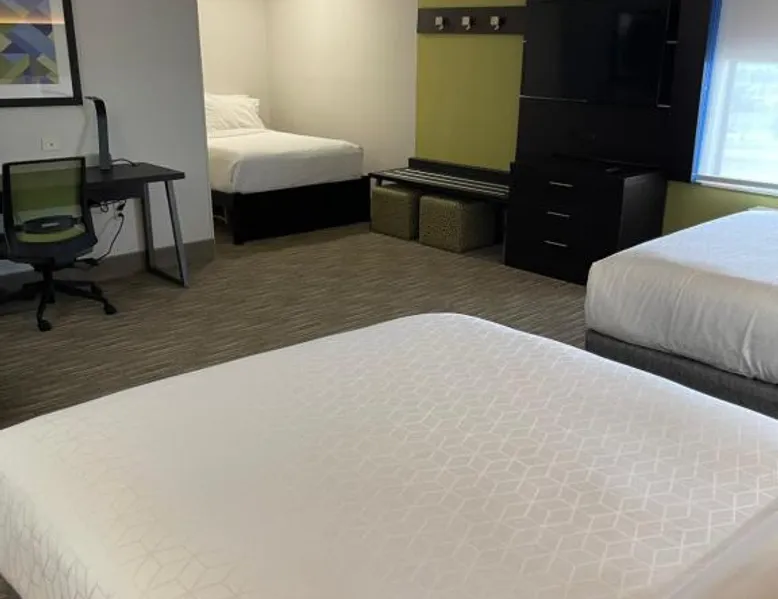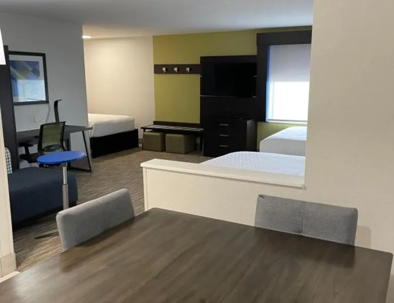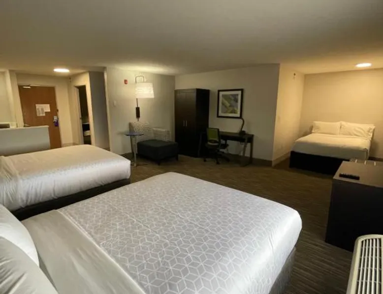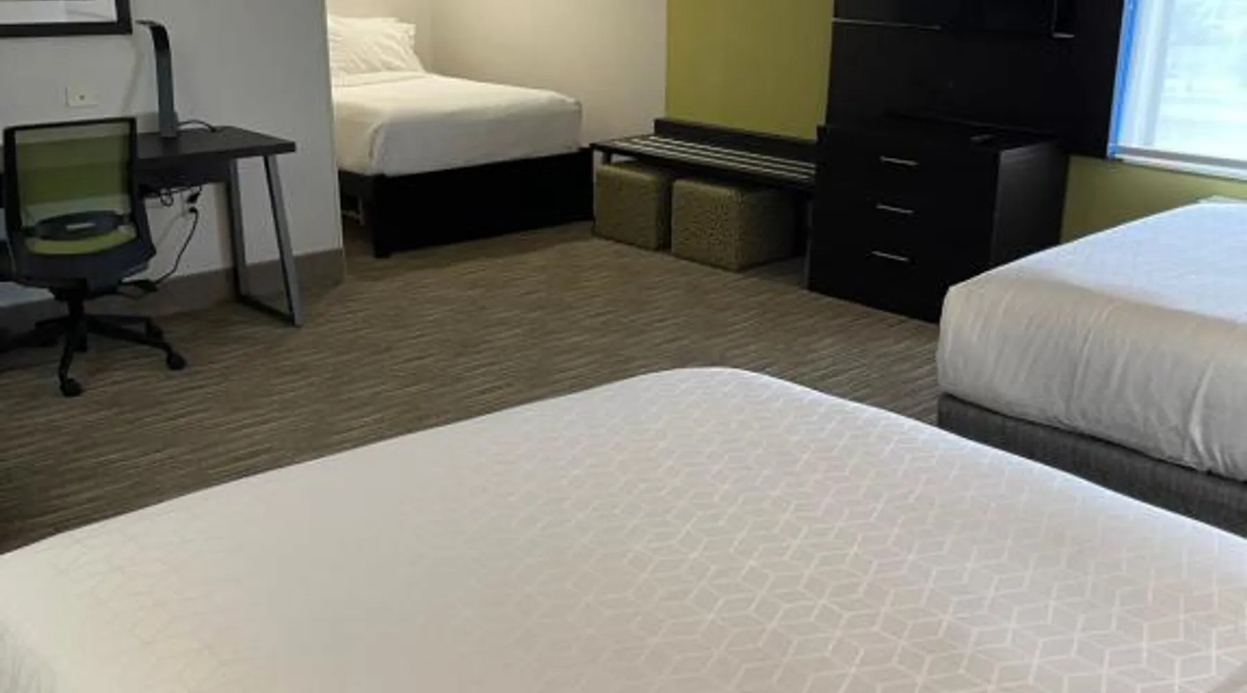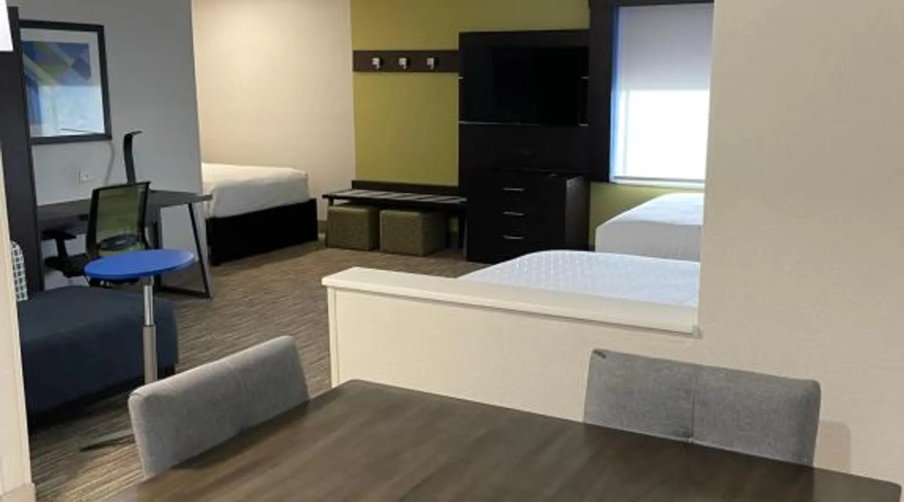 Comfortable Accommodations: Holiday Inn Express Hotel & Suites Las Vegas NM by IHG in Las Vegas offers comfortable rooms with air-conditioning, private bathrooms, and free WiFi. Each room includes a coffee machine, refrigerator, work desk, and TV. Relaxing Facilities: Guests can enjoy a spa and wellness center, indoor swimming pool, and hot tub. Additional amenities include a elevator, 24-hour front desk, and free on-site parking. Breakfast and Services: A highly rated breakfast is provided by the property, complemented by room comfort and cleanliness. Location and Access: Located 71 mi from Santa Fe Municipal Airport, the hotel offers easy access to local attractions. The unit offers 1 bed.