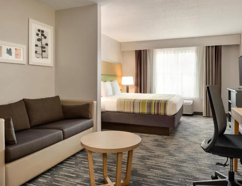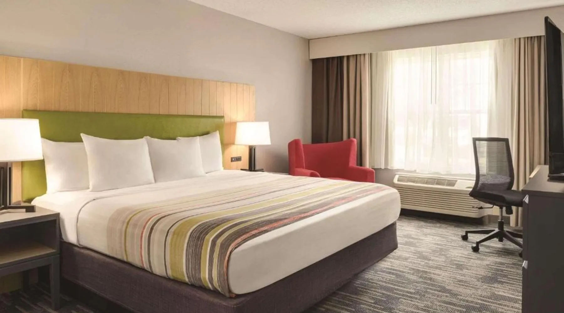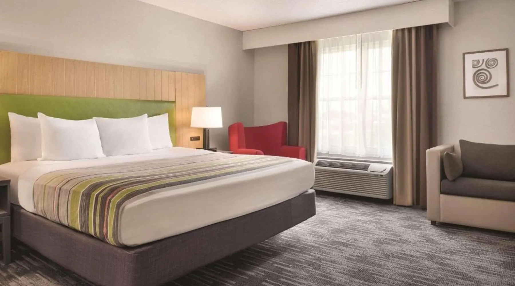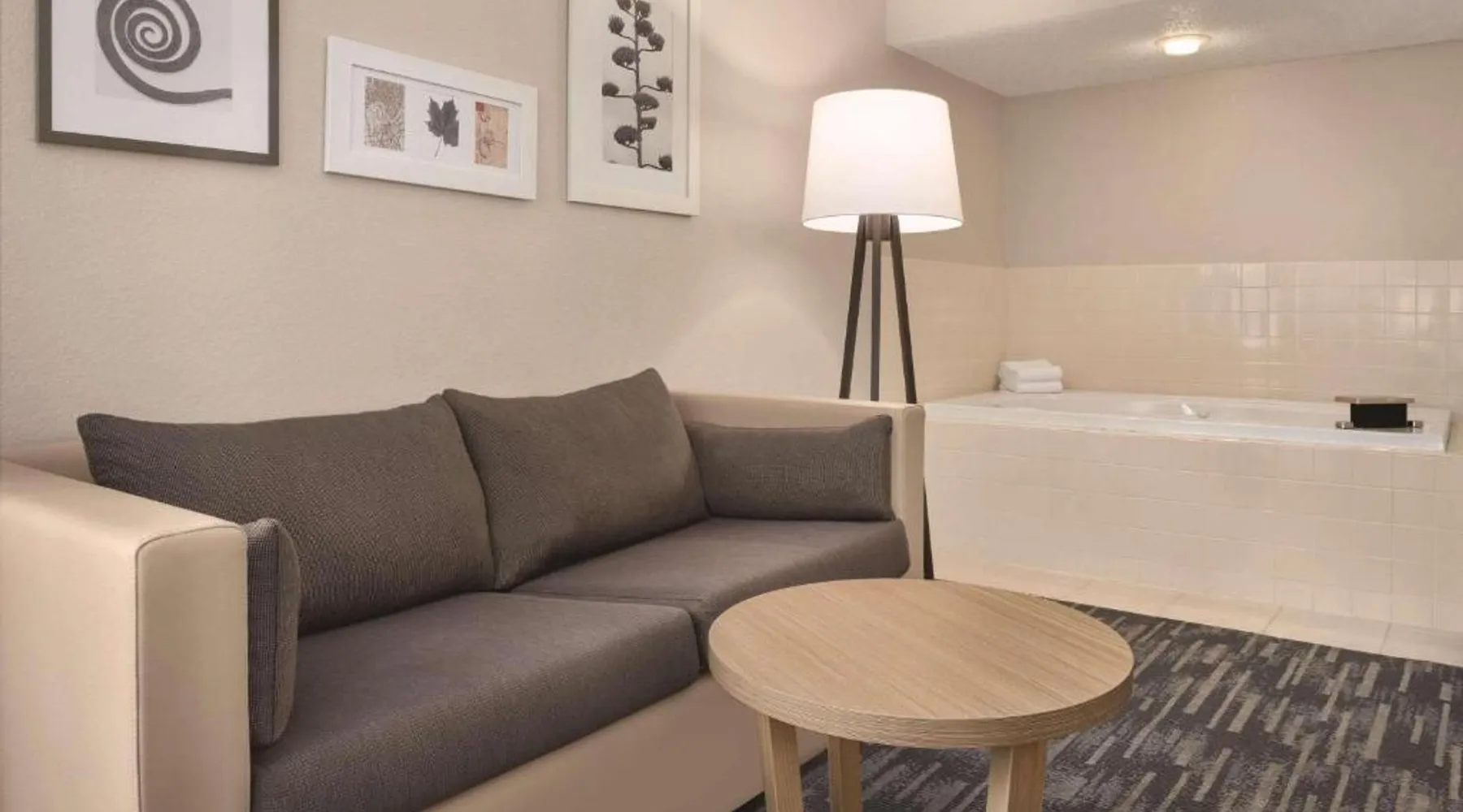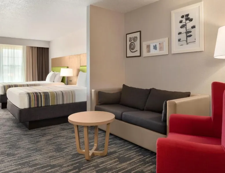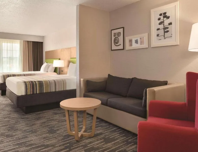 Comfortable Accommodations: Country Inn & Suites by Radisson in Pella offers family rooms with air-conditioning, private bathrooms, and free WiFi. Each room includes a tea and coffee maker, work desk, and TV. Wellness and Leisure: Guests can enjoy a spa and wellness center, sauna, fitness center, indoor swimming pool, and sun terrace. Additional facilities include a hot tub, lounge, and outdoor seating area. Convenient Location: Located 52 mi from Des Moines International Airport, the hotel is near attractions such as Tassel Ridge Winery (12 mi) and Grand Theater (14 mi). Free on-site parking and electric vehicle charging are available. Guest Satisfaction: Highly rated for room cleanliness, breakfast provided by the property, and convenient location. Offering free WiFi and a TV with HD channels, this room also includes a microwave, refrigerator, coffee machine and a sofa bed.