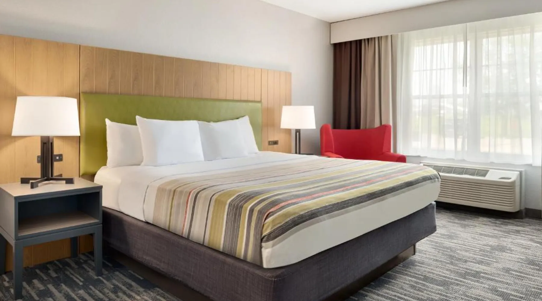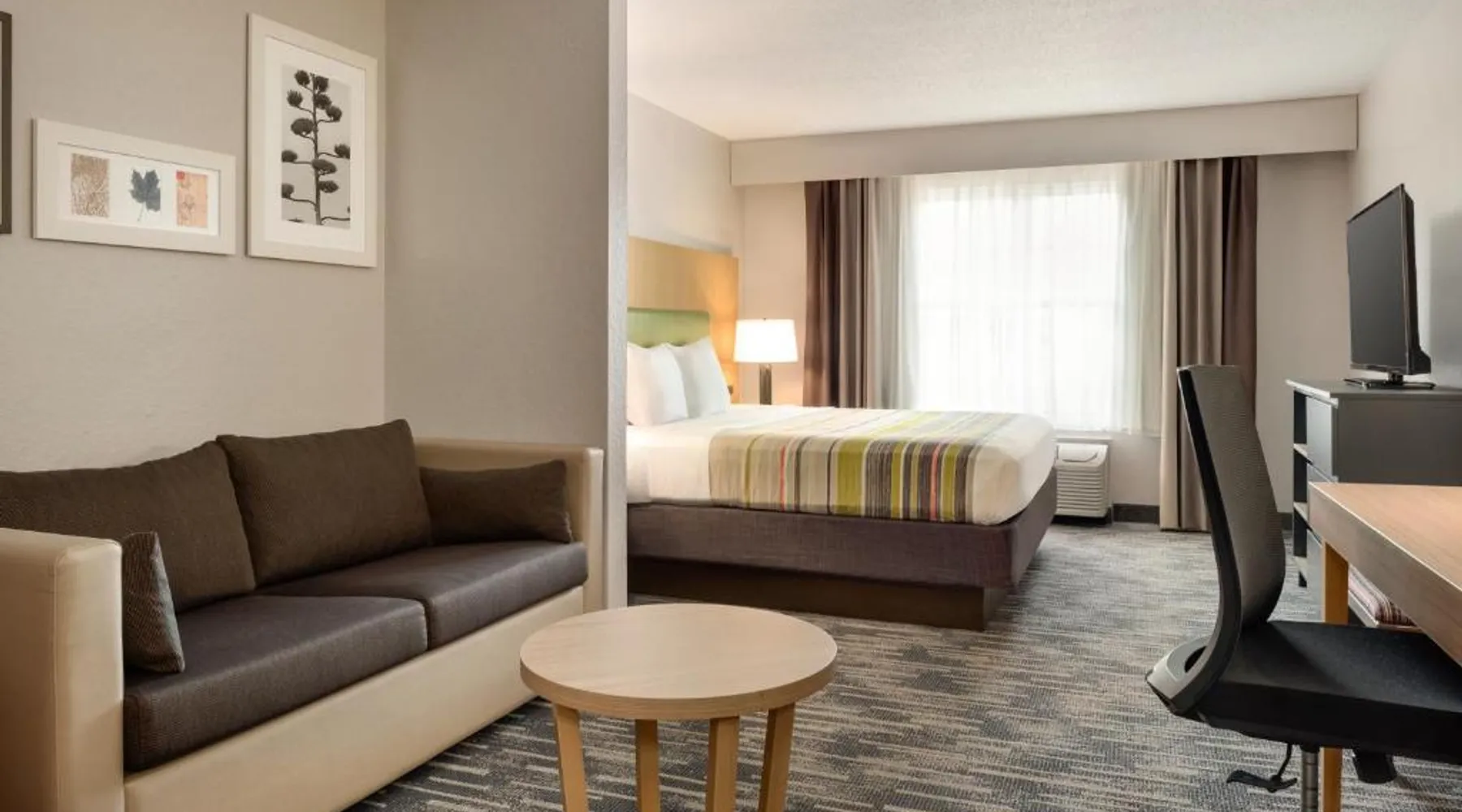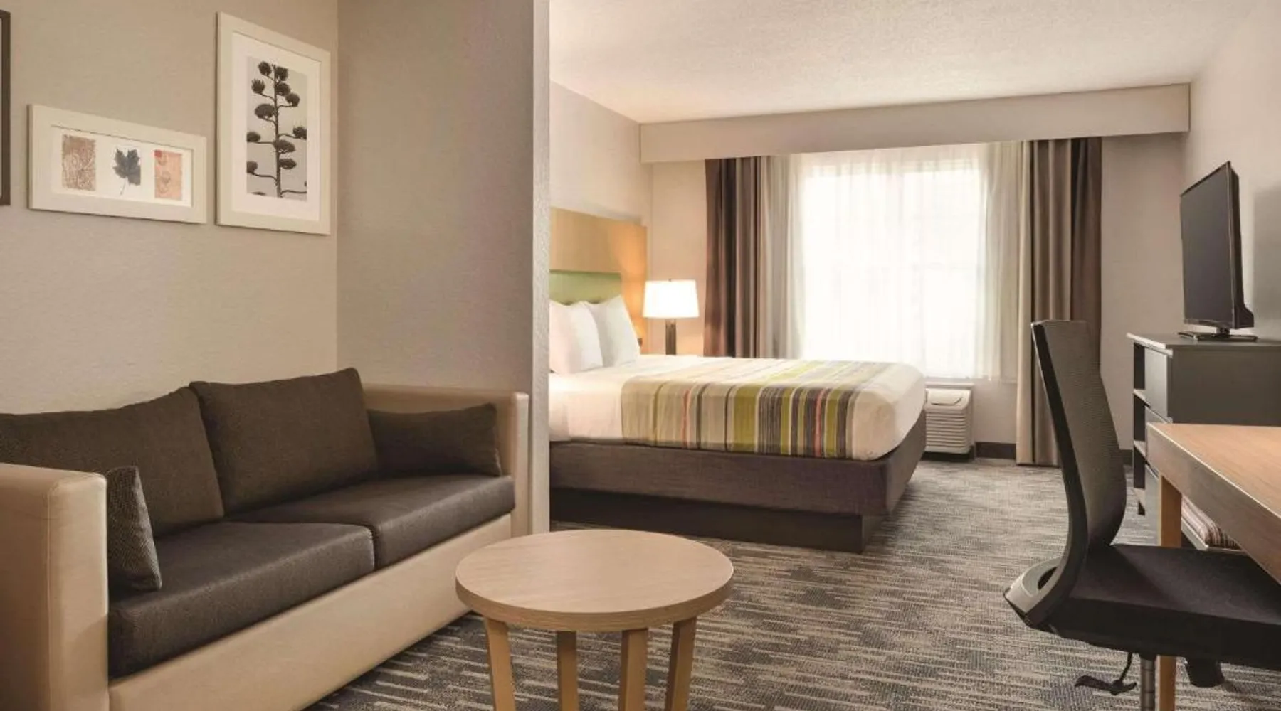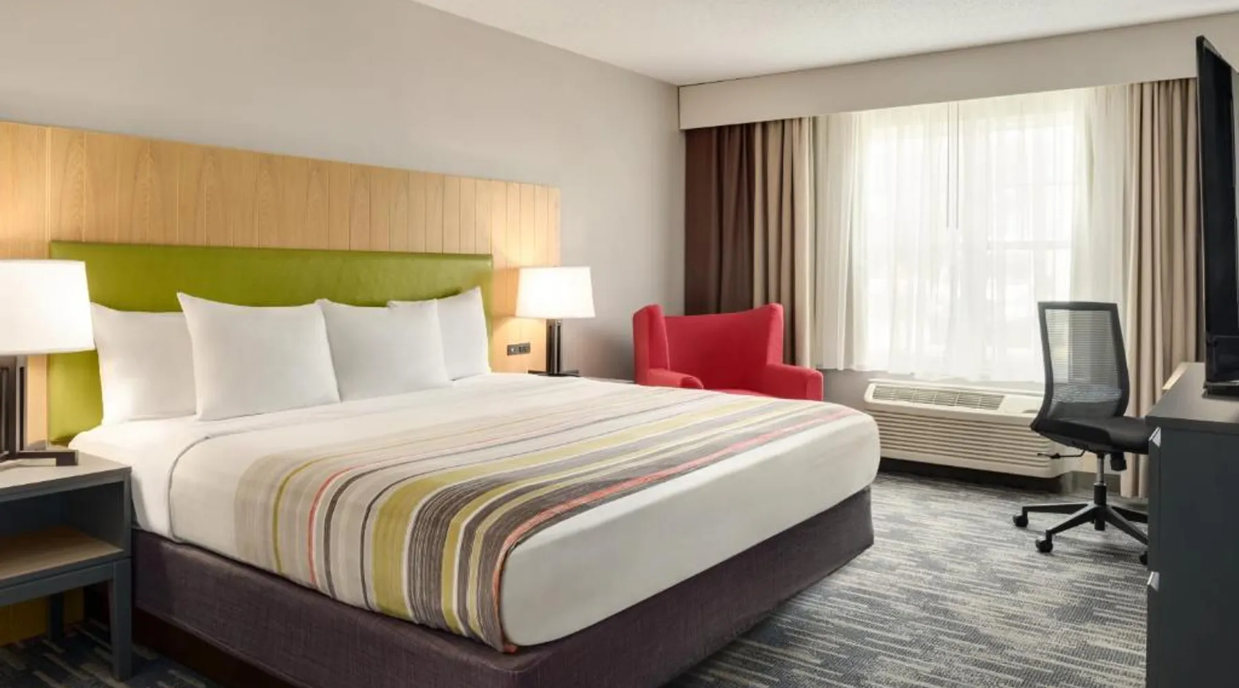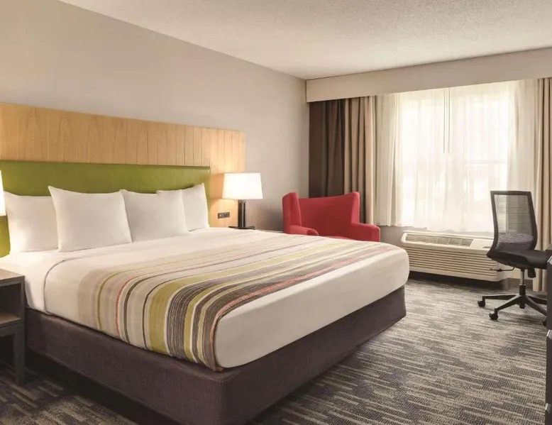 Comfortable Accommodations: Country Inn & Suites by Radisson in Pella offers family rooms with air-conditioning, private bathrooms, and free WiFi. Each room includes a tea and coffee maker, work desk, and TV. Wellness and Leisure: Guests can enjoy a spa and wellness center, sauna, fitness center, indoor swimming pool, and sun terrace. Additional facilities include a hot tub, lounge, and outdoor seating area. Convenient Location: Located 52 mi from Des Moines International Airport, the hotel is near attractions such as Tassel Ridge Winery (12 mi) and Grand Theater (14 mi). Free on-site parking and electric vehicle charging are available. Guest Satisfaction: Highly rated for room cleanliness, breakfast provided by the property, and convenient location. Offering free WiFi and a TV with HD channels, this room also includes a microwave, refrigerator, coffee machine and a sofa bed.