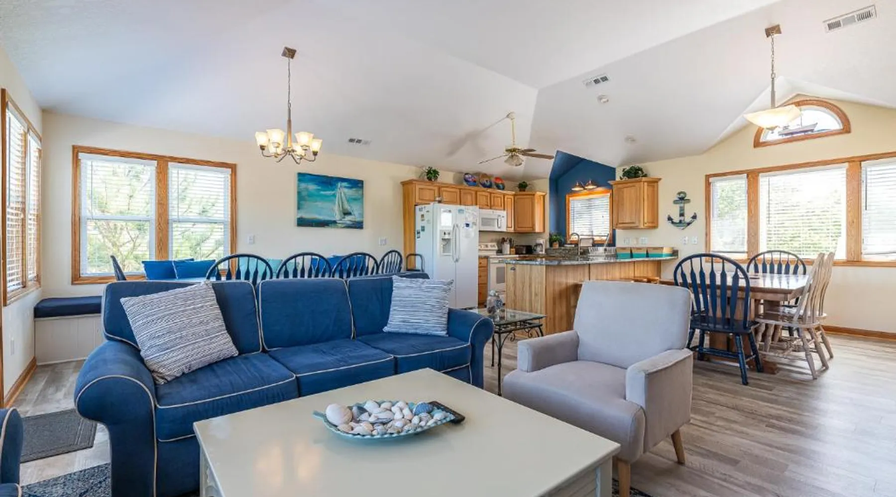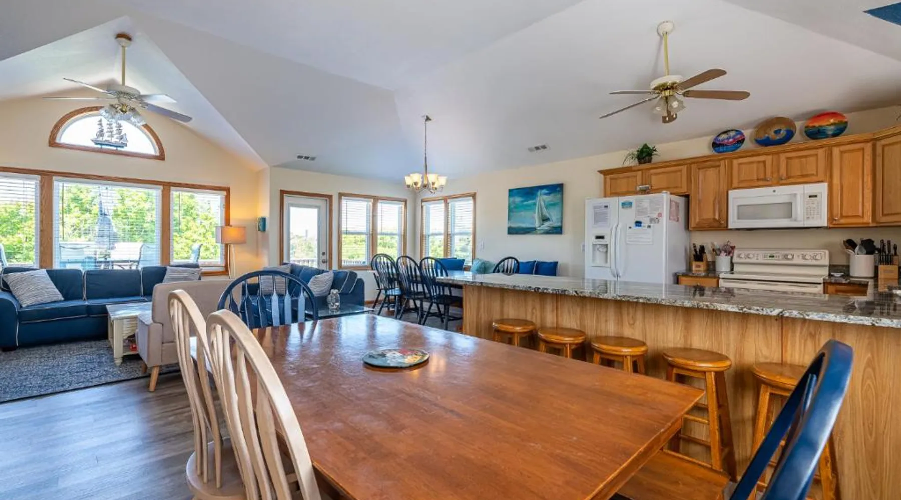 Comfortable Accommodations: Time Out in Corolla offers a holiday home with sea views, air-conditioning, and a private pool. The property includes a fully equipped kitchen, washing machine, and a private bathroom. Leisure Facilities: Guests can relax in the hot tub or enjoy the waterpark. Free on-site parking is available, along with a seating area and a barbecue for outdoor activities. Convenient Location: Corolla Beach is a 7-minute walk away, providing easy access to local attractions. The surrounding area offers various activities, including fishing and kayaking. This holiday home features a private pool. The holiday home provides a wardrobe, as well as a private bathroom boasting a shower. Guests will find a stovetop, a refrigerator, a dishwasher and kitchenware in the kitchen. The holiday home also comes with a barbecue. The air-conditioned holiday home features a TV with cable channels, a washing machine, a tea and coffee maker, a seating area as well as sea views.