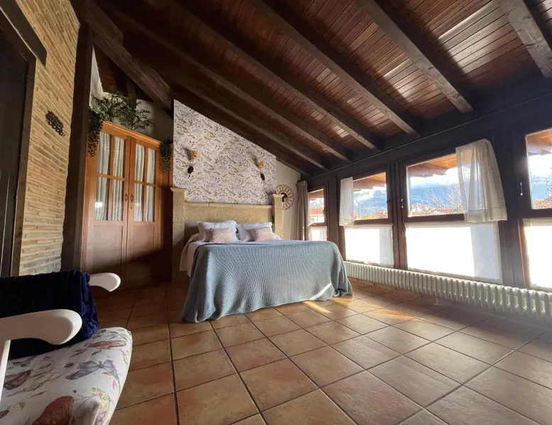 Comfortable Accommodations: Agroturismo el Encuentro in Leza offers family rooms with private bathrooms, mountain and city views, and free WiFi. Each room includes a washing machine, hairdryer, and free toiletries. Convenient Facilities: Guests benefit from express check-in and check-out, a tour desk, and luggage storage. Free parking is available, and the property features a washing machine, TV, and tiled floors. Local Attractions: Located 25 mi from Logroño–Agoncillo Airport, the bed and breakfast is near Fernando Buesa Arena (27 mi) and the Spanish Federation of Friends of the Camino de Santiago Associations (14 mi). Other points of interest include La Rioja Museum and Co-Cathedral of Santa María de la Redonda, each 14 mi away. Activities and Services: Agroturismo el Encuentro offers pub crawls and executive lounge access. Reception staff speak Spanish and Basque, ensuring a comfortable stay. This suite's special feature is the fireplace. The suite features 1 bedroom and 1 bathroom with a shower and free toiletries. The suite provides a flat-screen TV with cable channels, a washing machine, executive lounge access, a wardrobe as well as mountain views. The unit offers 1 bed.