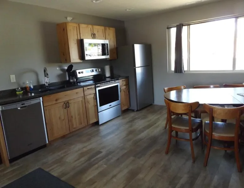 Comfortable Accommodations: Big Spirit Resort in Spirit Lake offers comfortable rooms with air-conditioning, private bathrooms, and free WiFi. Each room includes a patio, dining area, and modern amenities such as a TV and microwave. Convenient Facilities: Guests enjoy private check-in and check-out, housekeeping service, and an electric vehicle charging station. Free on-site parking is available, along with amenities like a barbecue and outdoor furniture. Prime Location: Located 98 mi from Sioux Falls Regional Airport and 7.5 mi from Arnolds Park Amusement Park, the resort provides easy access to local attractions. Guests appreciate the lakeside views and the cleanliness of the rooms. The single room features air conditioning, a private entrance, as well as a private bathroom boasting a walk-in shower and a hairdryer. Guests will find a stovetop, a refrigerator, kitchenware and an oven in the well-equipped kitchenette. The single room also comes with a barbecue. A seating area with a flat-screen TV, a tea and coffee maker and a patio are offered in this single room. The unit has 1 bed.