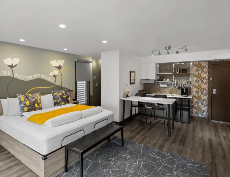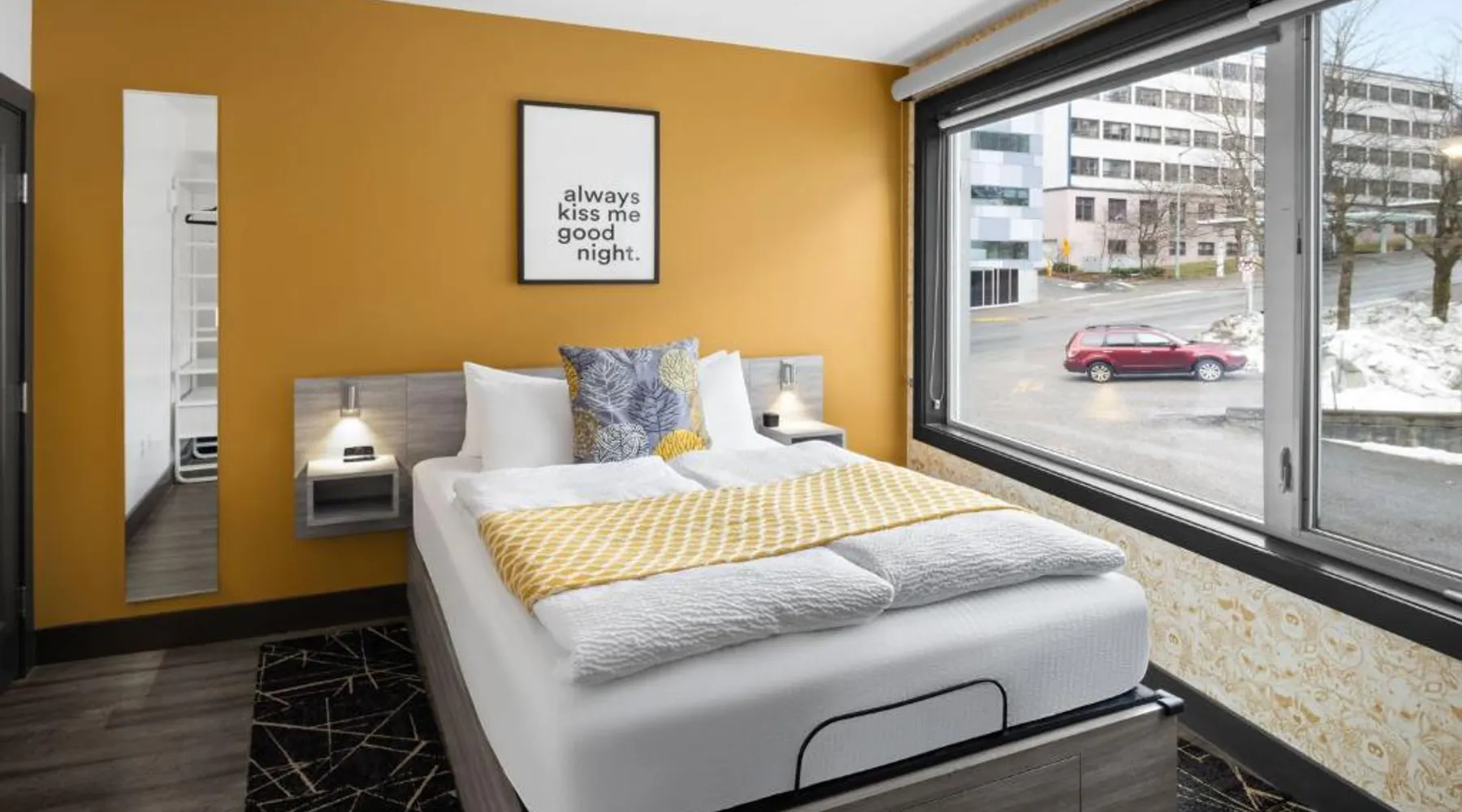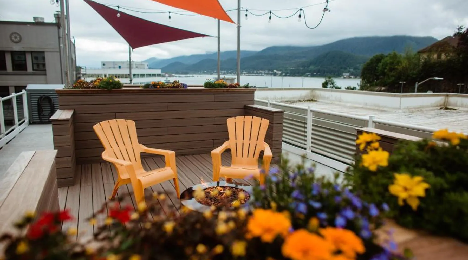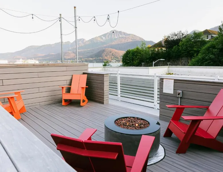 Comfortable Accommodations: Silverbow Inn in Juneau offers family rooms with private bathrooms, equipped with modern amenities including free WiFi, bathrobes, and streaming services. Each room features a work desk, TV, and wardrobe, ensuring a pleasant stay. Dining Experience: The family-friendly restaurant serves Italian cuisine with vegetarian, vegan, and gluten-free options. Guests can enjoy breakfast with continental, American, buffet, and vegetarian selections, including juice, cheese, and fruits. Leisure Facilities: The inn offers a sun terrace, outdoor fireplace, hot tub, and outdoor seating area. Additional amenities include a lounge, shared kitchen, and picnic area, providing ample space for relaxation and socializing. Convenient Location: Located 8.1 mi from Juneau International Airport and a 9-minute walk to Mt Roberts Tramway, the property is near attractions such as Glacier Gardens Rainforest Adventure (7.5 mi) and University Of Alaska Southeast (12 mi). Guests appreciate the friendly staff and excellent service. This spacious suite consists of 1 living room, 1 separate bedroom and 1 bathroom with a shower and free toiletries. Meals can be prepared in the well-fitted kitchenette, which comes with a stovetop, a refrigerator, kitchenware and a microwave. The suite provides a tea and coffee maker, a seating area, a dining area, a flat-screen TV with streaming services, as well as city views. The unit offers 2 beds.
