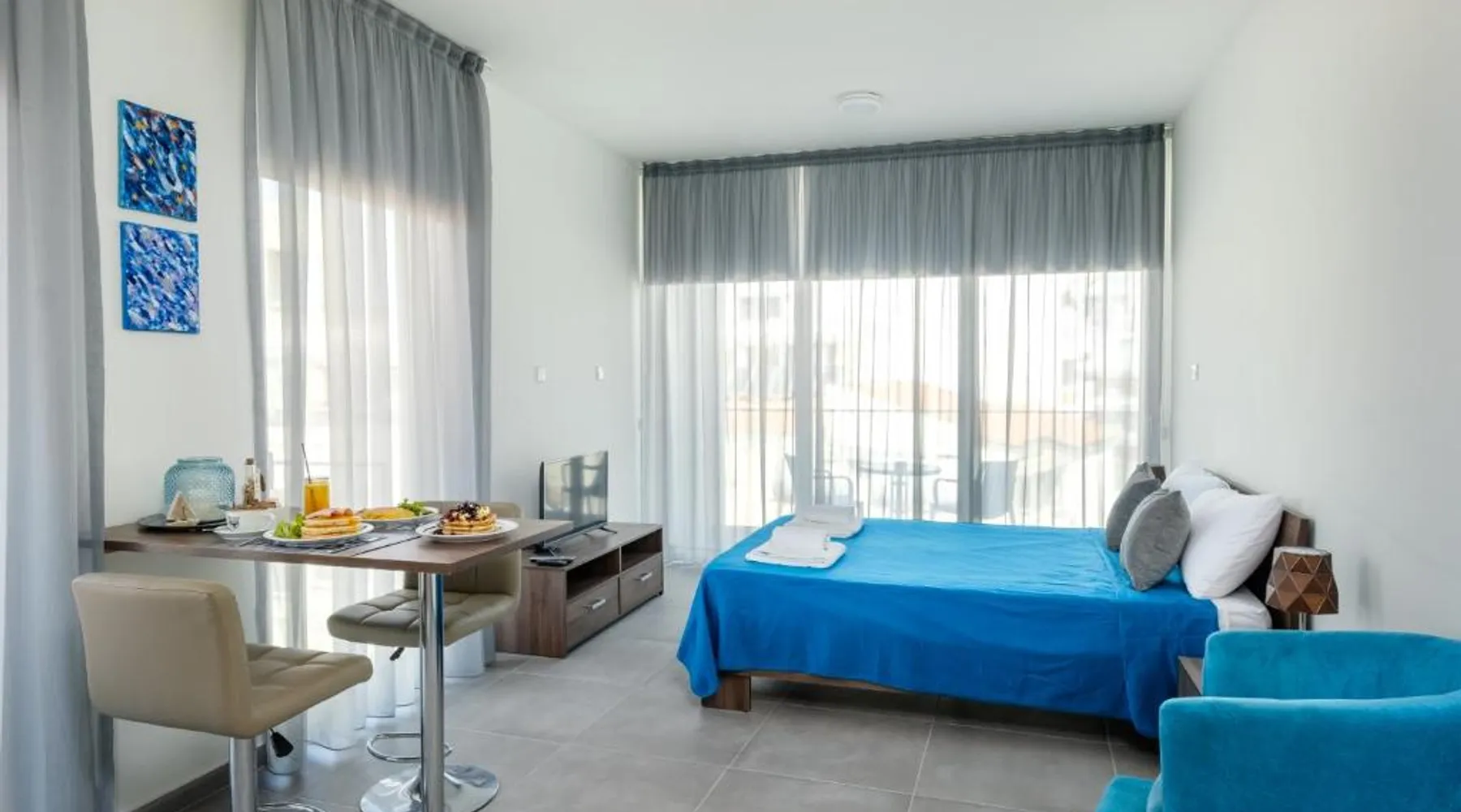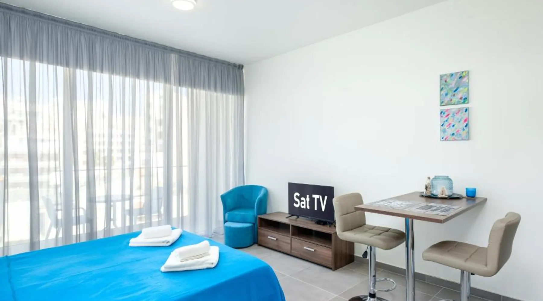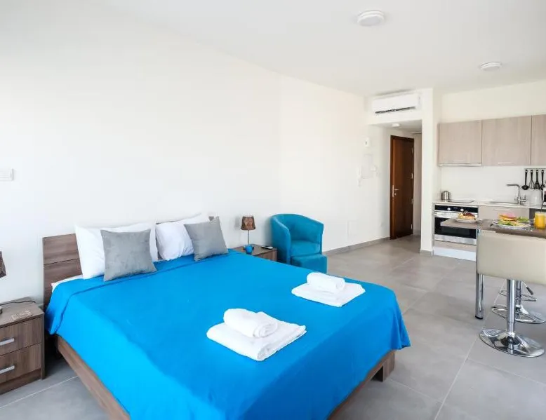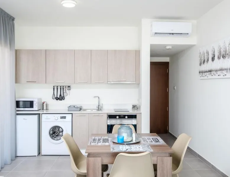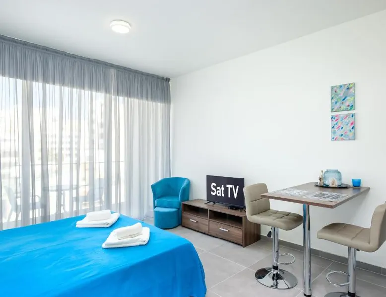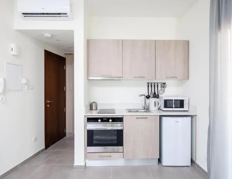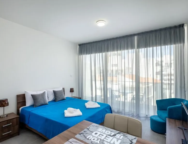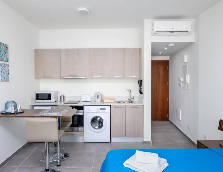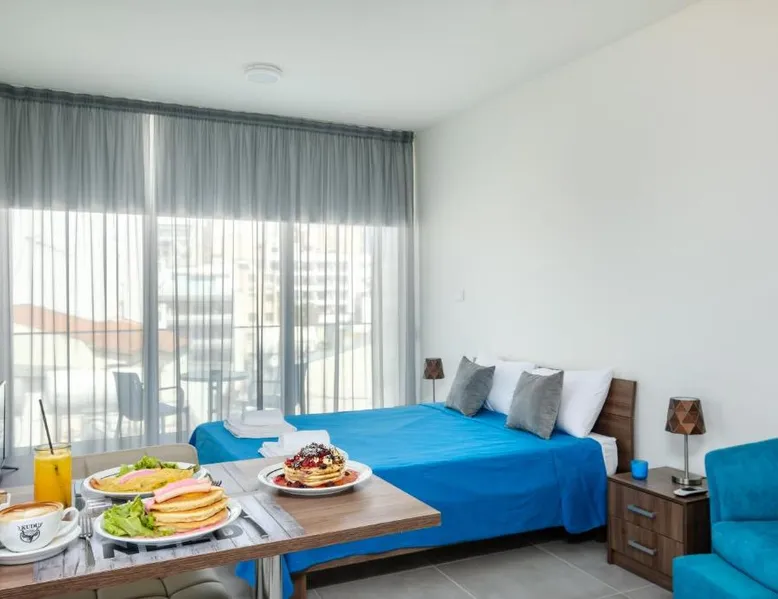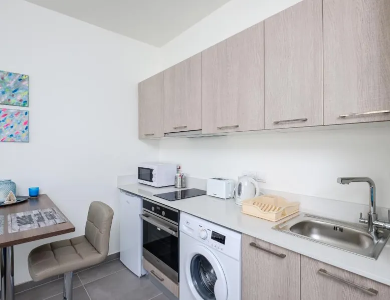 Prime City Center Location: The Habitat Mediterraneo - Self Check-in in Larnaka offers a central position with Finikoudes Beach just a 1-minute walk away. Saint Lazarus Church lies 984 feet nearby, while the Byzantine Museum of Saint Lazarus is 984 feet from the apartment. Comfortable Amenities: Guests enjoy free WiFi, air-conditioning, and a balcony with sea or city views. The apartment features a fully equipped kitchen, washing machine, private bathroom, and a work desk. Additional amenities include a sofa bed, TV, and free toiletries. Convenient Facilities: The property provides a elevator, full-day security, and parking. Larnaca International Airport is 1.9 mi away, and attractions such as Larnaca Marina and Finikoudes Promenade are within walking distance. Highly rated for its beach access, convenient location, and nearby food and drink options. Meals can be prepared in the well-fitted kitchen, which has a stovetop, a refrigerator, kitchenware and an oven. This air-conditioned studio is consisted of of a flat-screen TV with satellite channels, a private bathroom as well as a balcony with city views. The unit has 1 bed.