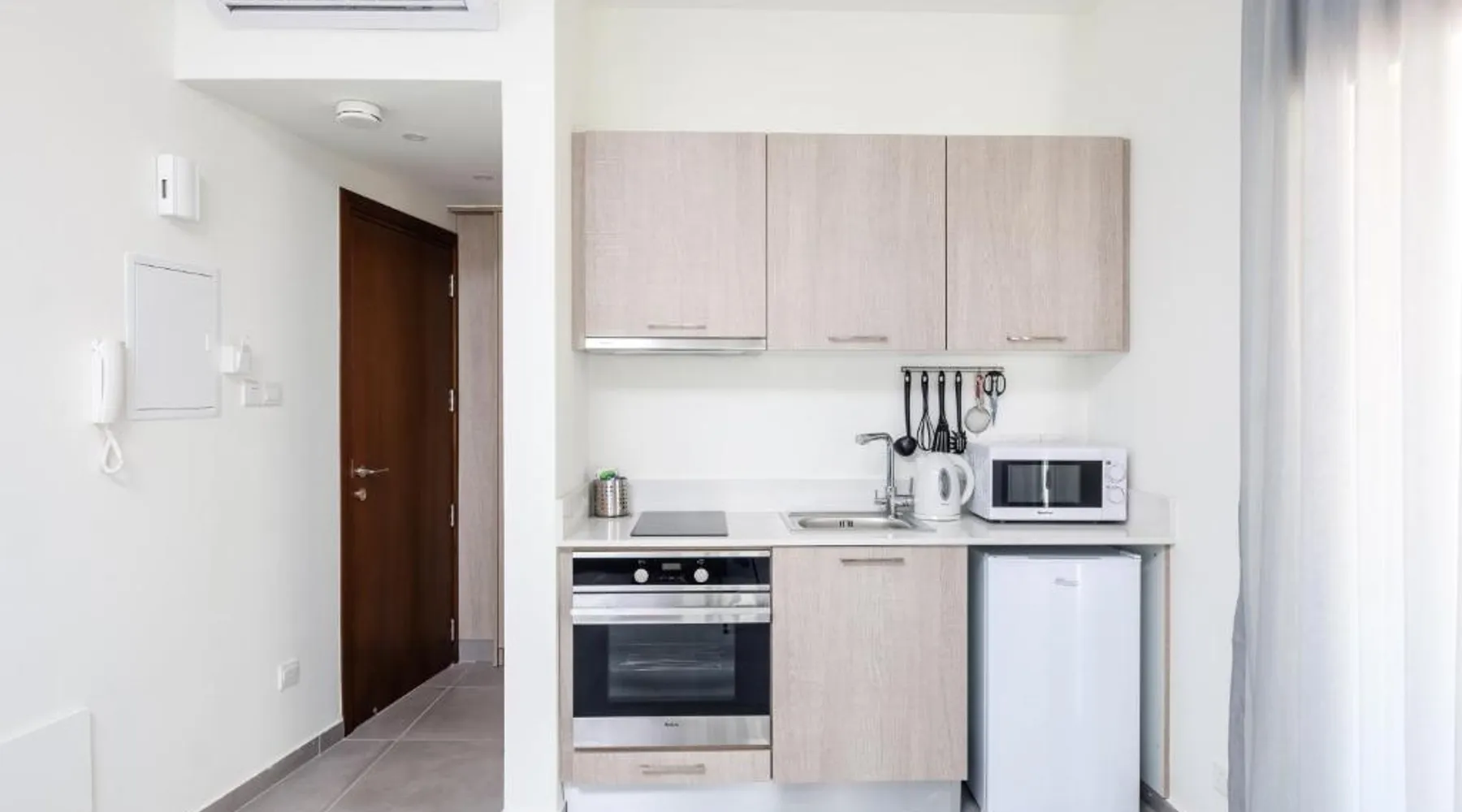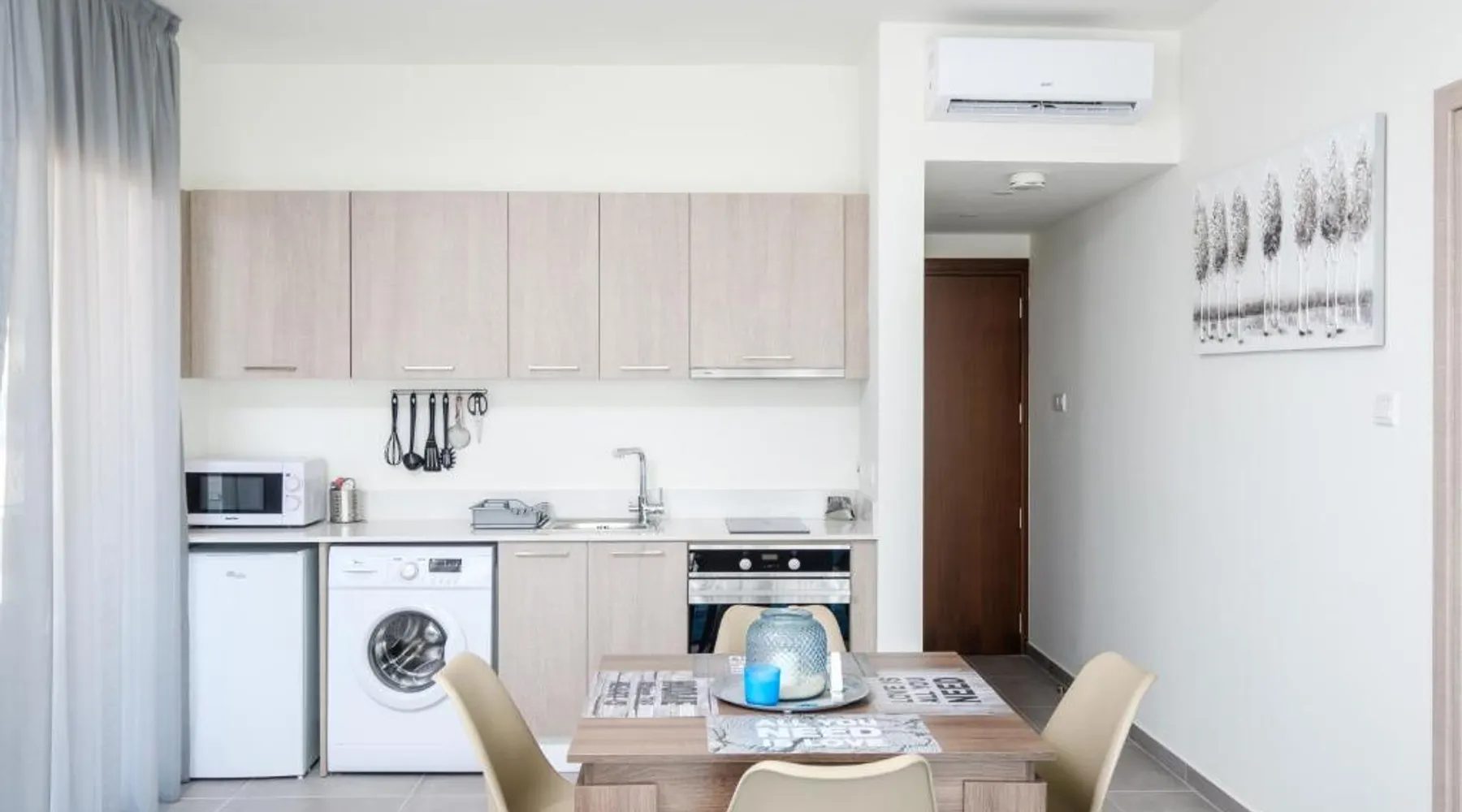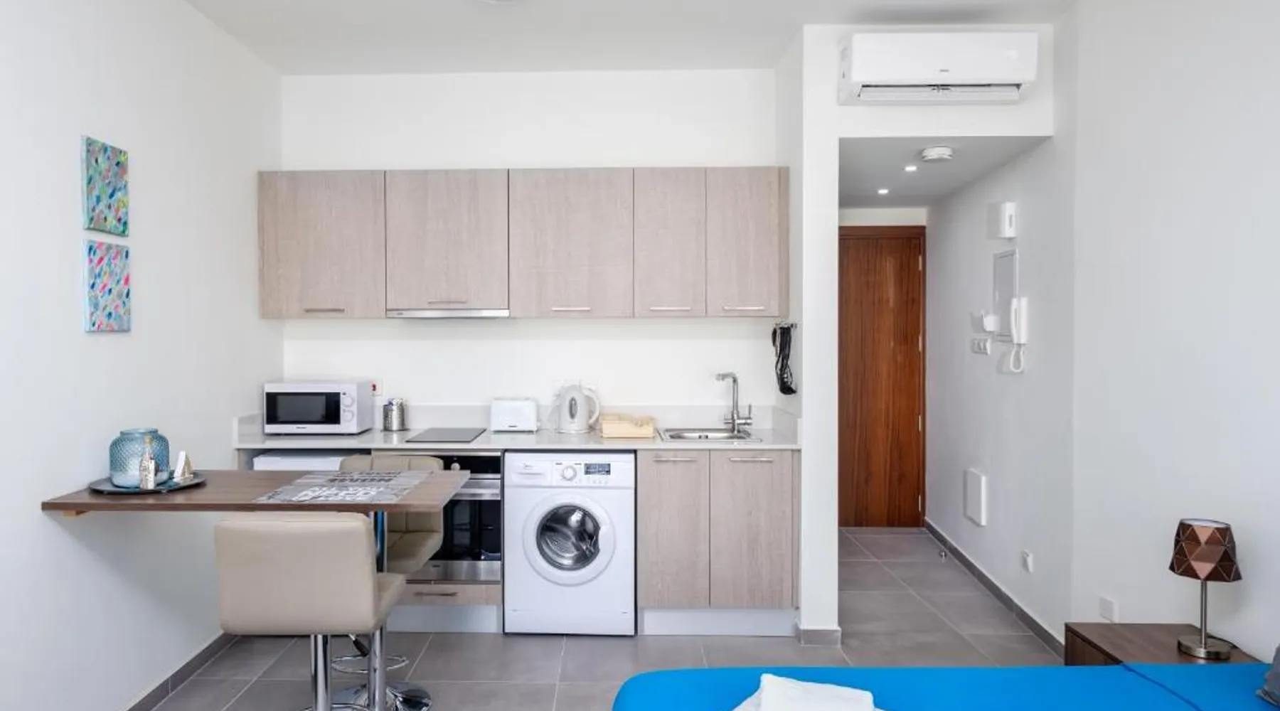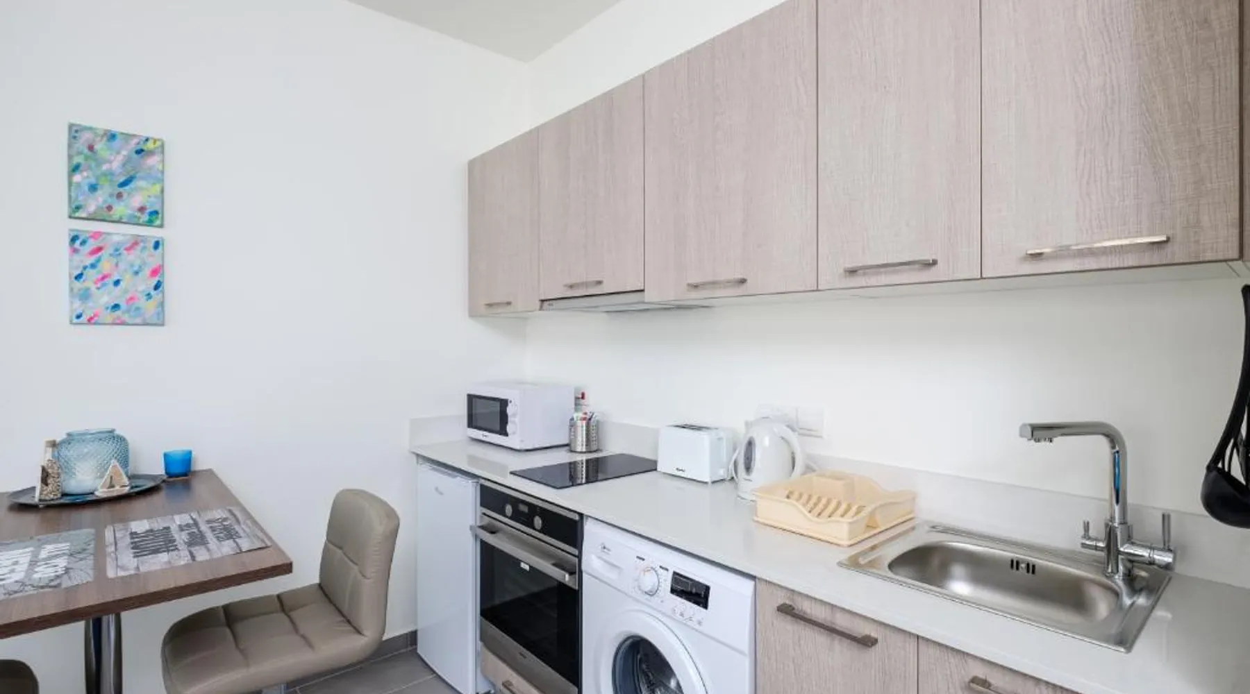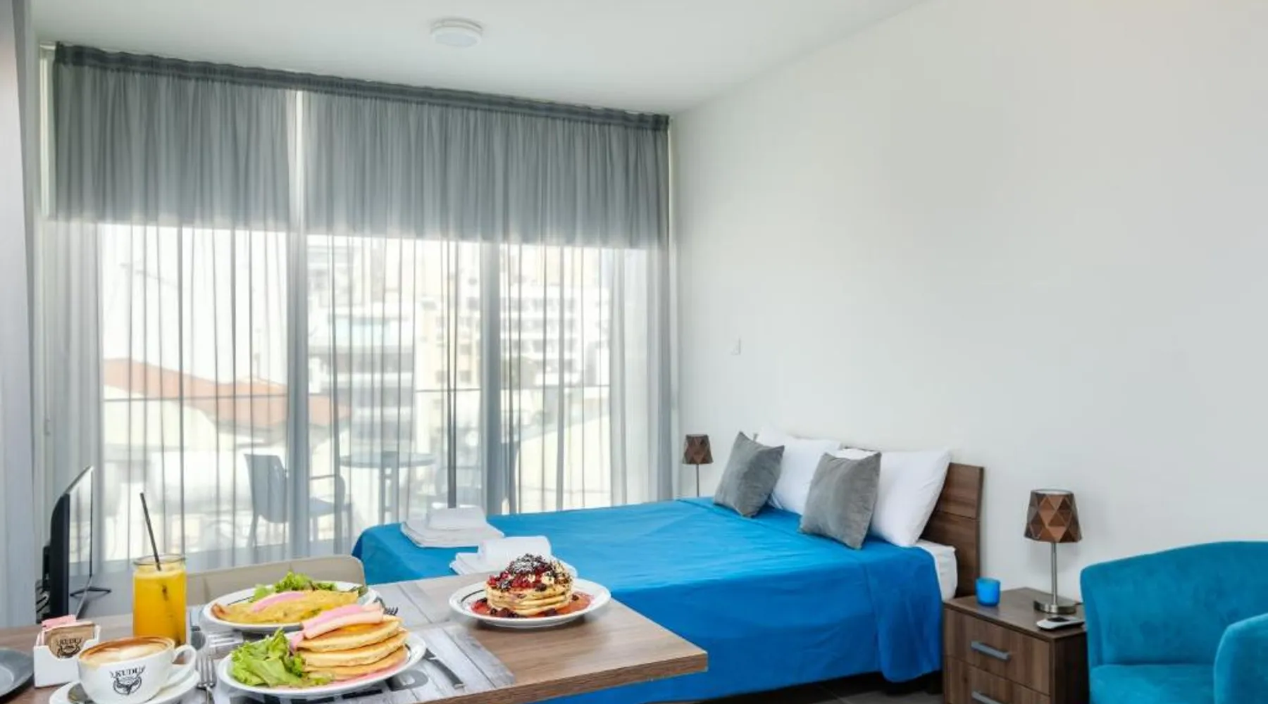 Prime City Center Location: The Habitat Mediterraneo - Self Check-in in Larnaka offers a central position with Finikoudes Beach just a 1-minute walk away. Saint Lazarus Church lies 984 feet nearby, while the Byzantine Museum of Saint Lazarus is 984 feet from the apartment. Comfortable Amenities: Guests enjoy free WiFi, air-conditioning, and a balcony with sea or city views. The apartment features a fully equipped kitchen, washing machine, private bathroom, and a work desk. Additional amenities include a sofa bed, TV, and free toiletries. Convenient Facilities: The property provides a elevator, full-day security, and parking. Larnaca International Airport is 1.9 mi away, and attractions such as Larnaca Marina and Finikoudes Promenade are within walking distance. Highly rated for its beach access, convenient location, and nearby food and drink options. Meals can be prepared in the well-fitted kitchen, which has a stovetop, a refrigerator, kitchenware and an oven. This air-conditioned studio is consisted of of a flat-screen TV with satellite channels, a private bathroom as well as a balcony with city views. The unit has 1 bed.