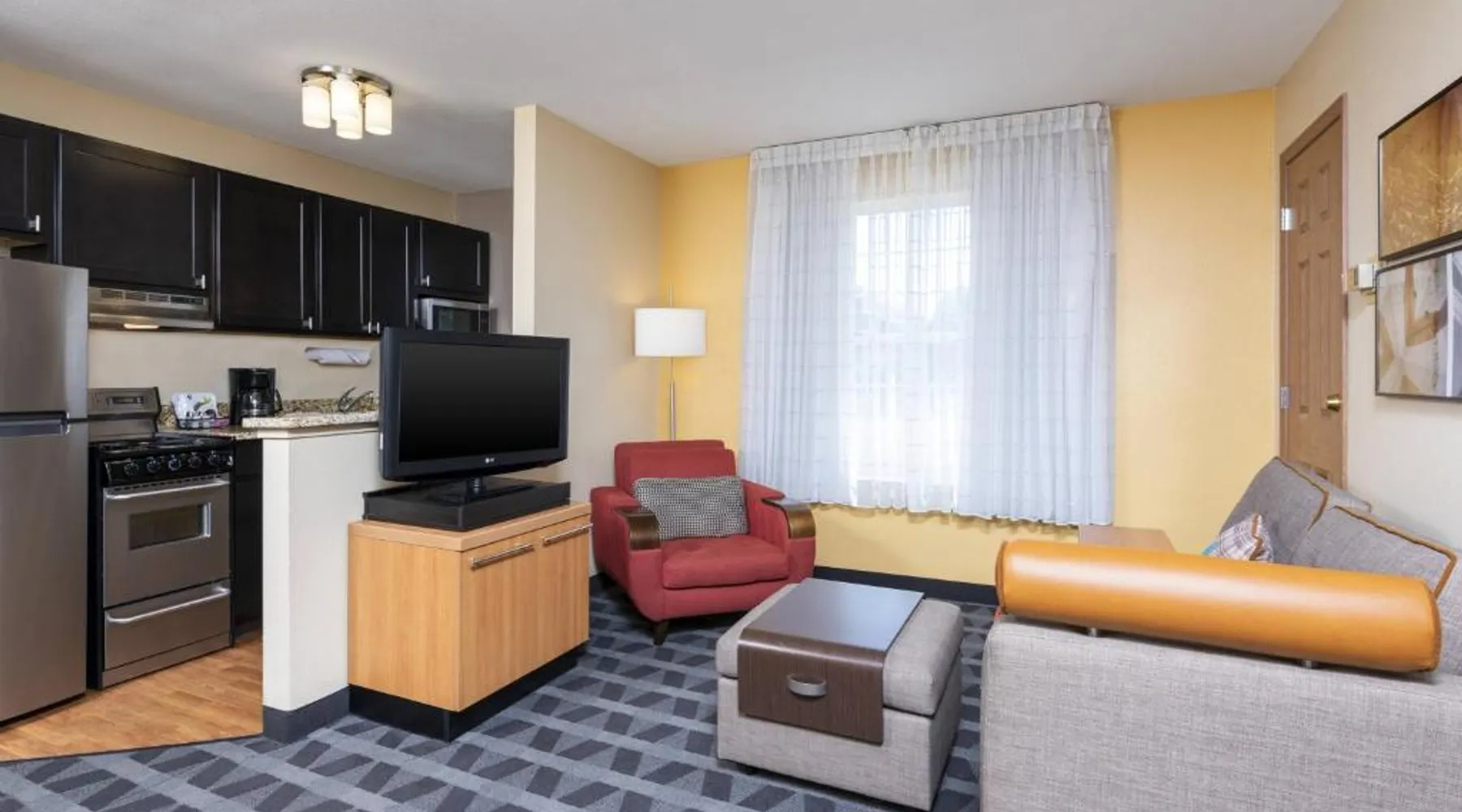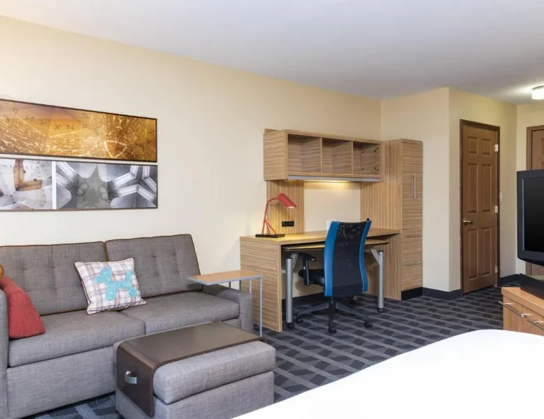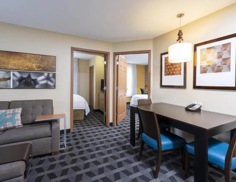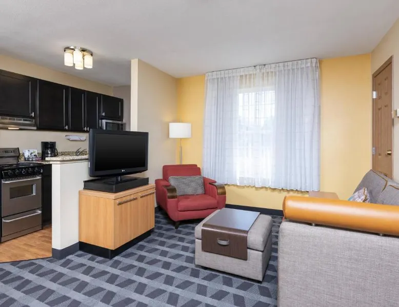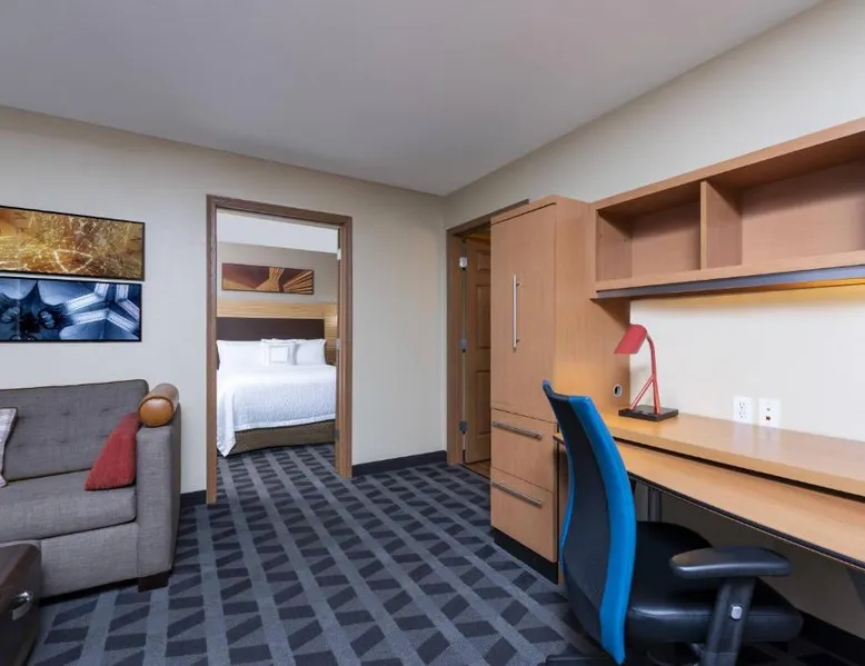 Comfortable Accommodations: TownePlace Suites by Marriott East Lansing in East Lansing offers family rooms with air-conditioning, private bathrooms, and fully equipped kitchens. Each room includes a work desk, seating area, and free toiletries. Exceptional Facilities: Guests enjoy a fitness center, free WiFi, and an outdoor fireplace. Additional amenities include a business area, minimarket, and bicycle parking. Free on-site parking is available. Delicious Breakfast: A continental buffet breakfast is served daily, featuring warm dishes, juice, and fruits. Private check-in and check-out services ensure a smooth arrival and departure. Prime Location: Located 11 mi from Capital Region International Airport, the hotel is near attractions such as Jack Breslin Arena and Wharton Center, both 2.5 mi away. Michigan State University is 3.1 mi distant. This suite features a separate living area, sofa bed and 2 cable TVs. A full kitchen is also included. Please note that the room rate is based on 6 guests. Maximum occupancy is 6 guests (see Hotel Policies).