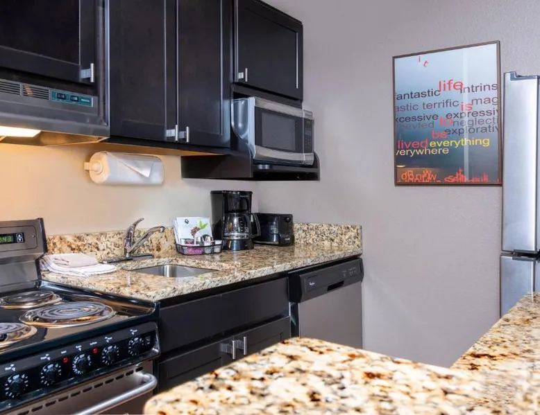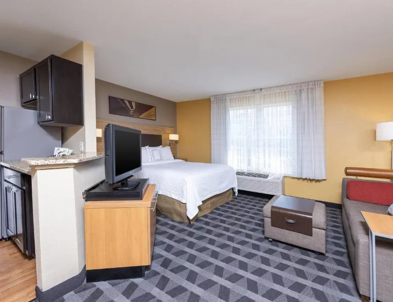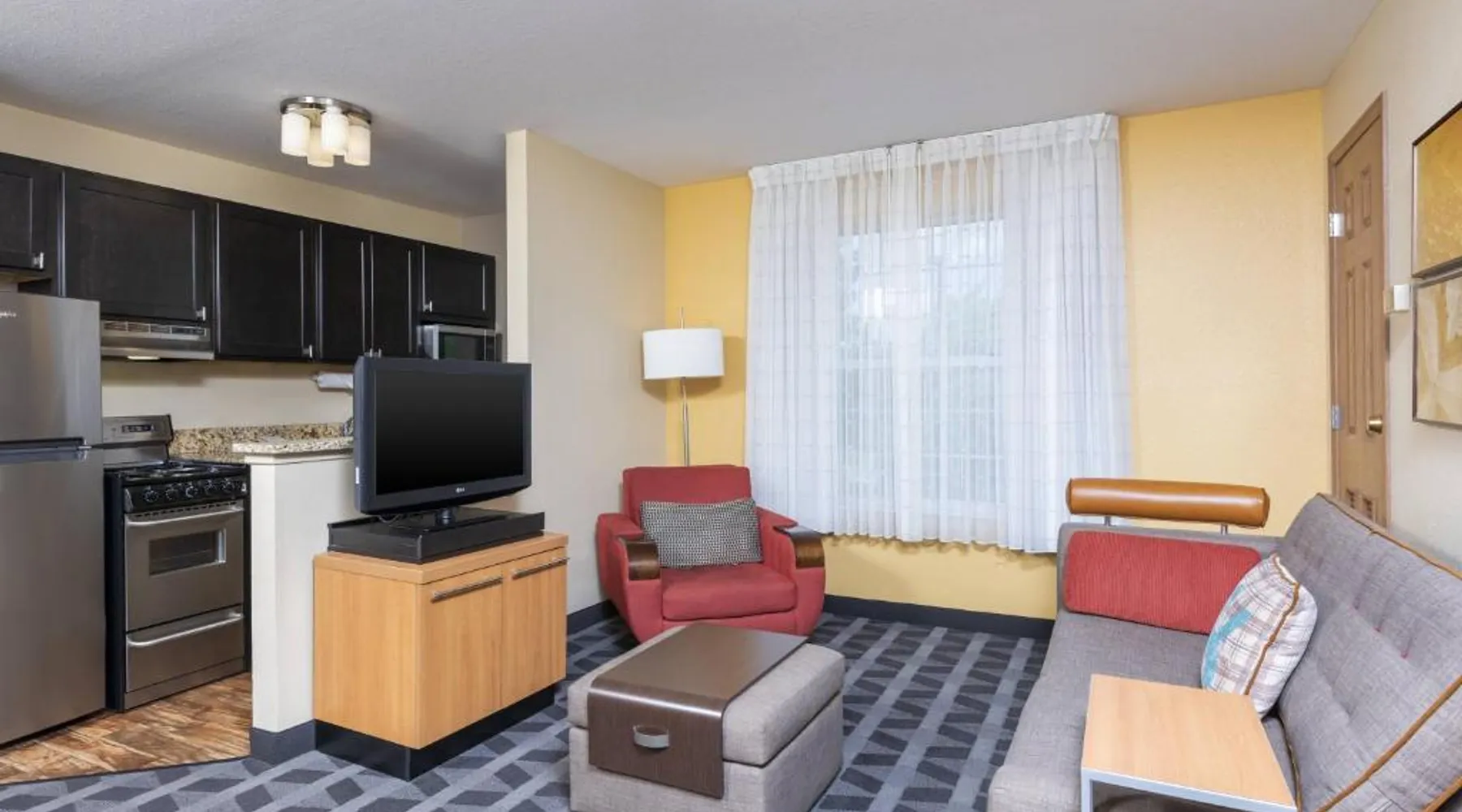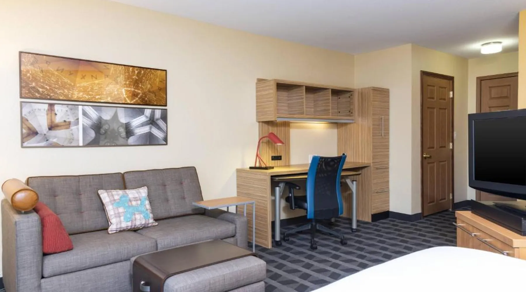 Comfortable Accommodations: TownePlace Suites by Marriott East Lansing in East Lansing offers family rooms with air-conditioning, private bathrooms, and fully equipped kitchens. Each room includes a work desk, seating area, and free toiletries. Exceptional Facilities: Guests enjoy a fitness center, free WiFi, and an outdoor fireplace. Additional amenities include a business area, minimarket, and bicycle parking. Free on-site parking is available. Delicious Breakfast: A continental buffet breakfast is served daily, featuring warm dishes, juice, and fruits. Private check-in and check-out services ensure a smooth arrival and departure. Prime Location: Located 11 mi from Capital Region International Airport, the hotel is near attractions such as Jack Breslin Arena and Wharton Center, both 2.5 mi away. Michigan State University is 3.1 mi distant. This suite features a separate living area, sofa bed and 2 cable TVs. A full kitchen is also included. Please note that the room rate is based on 6 guests. Maximum occupancy is 6 guests (see Hotel Policies).