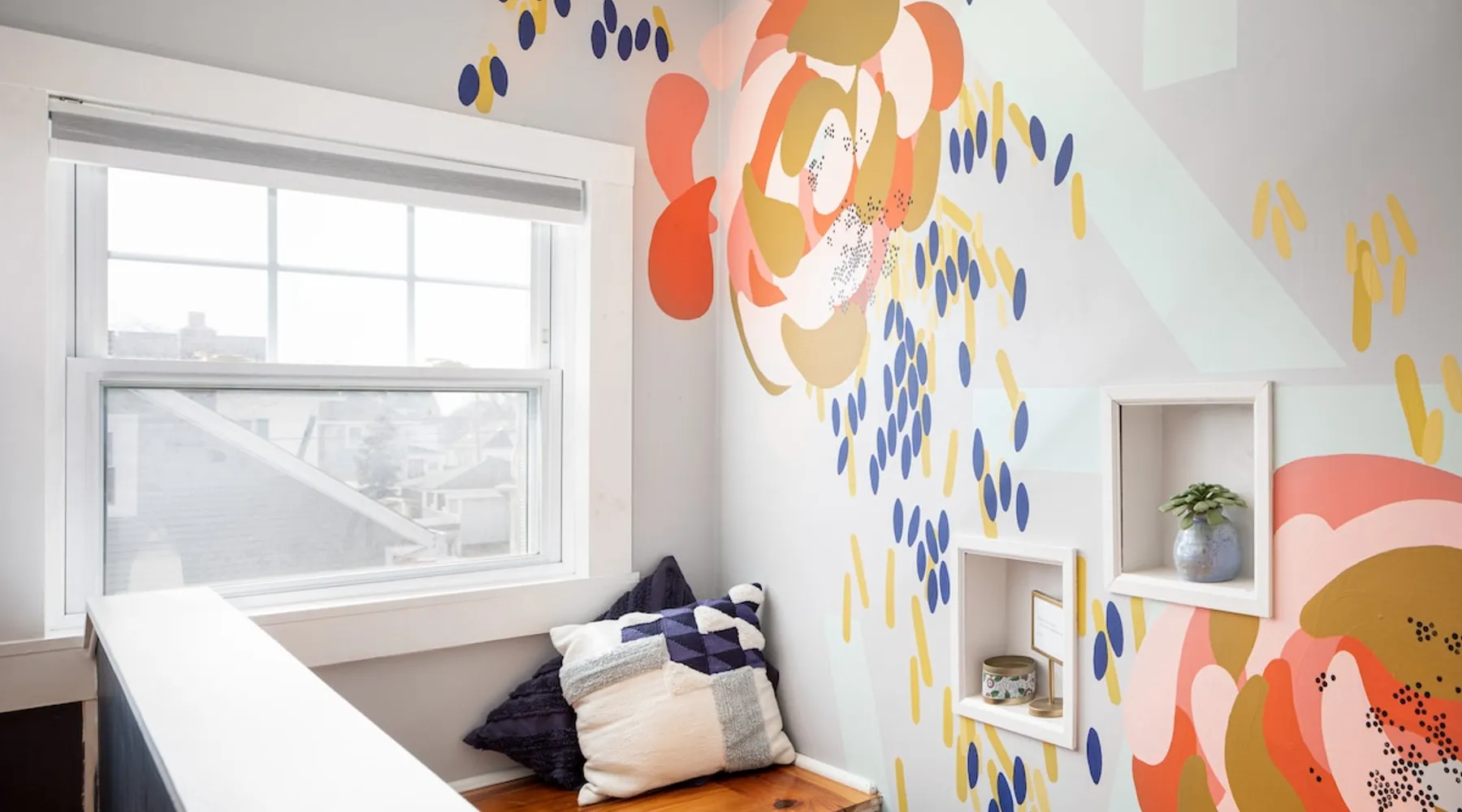 Providence is known as the Creative Capital. This space inspires creativity. From a one of a kind mural welcoming you to the space to skylights over the bathtub for stargazing. Everything you need for a memorable and relaxing weekend in Providence is here. The space Recently renovated, this Airbnb is all about creating a space where people can feel relaxed and creative. It is bright and filled with comfy textures. The mural is the most unique part of the space- famous for selfies among visitors. The window seat by the mural is the perfect place to read or have a morning coffee. The space is a loft full of natural light. It has the layout of a studio with an (incredibly comfortable) queen bed at the end of the space, but it also has a small bedroom with an (equally comfortable) twin bed. The bathroom is one of the best parts of the space. The skylights make it feel like you’re in the forest. The highlight is the bathtub, perfect for relaxation and even some stargazing. In the winter, enjoy heated floors as you start your morning. A paver patio and grill in the backyard are available for use and it's a great spot for a little backyard bonfire. The space has great wifi, tons of books and is the perfect spot for exploring the amazing city of Providence. Guest access You'll have access to the entire loft which has its own private entrance. The first floor of the house and the basement are not available for guests. Note: The loft does not have a full kitchen, but it has a mini-fridge and dining table. Other things to note Wifi Access Parking on the Street (typically lots of parking available) AC Unit and fans make the space cool in the summer. Registration Details RE 00059-STR