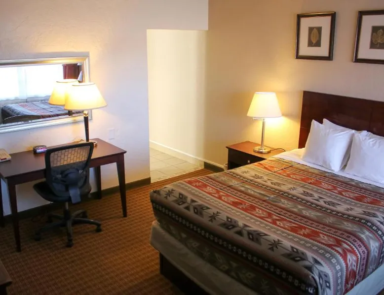 This hotel is located in Alamogordo. All rooms are equipped with free WiFi and a flat-screen cable TV. Holloman Air Force Base is 15 minutes’ drive from the hotel. A work desk, a microwave and coffee-making facilities are featured in each room at Magnuson Hotel and Suites Alamogordo. An en suite bathroom with a hairdryer is also included. Guests can take advantage of a fitness center and a business centre at Alamogordo Magnuson Hotel and Suites. A 24-hour front desk is available. The property provides free parking. Alameda Park Zoo is 5 minutes’ drive from the hotel. White Sands National Monument is 23.4 km from Magnuson Hotel and Suites Alamogordo. This room features a satellite TV, air conditioning, microwave,/mini-refrigerator, single-serve coffee-maker. Non-Smoking room.