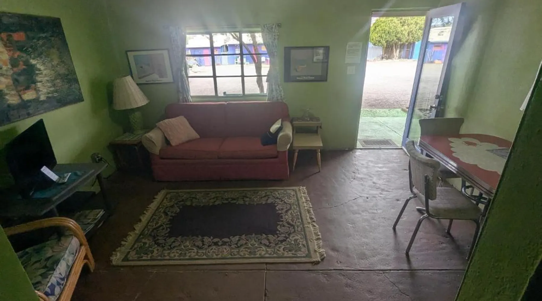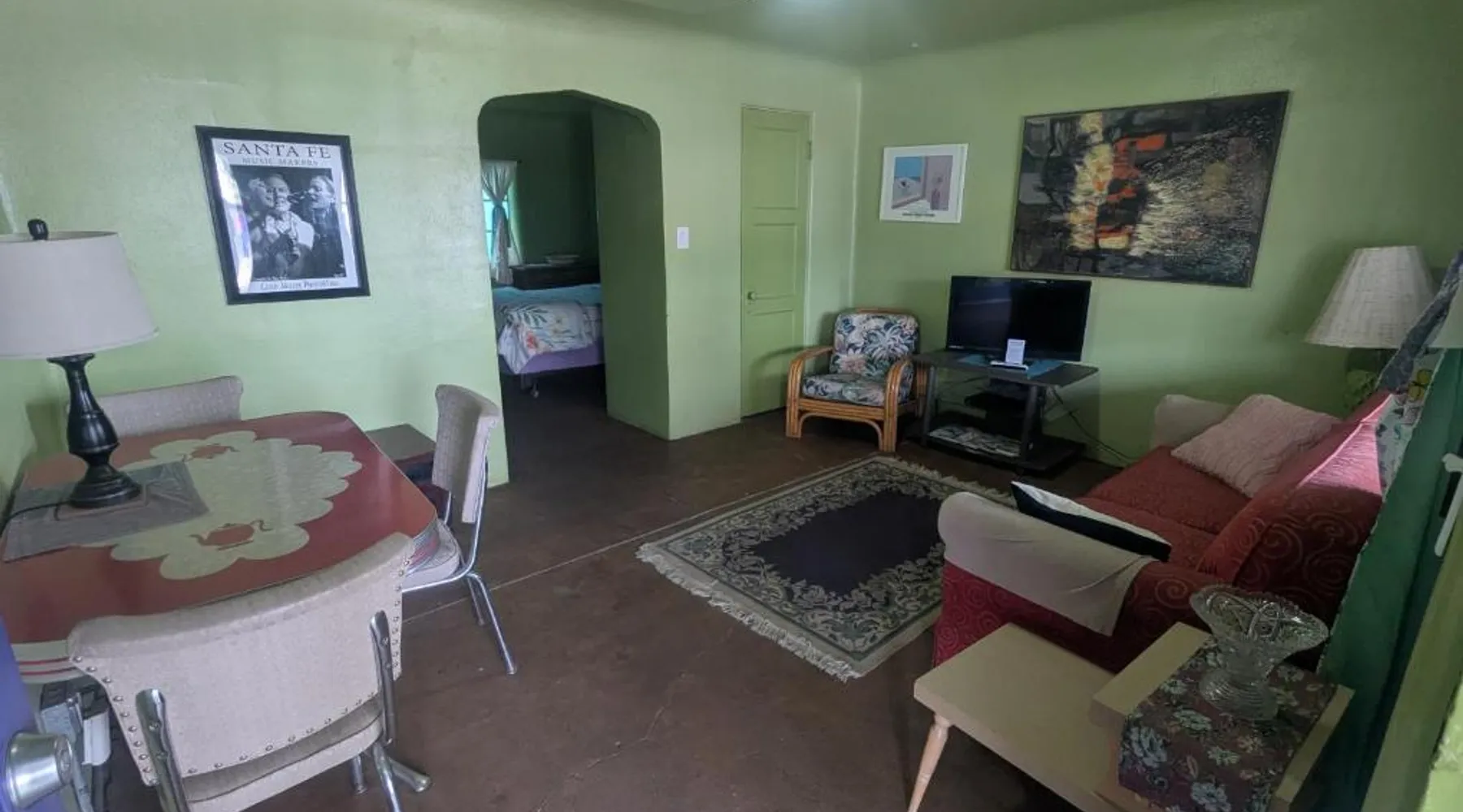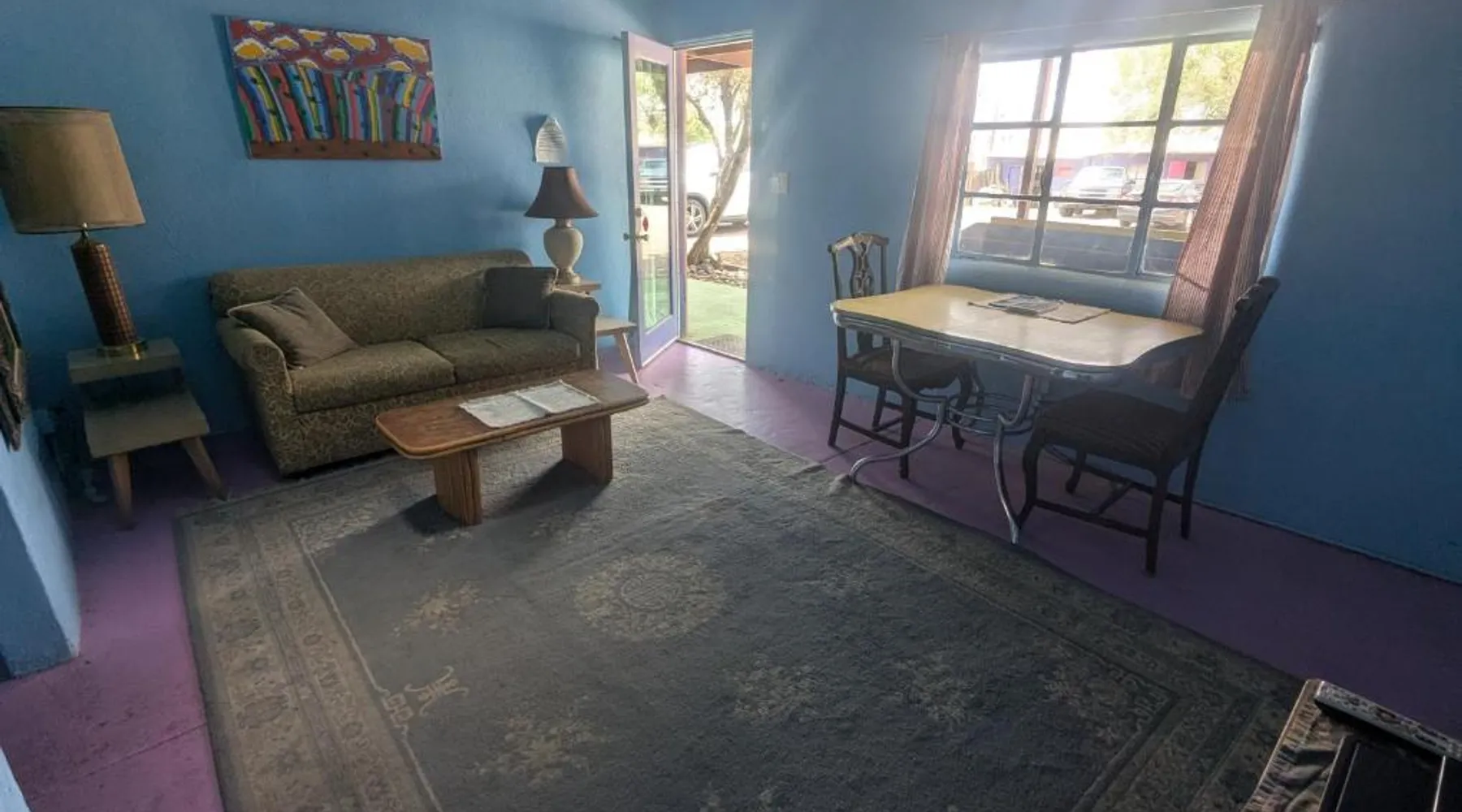 Use of Hot Mineral Baths are offered to all hotel guests during our business hours at Pelican Spa. Guest rooms are brightly decorated and uniquely furnished. Free Wi-Fi is available in all guest rooms at Pelican Spa. A flat-screen satellite TV is available and a kitchenette is featured in most rooms. All rooms offer a private entrance. Our establishment has 4 separate courtyards. The main pelican spa courtyard houses the 4 indoor private hot mineral baths. Elephant Butte Resevoir is about a 15 Minute drive from our establishment. Caballo Lake State Park is 20 minutes’ drive from the property. Shops and restaurants in downtown Truth Or Consequences are just blocks away. Sierra Del Rio Golf Course is 4.5 miles drive from the spa. This apartment comes with 1 living room, 1 separate bedroom and 1 bathroom with a bath and free toiletries. Guests can make meals in the kitchen that features a refrigerator, kitchenware and a microwave. The apartment features air conditioning, a tea and coffee maker, a seating area, a sofa, as well as a flat-screen TV with cable channels. The unit has 1 bed.