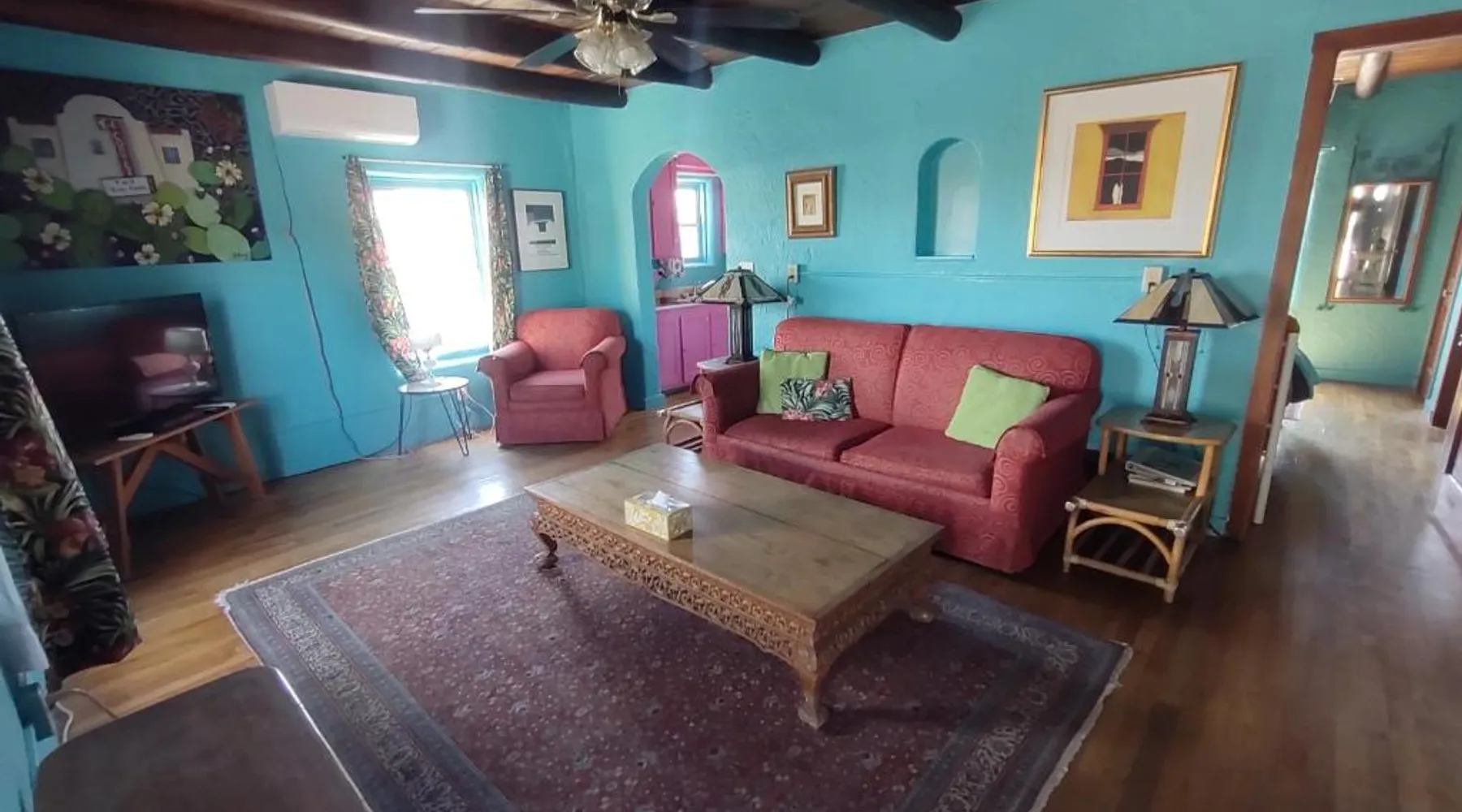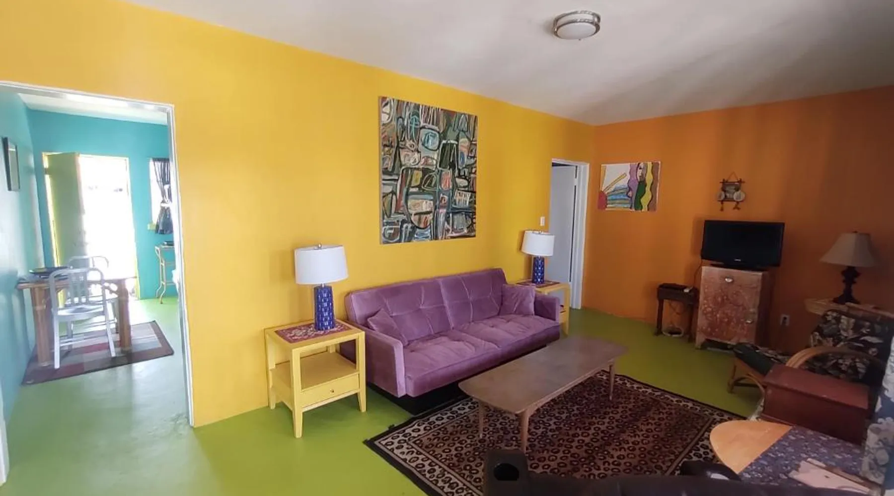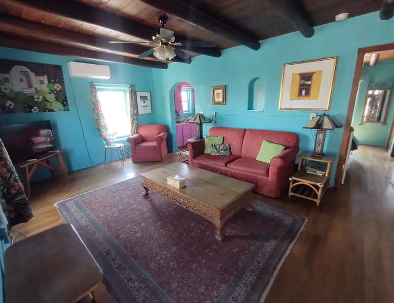 Use of Hot Mineral Baths are offered to all hotel guests during our business hours at Pelican Spa. Guest rooms are brightly decorated and uniquely furnished. Free Wi-Fi is available in all guest rooms at Pelican Spa. A flat-screen satellite TV is available and a kitchenette is featured in most rooms. All rooms offer a private entrance. Our establishment has 4 separate courtyards. The main pelican spa courtyard houses the 4 indoor private hot mineral baths. Elephant Butte Resevoir is about a 15 Minute drive from our establishment. Caballo Lake State Park is 20 minutes’ drive from the property. Shops and restaurants in downtown Truth Or Consequences are just blocks away. Sierra Del Rio Golf Course is 4.5 miles drive from the spa. This apartment comes with 1 living room, 1 separate bedroom and 1 bathroom with a bath and free toiletries. Guests can make meals in the kitchen that features a refrigerator, kitchenware and a microwave. The apartment features air conditioning, a tea and coffee maker, a seating area, a sofa, as well as a flat-screen TV with cable channels. The unit has 1 bed.