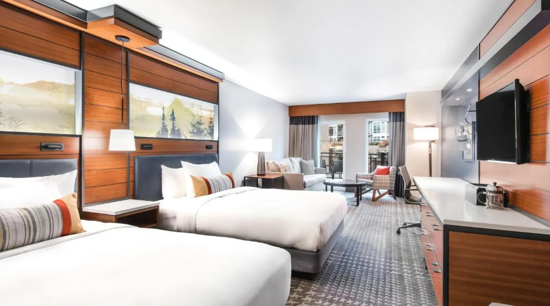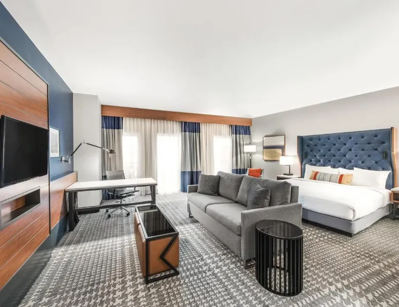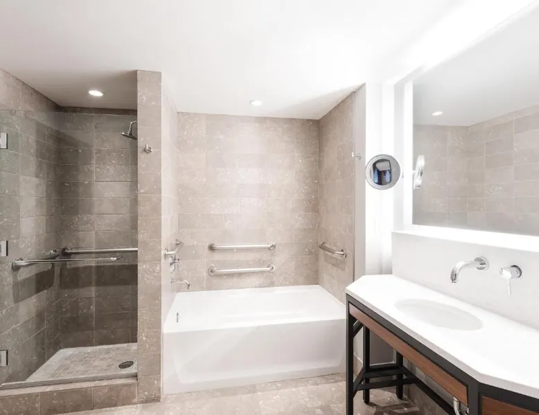 This 4-star hotel in downtown Kirkland is 2 blocks from Lake Washington and a 20-minute drive from downtown Seattle. The hotel offers an on-site restaurant and free Wi-Fi. The Heathman Hotel features a 32-inch flat-screen TV and Bose™ sound dock stereo system in every guest room. Free French press coffee and a separate boiling kettle for tea are also provided. Rooms also have designer bath amenities and a well-stocked honor bar. A fully equipped gym and business services are available at the Heathman. Guests can enjoy free use of bicycles for sightseeing or free transportation to major shopping and business districts. Located on site, Hearth restaurant offers traditional hearth oven cooking and a seasonal menu. Enjoy craft cocktails at the bar and year-round indoor or outdoor seating. This suite includes 1 living room, 1 separate bedroom and 1 bathroom with a bath and free toiletries. The air-conditioned suite offers a flat-screen TV with cable channels, a tea and coffee maker, a seating area, a wardrobe as well as city views. The unit has 1 bed.