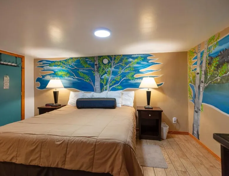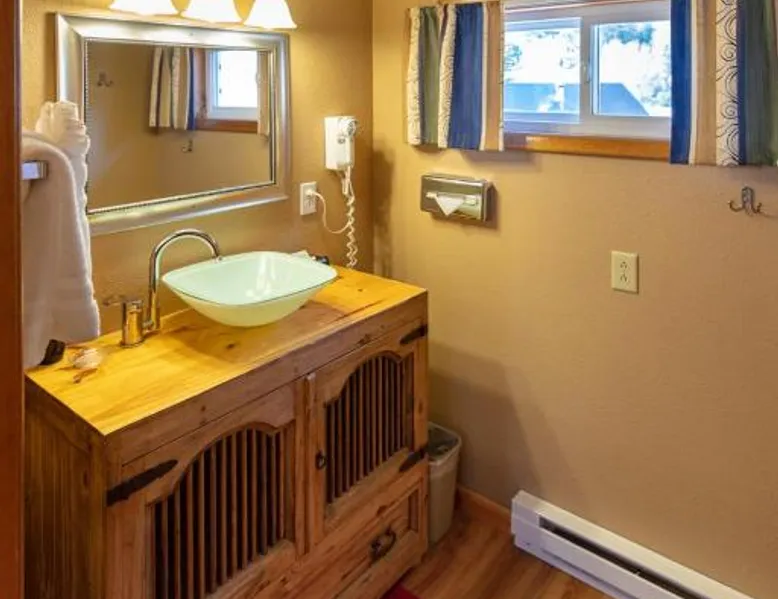 Offering cozy rooms and a complimentary breakfast and happy hour, this inn is located in the middle of Ouray. Ouray Hot Springs Pool is a 10 minute walk from the inn and the Ouray Ice Park is 1 mi away. Each air-conditioned room features a private entrance, a small refrigerator and coffee-making facilities. Along with free wi-fi and a flat-screen cable TV. An private bathroom with a hairdryer is also included. Rooms that accommodate dogs are limited but available on request. Please call prior to arrival to reserve. Dogs are not allowed to be left unattended in any room. There is a $40/dog fee for the stay. No other animals are allowed. An on site manager is available to assist guests at any time day or night. Call/text any time with needs. The office is open from 7:30am-8:pm. Snacks and drinks are available for purchase in the lobby during office hours. The property provides free parking. This air-conditioned room features a private entrance, a flat-screen cable TV and coffee-making facilities. An private bathroom is also included. Does not accommodate dogs.