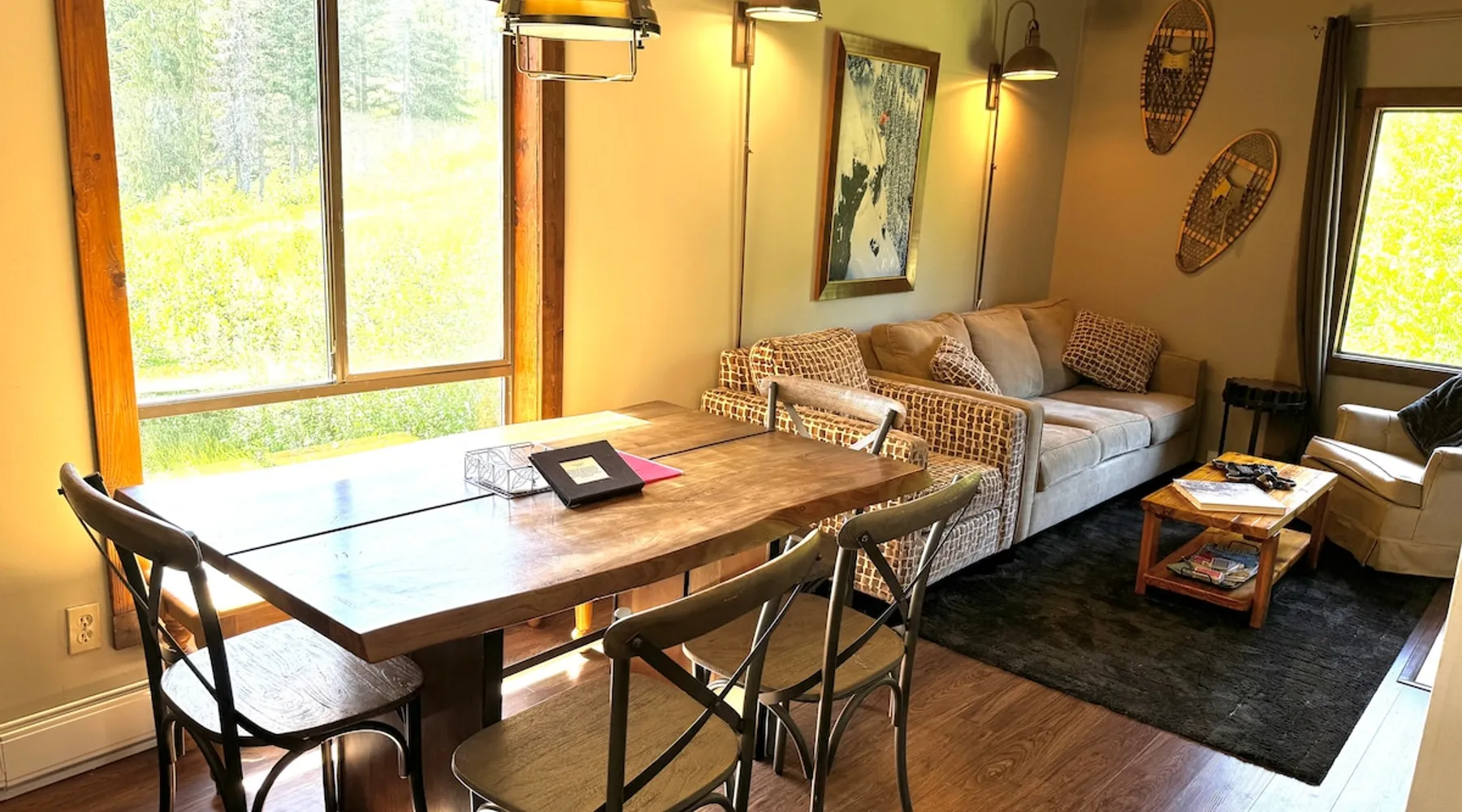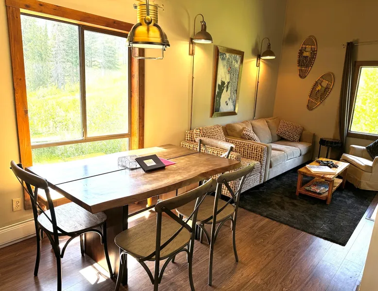 Beautiful unit with plenty of sleeping/hang out areas and amazing Mountain Side Views. Less than 5 min walk to Sasquatch Resorts Summer Activities or Restaurant. Main living area, master & main bath, are perfect for those with a little less mobility thanks to no stairs and on 1st Floor. Enjoy the view; hike the Mt; take a-stroll past unique cabins; play in the games room; or Warm Up in the Hot Tub/Sauna. Outdoor Pool Opening Soon! You will not regret this getaway 6 Adult Max + Kids H102650208 The space Fully stocked kitchen Corner unit with extra light 1 Designated underground parking space 4 sleep areas. 1st-fully enclosed Master bedroom. 2nd -Full Height loft over main living area. 3rd- Separated from the other areas of the unit by a dividing door. Includes second Bathroom, Separate entrance/Exit, Queen bed, Queen Pull out, and 4th Sleeping areas 4th- Half height loft above 3rd sleeping area. Includes 4 foam twin Mattresses. Guest access Some shared amenities Swimming pool(summer) Hot tub Sauna Bonfire pit Kids games room with air hockey, satellite TV , ping pong and board games 1 underground parking space with a availability of extra outdoor spots. Other things to note Remote location, with last 20 min to destination up Mountain road ( half paved/half gravel) Local Restaurant/Pub - 5 min walk **Note:Children not allowed in the pub after 8 PM See resort website for Summer Hours Arial Adventure Park- Book ahead, seems to book up -5 Min Walk Resort Posting New summer activities & Events Daily… Keep an eye on their website for info! * No Local Grocery Store Registration Details Provincial registration number: H102650208