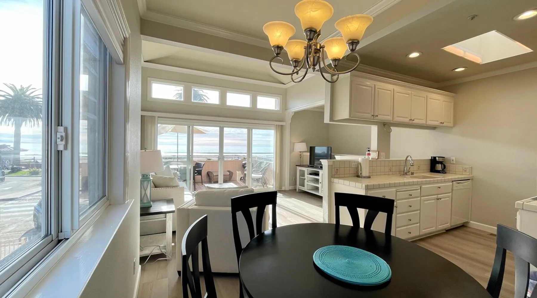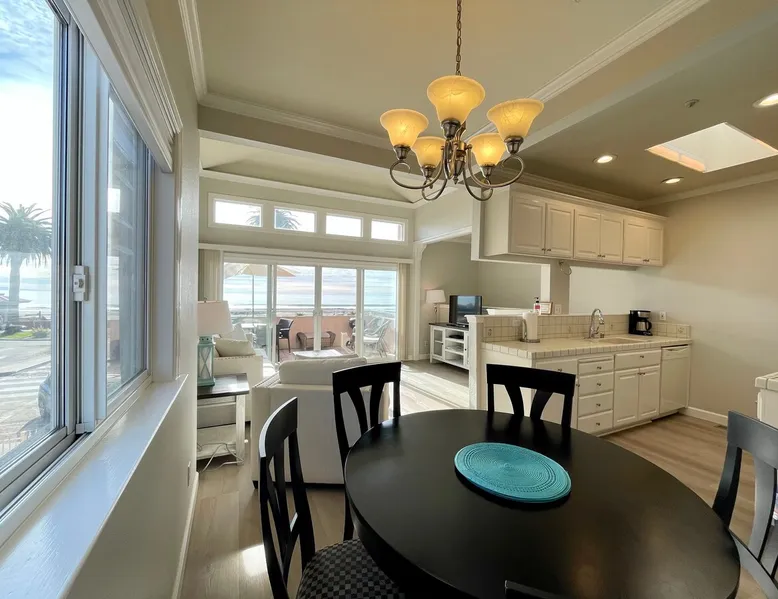 Newly renovated 2 bedroom & 1 bath ocean view home located across the street from Rio Del Mar Beach. Enjoy long walks along the beach or relax on the deck and take in the view. Centrally located to enjoy all the Monterey Bay has to offer. Just steps to Pixies Deli, Market and Cafe Rio restaurant. There is private gated parking as well for two cars. This home does not provide beach chairs. The space Lovely, newly renovated 2 bedroom 1 bath home located across the street from Rio Del Mar Beach. High ceilings throughout with a bright open living space and enclosed upper deck offering outdoor furniture and a charcoal barbecue. Great views from deck and living room. Right next door to Cafe Rio Restaurant, Flats Bistro, Pixie Deli, and Rio Market. Less than one mile to Rancho Del Mar shopping center and Deer Park Shopping Center, which offers a multitude of shops, restaurants and grocery stores. This home also offers secured gated parking for 2 cars. Entire living space and bedrooms are all upstairs, please note that if you have anyone who cannot go upstairs easily. There are 2 queen rooms upstairs as well as a full bath with tub shower. There is also a queen aerobed should you have an extra guest. This home also offers a separate laundry room with additional storage. Should you have a larger group, please inquire we have a 3 bedroom right next door. This home is next door and and makes a great vacation spot for larger families when you rent both homes. Guest access You will have full access to the beach house, the parking area is shared with the next door unit. Parking is completely gates and this unit offers 2 spaces. Other things to note Please check in at Cheshire Rio Reality right next door, if you are going to be arriving after 5 pm let us know in advance so we can plan accordingly. We supply a starter pack of supplies for your use, 3 toilet rolls per bath, a couple paper towels, sponge, dish pods, and cleaning supplies. Tenant is responsible for anything more they may need with regards to the paper products supplied, plenty for a long weekend. KEYS: No keys will be issued to anyone under the age of 21 NO FIREWORKS: Fireworks are illegal and use of them will result in eviction from property and forfeiture of your deposit ALL UNITS ARE NON SMOKING; if you must smoke, please do so outside with the doors and windows closed. Smoking in the properties, or evidence of smoke in the properties will result in forfeiture of your deposit. NO PETS ALLOWED, except in designated properties. Violation of the pet rules may result in forfeiture of your deposit. WIFI, CABLE, PGE RECEPTION IS NOT GUARANTEED BY CHESHIRE RIO REALTY. Refunds are not normally given if these services are interrupted during your stay by the service provider. ITEMS THAT MAY RESULT IN AN EXTRA CHARGE • Lost or missing keys: Could be charged for a full rekey of the property • Overcrowding or excessive noise: Forfeiture of deposit • Stains on carpet or furniture • Furniture not put back in the original position • Lost or missing TV or AV remotes • Broken screens, windows, furniture etc: Repair or replacement cost • Excessive trash: $35-$100, depending on amount • Late departures without approval: $25.00 per 15min intervals. • Excessive sand left in property $35.00 per housekeeper • Property left excessively dirty $35.00 per housekeeper