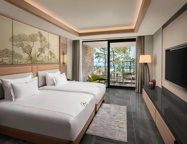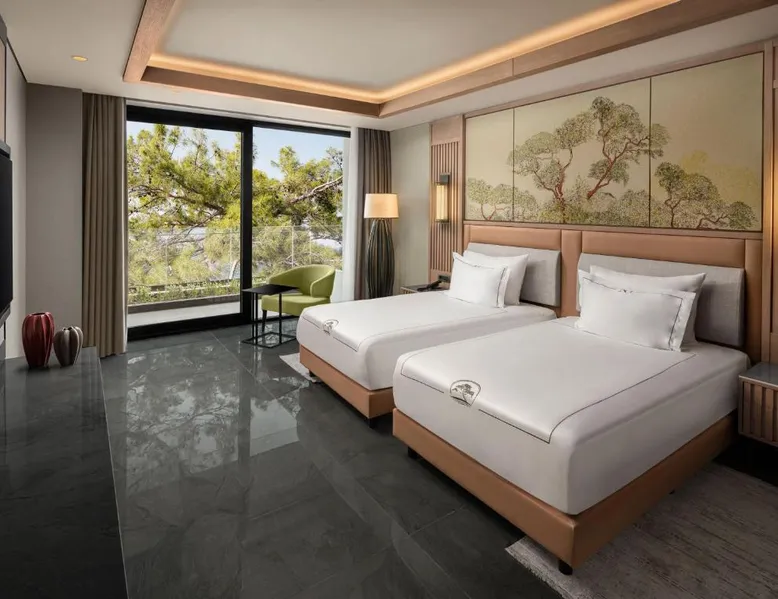 Just a few steps from the seafront, NG Phaselis Bay offers a private beach area, outdoor pool with waterslides and spa facilities. It offers air-conditioned accommodations with a satellite TV and balcony. All rooms and suites at NG Phaselis Bay come with a 32” flat-screen TV, safe and mini-bar. You can taste buffet breakfast, late breakfast, lunch and dinner at the Cuisine Main Restaurant. Local snacks such as gozleme (Turkish pancake), ice-cream, refreshing drinks are served during the day. Spa facilities include a Turkish bath, sauna and massage facilities. Live music and entertainment shows are available at nights. Younger guests can enjoy various activities at the mini club. Less than 4.3 mi to Kemer town center, NG Phaselis Bay is 12 mi to the ancient Lycian city Phaselis. Antalya Airport is a 1-hour drive away. Offering a balcony or terrace and views of the forest, this unit is composed of 2 bedrooms, 2 bathrooms, a mini-bar, a TV and tea and coffee making facilities. Located in Hillside building.