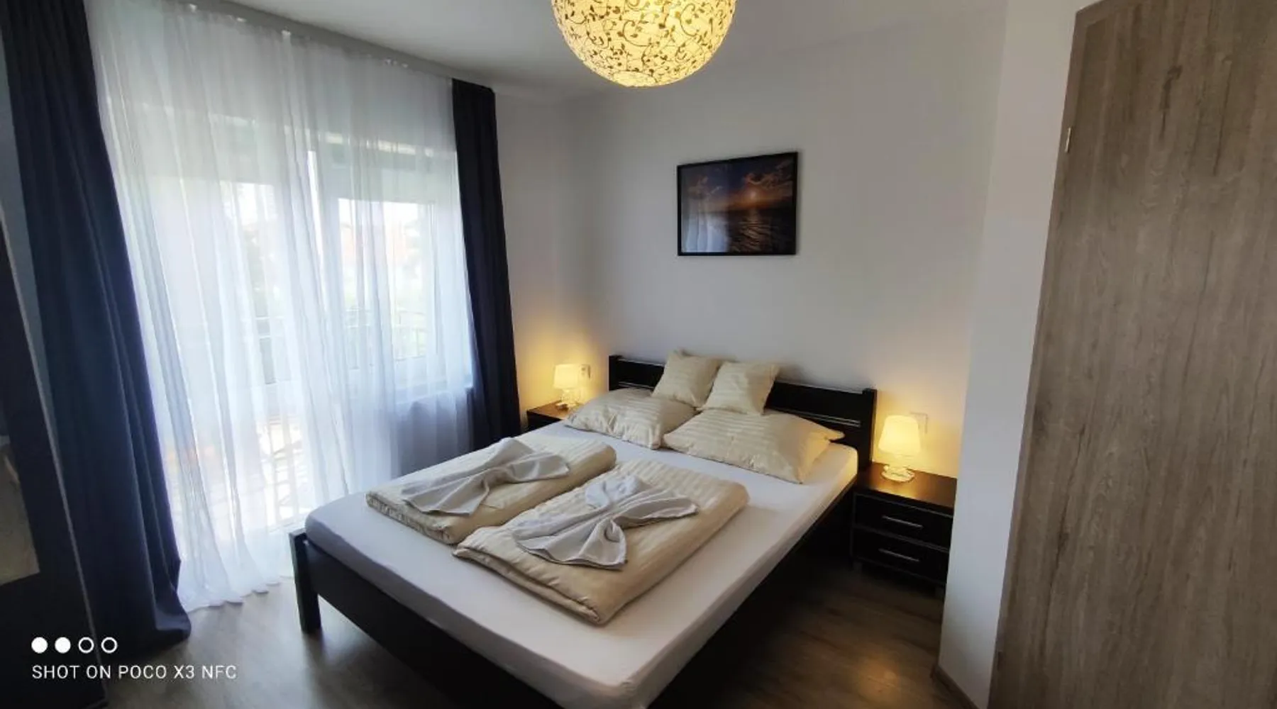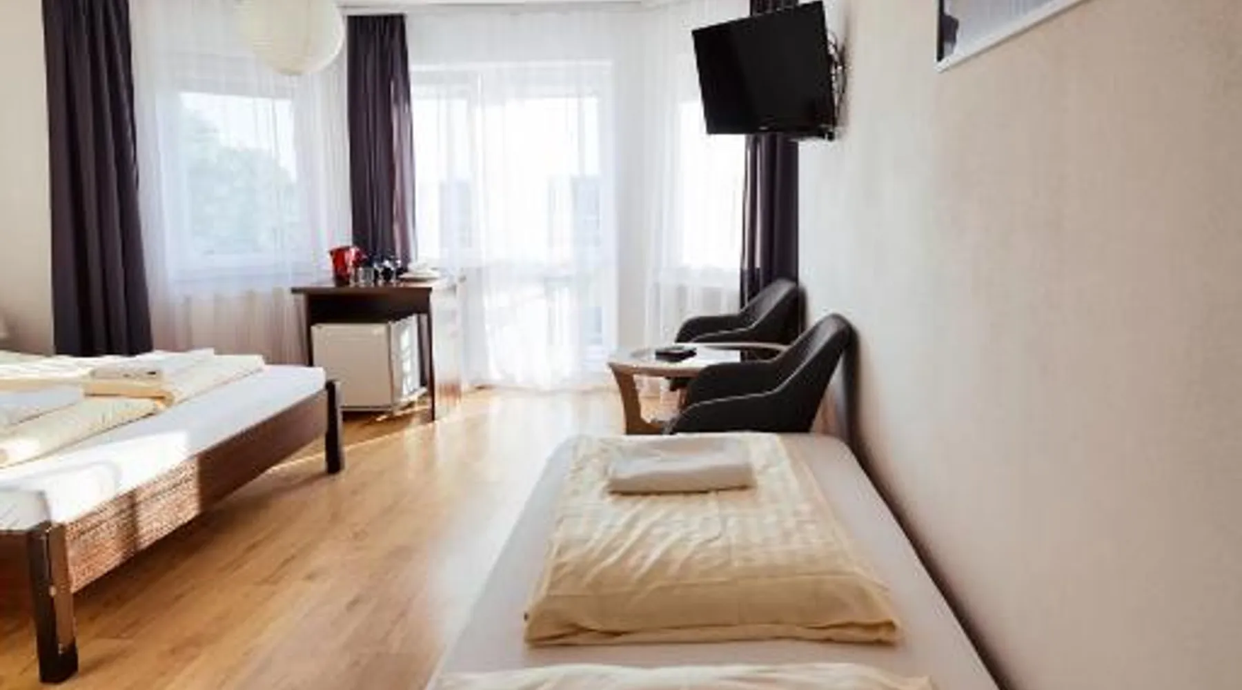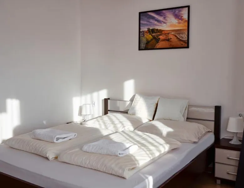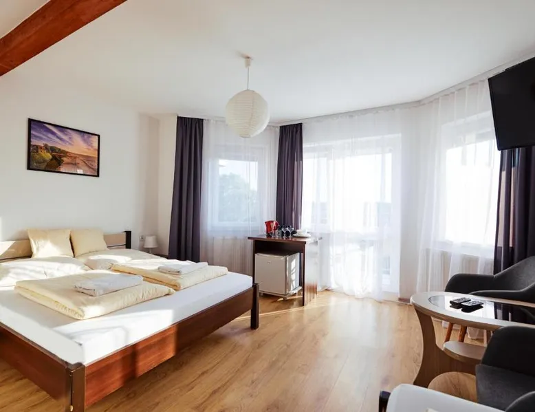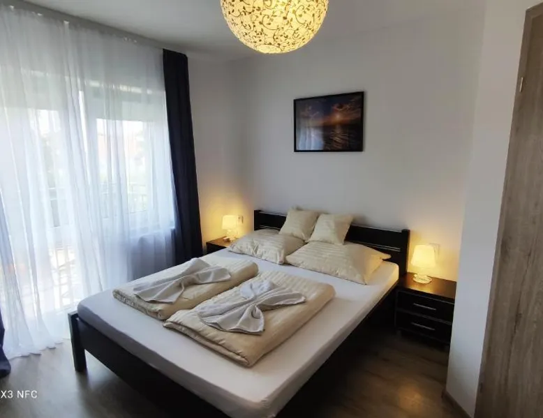 Comfortable Accommodations: VIPABO SolneSPA in Niechorze offers recently renovated holiday park accommodations with private bathrooms, balconies, and sea views. Each unit includes a dining area, kitchen facilities, and modern amenities. Spa Facilities: Guests can relax in the sauna, steam room, or hot tub. The property features a garden, outdoor fireplace, and outdoor seating areas. Free WiFi is available throughout the park. Dining Experience: A buffet breakfast is served daily, including warm dishes, fresh pastries, pancakes, cheese, fruits, and juice. Additional amenities include a minimarket, barbecue facilities, and outdoor play area. Nearby Attractions: Niechorze Beach is a 6-minute walk away. Other attractions include Kolobrzeg Old Town Hall (29 mi) and Amber Baltic Golf Club (24 mi). Free on-site private parking is provided. The twin room features a tea and coffee maker, a wardrobe, a balcony with garden views as well as a private bathroom boasting a walk-in shower. The unit has 2 beds.