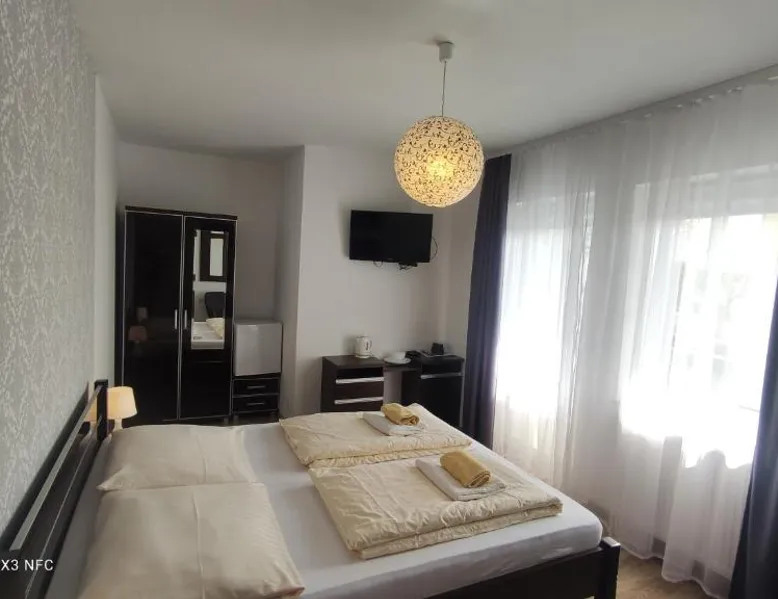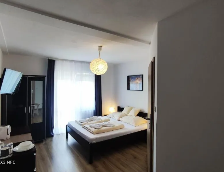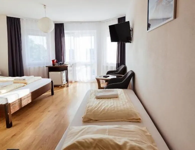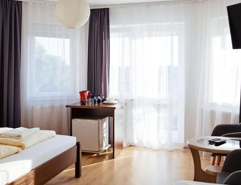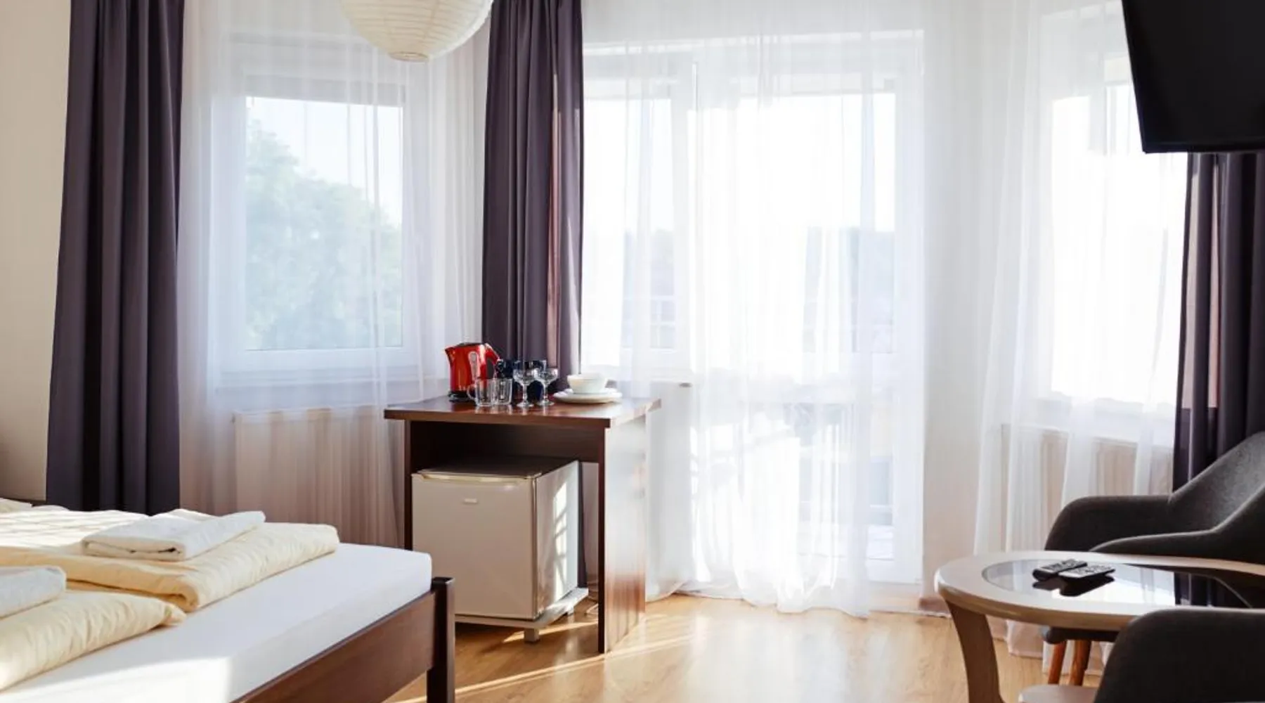 Comfortable Accommodations: VIPABO SolneSPA in Niechorze offers recently renovated holiday park accommodations with private bathrooms, balconies, and sea views. Each unit includes a dining area, kitchen facilities, and modern amenities. Spa Facilities: Guests can relax in the sauna, steam room, or hot tub. The property features a garden, outdoor fireplace, and outdoor seating areas. Free WiFi is available throughout the park. Dining Experience: A buffet breakfast is served daily, including warm dishes, fresh pastries, pancakes, cheese, fruits, and juice. Additional amenities include a minimarket, barbecue facilities, and outdoor play area. Nearby Attractions: Niechorze Beach is a 6-minute walk away. Other attractions include Kolobrzeg Old Town Hall (29 mi) and Amber Baltic Golf Club (24 mi). Free on-site private parking is provided. The twin room features a tea and coffee maker, a wardrobe, a balcony with garden views as well as a private bathroom boasting a walk-in shower. The unit has 2 beds.