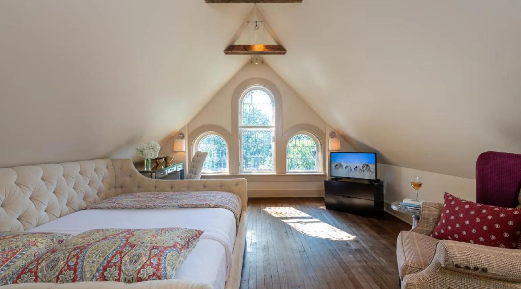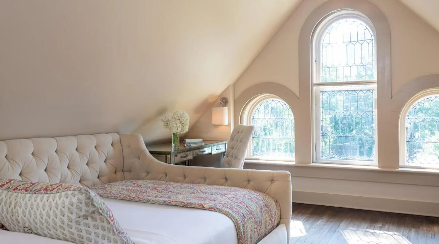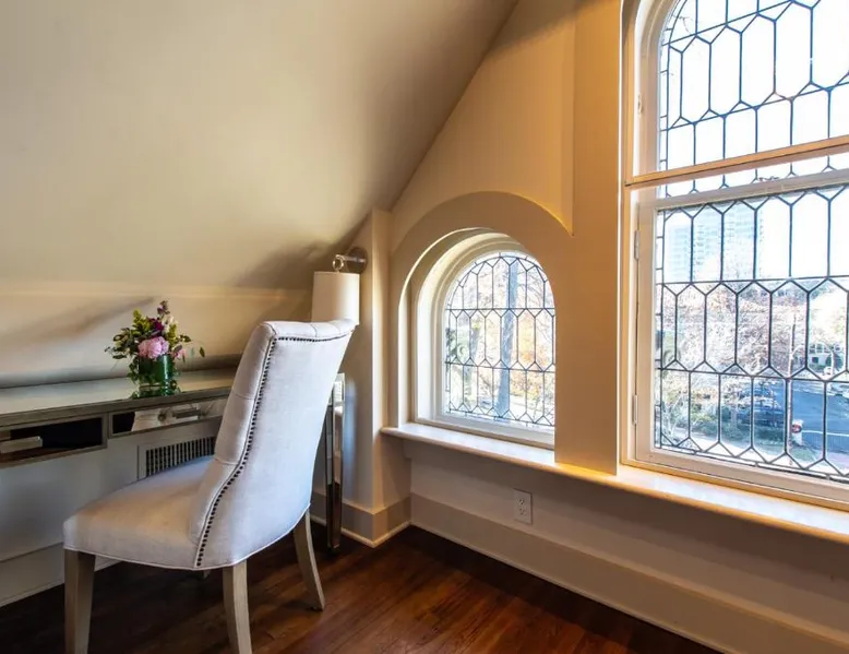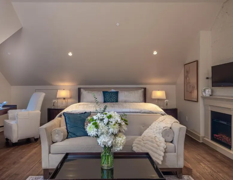 Historic Setting: Stonehurst Place Bed & Breakfast in Atlanta is housed in a historic building, offering a unique and elegant atmosphere. The property is highly rated for its attentive host and excellent breakfast. Comfortable Accommodations: Rooms feature air-conditioning, private bathrooms, and modern amenities. Guests enjoy garden or city views, soundproofing, and free WiFi throughout the property. Leisure Facilities: The hotel includes a garden, terrace, hot tub, and outdoor seating area. Additional amenities include a lounge, concierge service, and electric vehicle charging station. Prime Location: Located near Margaret Mitchell House (7-minute walk), Marta-Midtown Station (2625 feet), and Technology Square (0.7 mi). Guests appreciate the convenient location and proximity to attractions. Also known as the Eaves room, this spacious room features a flat-screen TV and an iPod docking station.