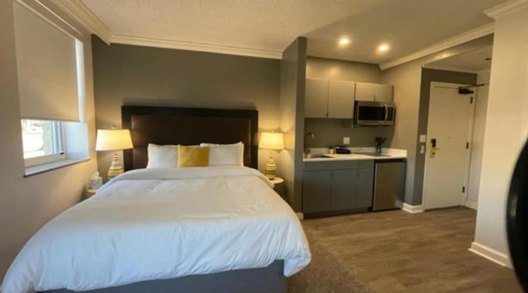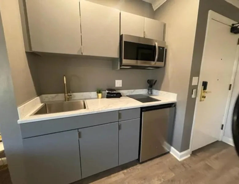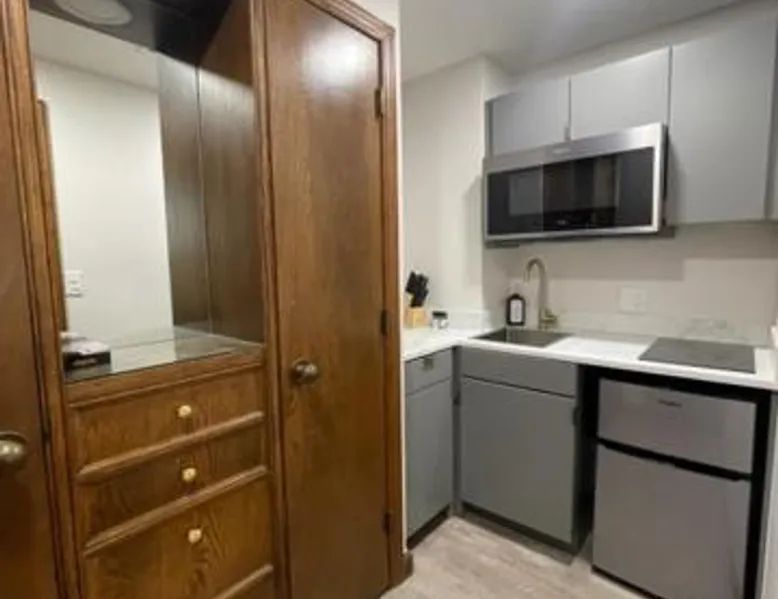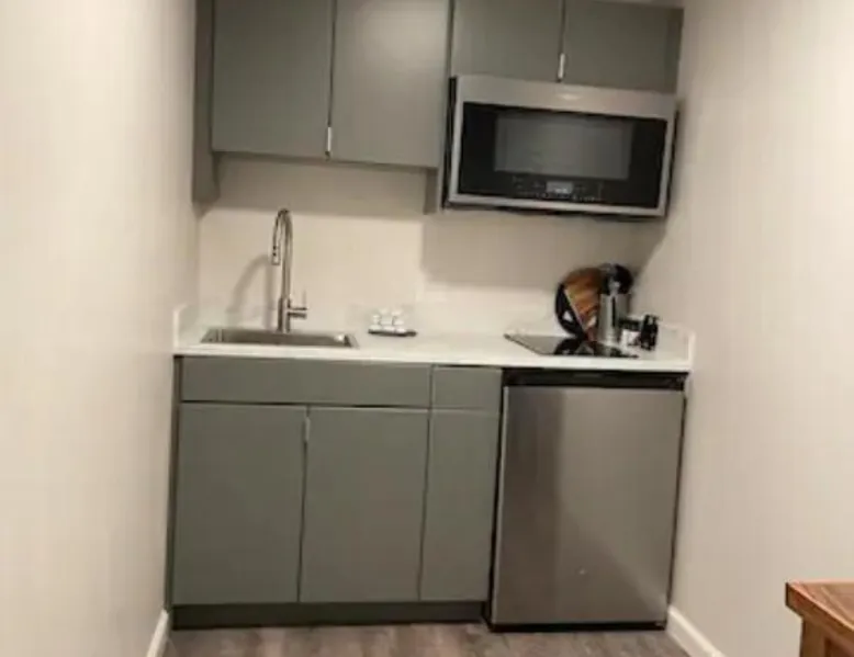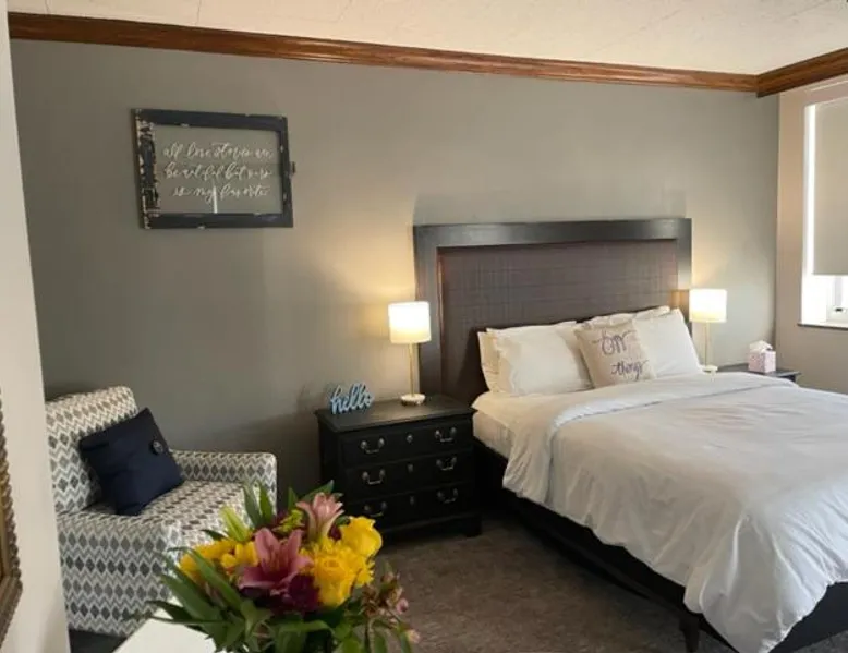 Elegant Accommodations: Hotel Phillips in Bartlesville offers a 5-star experience with a fitness center, sun terrace, restaurant, and free WiFi. Guests enjoy private check-in and check-out, a lounge, and full-day security. Comfortable Amenities: Rooms feature air-conditioning, private bathrooms, city views, and modern amenities such as streaming services and free toiletries. Additional facilities include a kitchenette, patio, and outdoor seating area. Dining Options: The family-friendly restaurant serves brunch, lunch, dinner, and high tea in a welcoming ambiance. Guests can also enjoy cycling activities and free on-site private parking. Prime Location: Located 43 mi from Tulsa International Airport, Hotel Phillips is highly rated for its convenient location, room cleanliness, and comfort. This suite consists of 1 living room, 1 separate bedroom and 1 bathroom with a shower and free toiletries. The well-fitted kitchen features a stovetop, a refrigerator, kitchenware and a microwave. The air-conditioned suite provides a flat-screen TV with streaming services, a tea and coffee maker, a seating area, a carpeted floor as well as city views. The unit offers 1 bed.