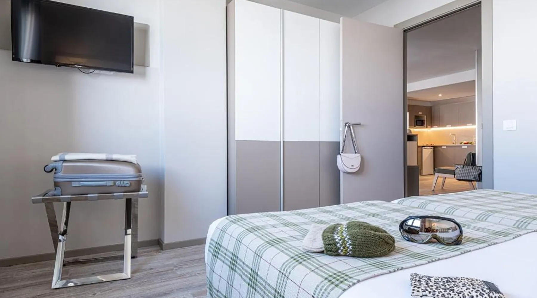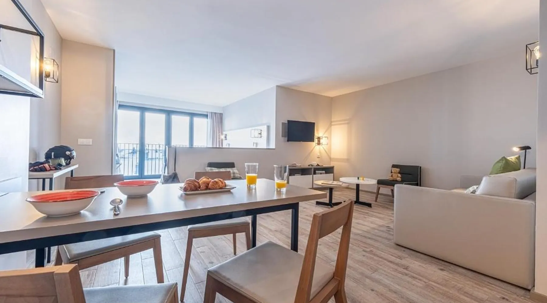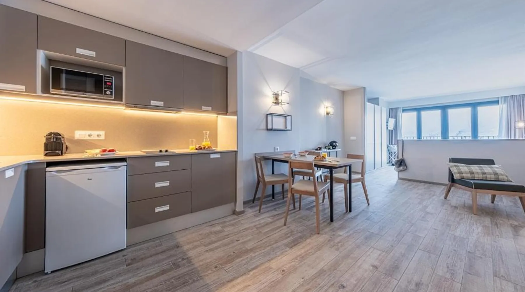 Comfortable Accommodations: Apartamentos Caribou in Pas de la Casa offers 2-star apartments with ski-to-door access, a bar, and free WiFi. Private check-in and check-out services, a lounge, and a 24-hour front desk ensure a pleasant stay. Modern Amenities: Each apartment features a kitchenette, private bathroom, and a dining area. Additional amenities include a coffee machine, refrigerator, work desk, and parquet floors. Guests can enjoy a ski pass sales point, minimarket, coffee shop, and tour desk. Prime Location: Located 12 mi from Meritxell sanctuary and 26 mi from Naturland, the property is ideal for winter sports enthusiasts. Nearby attractions include Estadi Comunal de Aixovall and Golf Vall d'Ordino. Paid on-site private parking is available. Guest Satisfaction: Highly rated for its convenience for ski trips, convenient location, and room cleanliness, Apartamentos Caribou provides a comfortable and hassle-free stay. This apartment includes 1 living room, 1 separate bedroom and 1 bathroom with a shower. Meals can be prepared in the kitchen, which has a stovetop, a refrigerator, kitchenware and a microwave. The apartment has parquet floors, a seating area with a flat-screen TV, a coffee machine, a dining area, as well as a wardrobe. The unit has 4 beds.