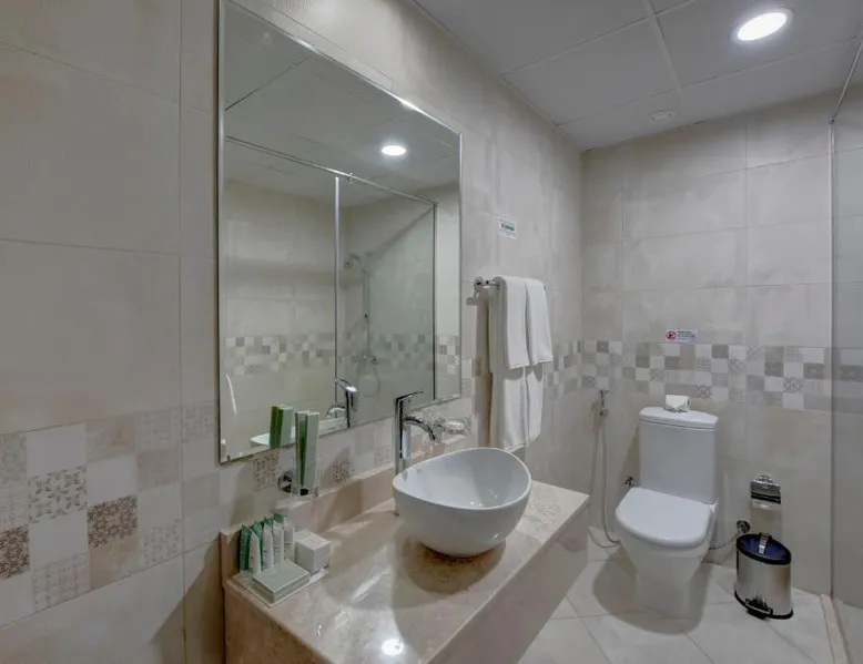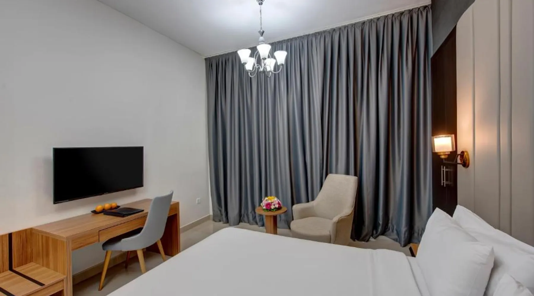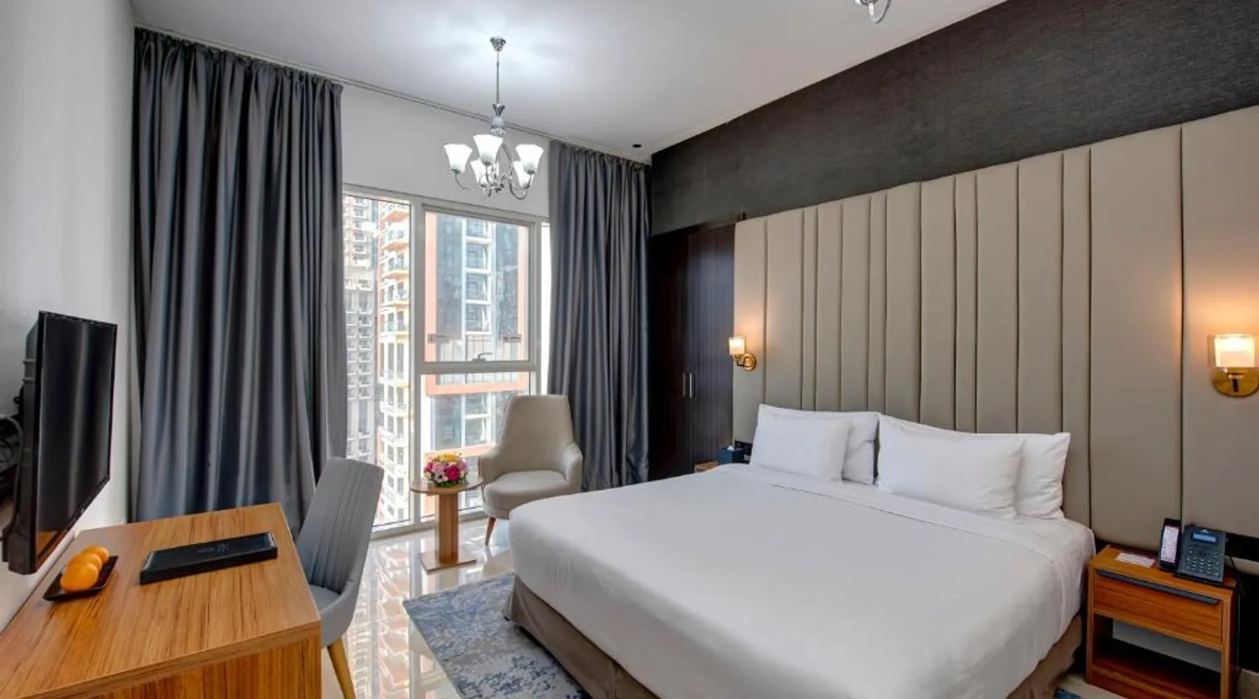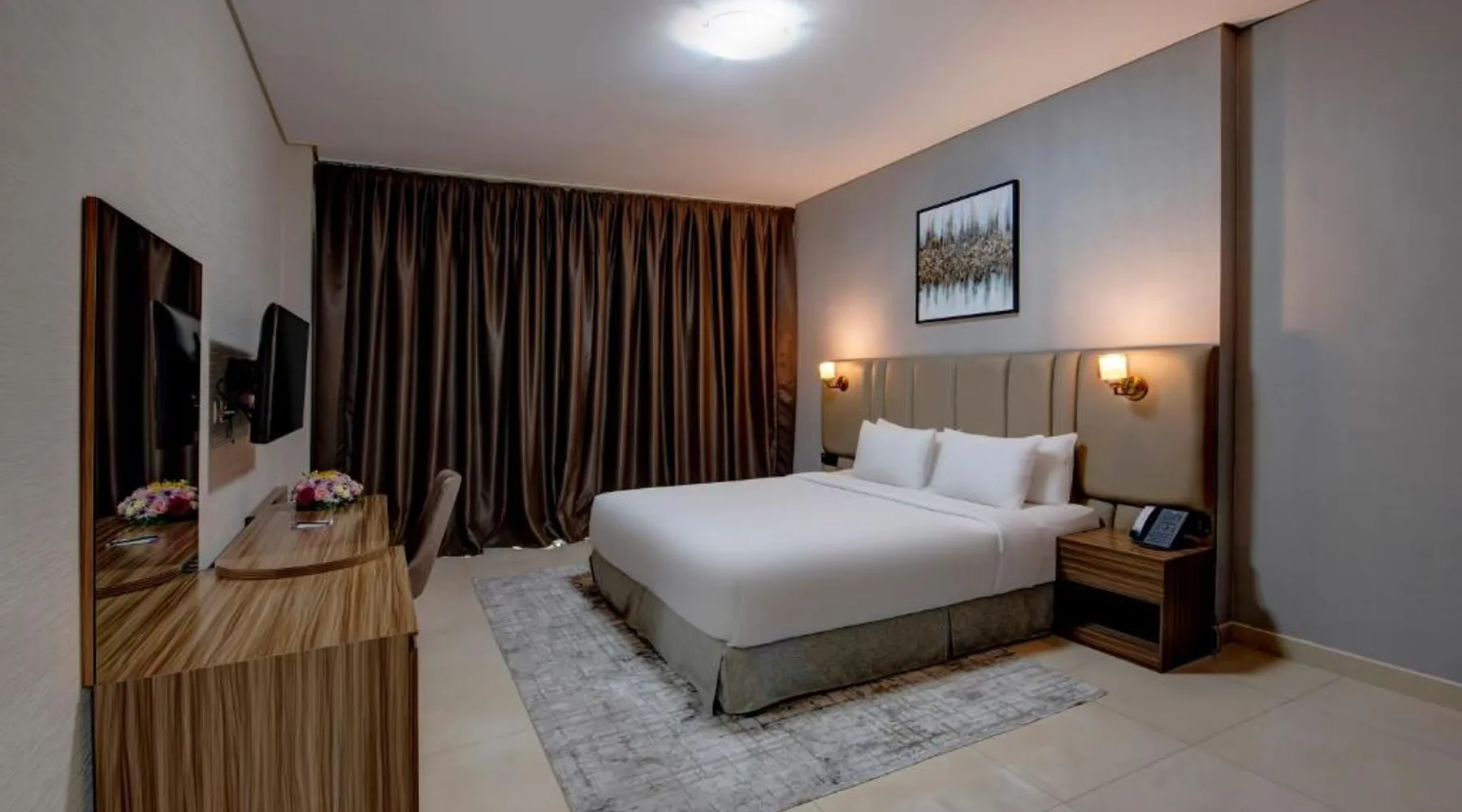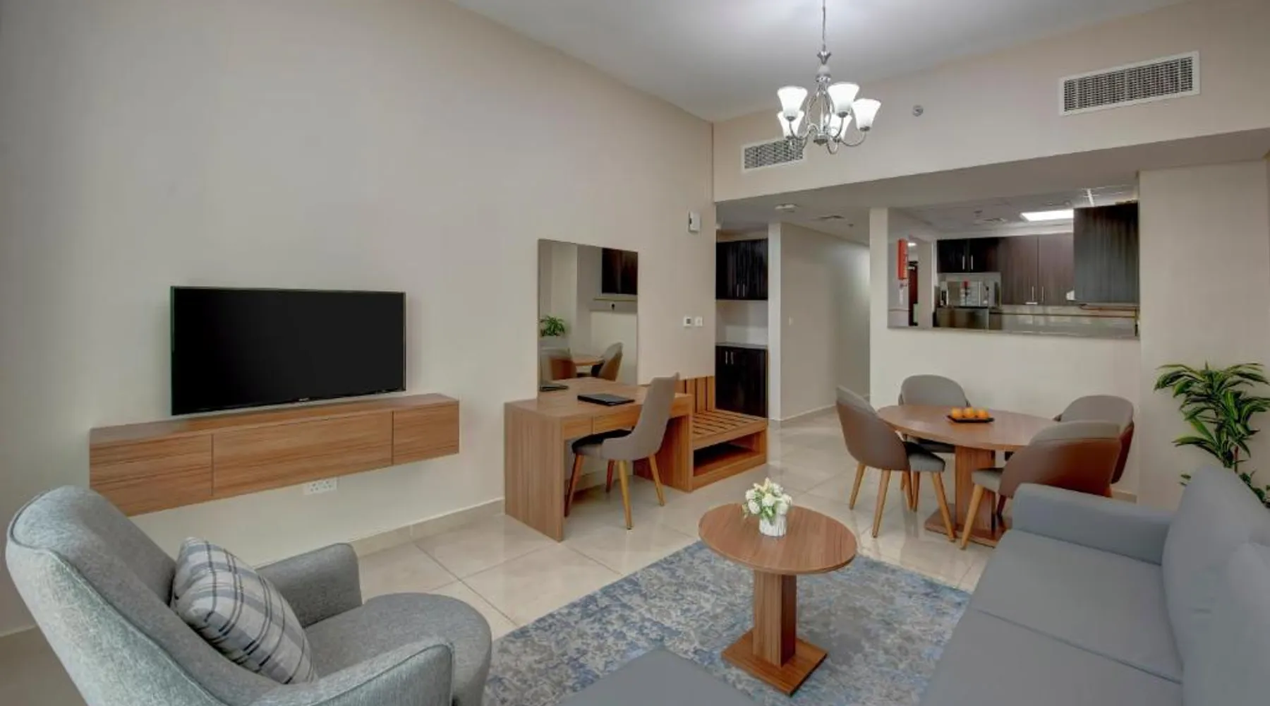 Elegant Accommodations: Regency Luxury Suites in Dubai offers an aparthotel with a rooftop swimming pool, fitness center, restaurant, and free WiFi. Guests enjoy modern amenities including a fitness room, elevator, 24-hour front desk, and concierge service. Comfortable Living: Each suite features air-conditioning, a kitchenette, private bathroom, and a dining area. Additional amenities include a terrace, balcony, and free toiletries. The property offers free on-site private parking, bicycle parking, and a tour desk. Dining Experience: The modern restaurant serves Indian, Russian, local, Asian, and international cuisines for lunch and dinner. Breakfast includes continental and buffet options with local specialties, warm dishes, fresh pastries, and more. Prime Location: Located 16 mi from Al Maktoum International Airport, the aparthotel is a 15-minute walk from The Walk at JBR. Nearby attractions include Marina Beach (1.2 mi) and Burj Khalifa (13 mi). Guests appreciate the nearby shops and scenic views. This spacious apartment comes with 1 living room, 2 separate bedrooms and 2 bathrooms with a walk-in shower and free toiletries. In the well-equipped kitchen, guests will find a stovetop, a refrigerator, kitchenware and an oven. The air-conditioned apartment features a flat-screen TV with satellite channels, a washing machine, soundproof walls, a tea and coffee maker as well as city views. The unit has 4 beds.