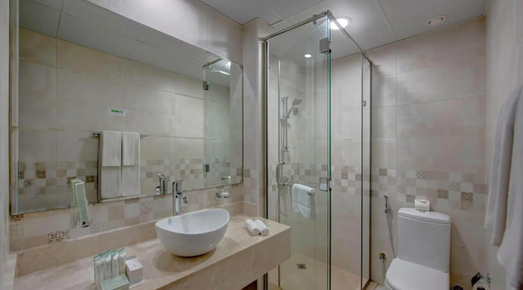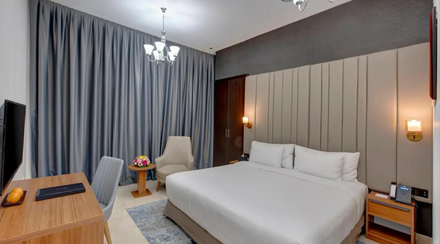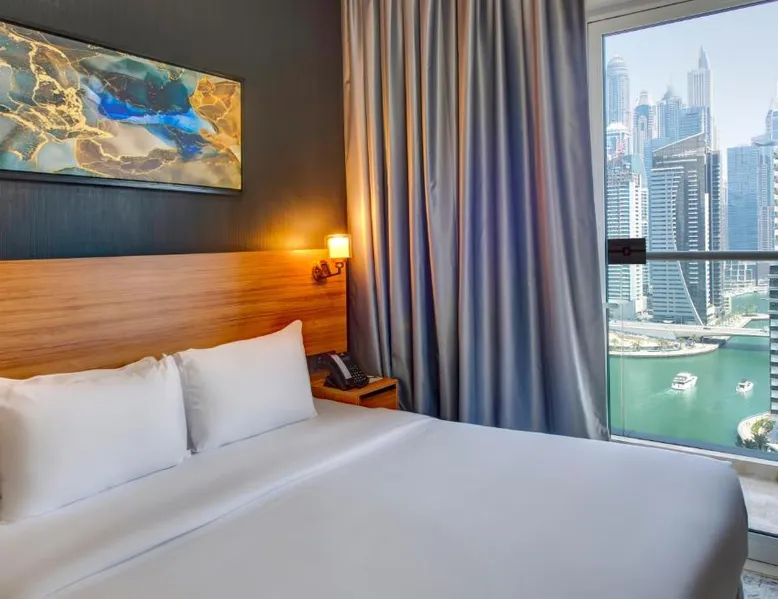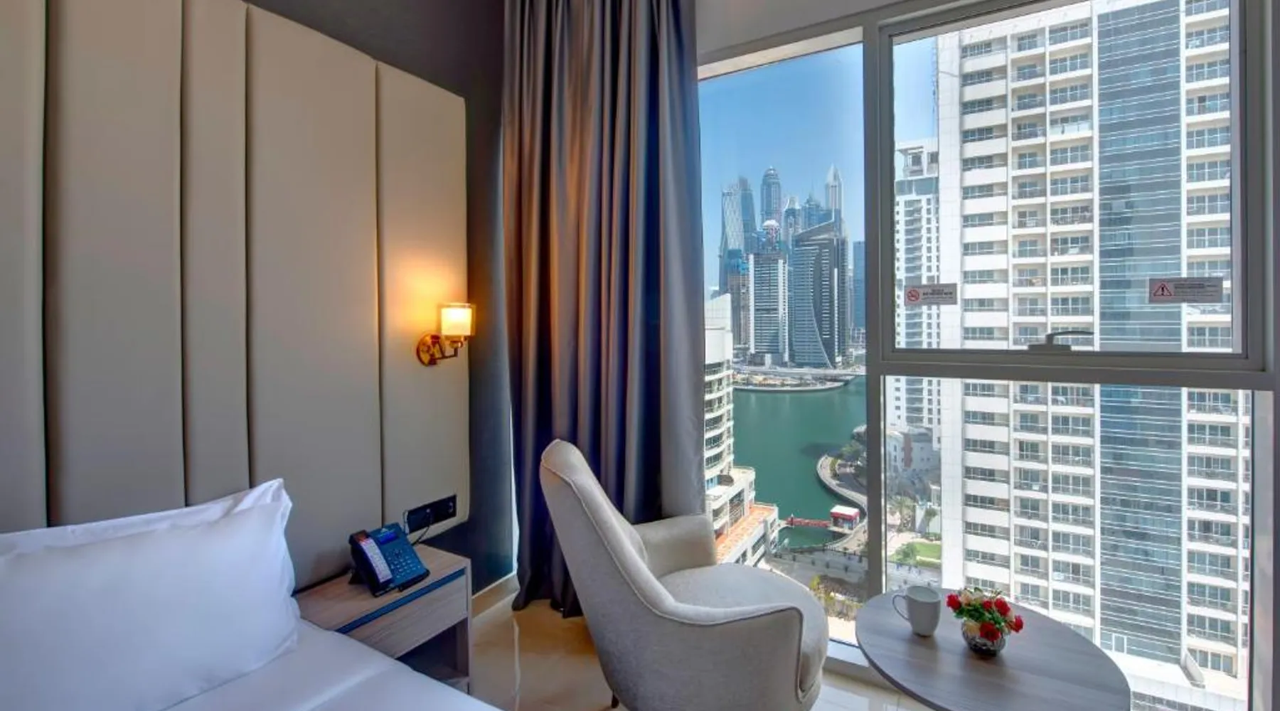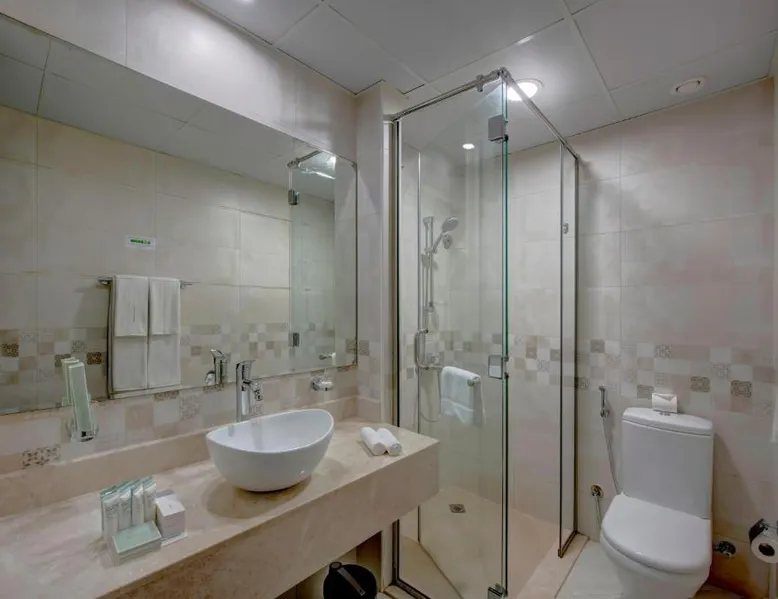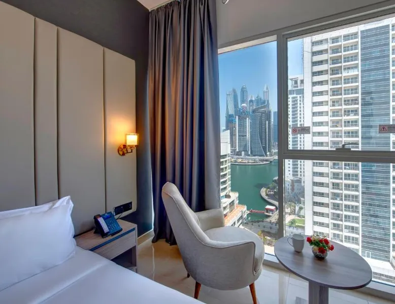 Elegant Accommodations: Regency Luxury Suites in Dubai offers an aparthotel with a rooftop swimming pool, fitness center, restaurant, and free WiFi. Guests enjoy modern amenities including a fitness room, elevator, 24-hour front desk, and concierge service. Comfortable Living: Each suite features air-conditioning, a kitchenette, private bathroom, and a dining area. Additional amenities include a terrace, balcony, and free toiletries. The property offers free on-site private parking, bicycle parking, and a tour desk. Dining Experience: The modern restaurant serves Indian, Russian, local, Asian, and international cuisines for lunch and dinner. Breakfast includes continental and buffet options with local specialties, warm dishes, fresh pastries, and more. Prime Location: Located 16 mi from Al Maktoum International Airport, the aparthotel is a 15-minute walk from The Walk at JBR. Nearby attractions include Marina Beach (1.2 mi) and Burj Khalifa (13 mi). Guests appreciate the nearby shops and scenic views. This spacious apartment comes with 1 living room, 2 separate bedrooms and 2 bathrooms with a walk-in shower and free toiletries. In the well-equipped kitchen, guests will find a stovetop, a refrigerator, kitchenware and an oven. The air-conditioned apartment features a flat-screen TV with satellite channels, a washing machine, soundproof walls, a tea and coffee maker as well as city views. The unit has 4 beds.