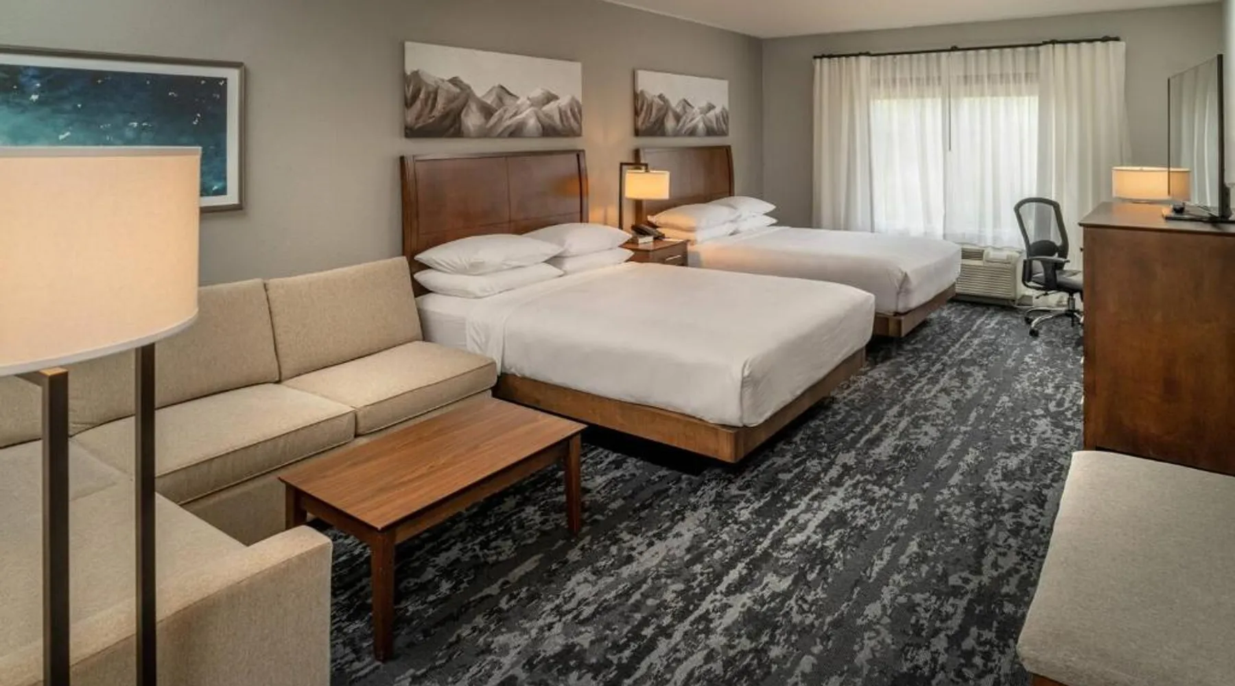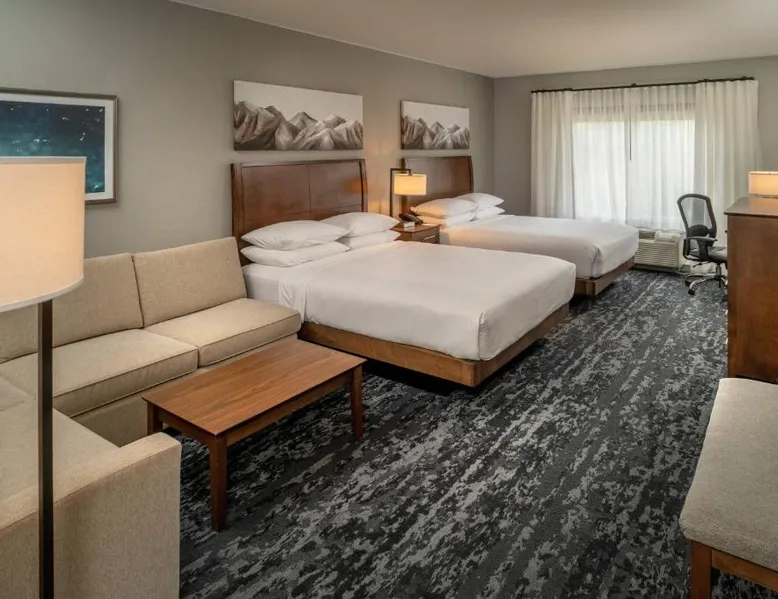 Comfortable Accommodations: Delta Hotels by Marriott Huntington Mall in Barboursville offers family rooms with private bathrooms, air-conditioning, and free WiFi. Each room includes a work desk, TV, and modern amenities. Exceptional Facilities: Guests can enjoy a fitness center, indoor swimming pool, hot tub, and free bicycles. Additional facilities include a restaurant, bar, and outdoor fireplace. Dining Experience: The family-friendly restaurant serves American cuisine for dinner, offering a variety of warm dishes, fresh pastries, and fruits. Breakfast options include American, buffet, and à la carte. Convenient Location: Located 17 mi from Tri-State Airport, the hotel is near attractions such as Joan C Edwards Stadium (6.2 mi) and Marshall University (8.1 mi). Highly rated for its attentive staff and excellent service. The spacious double room provides air conditioning, a tea and coffee maker, as well as a private bathroom featuring a bath and a shower. The double room features a wardrobe, a safe deposit box, a sofa, a carpeted floor, as well as a TV with streaming services. The unit offers 2 beds.