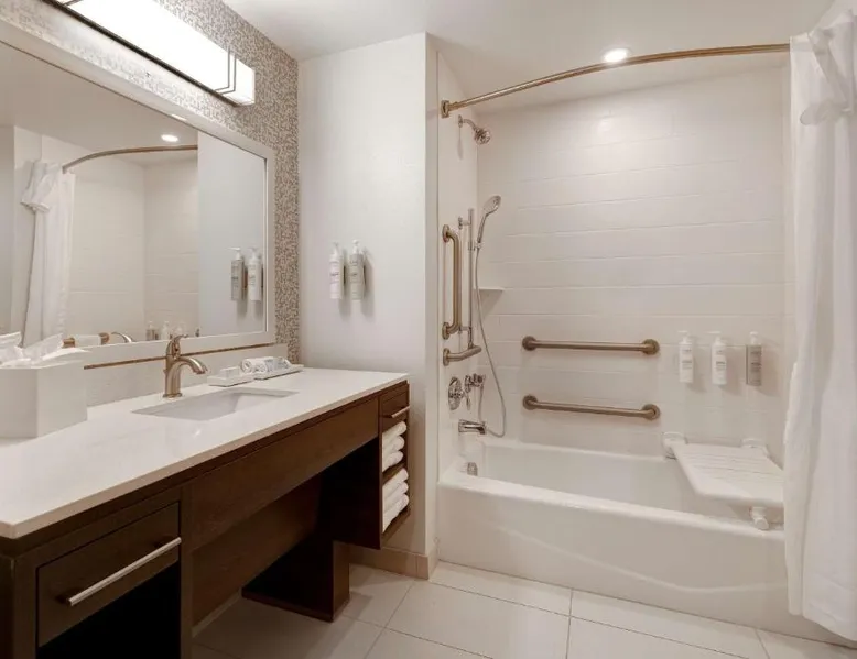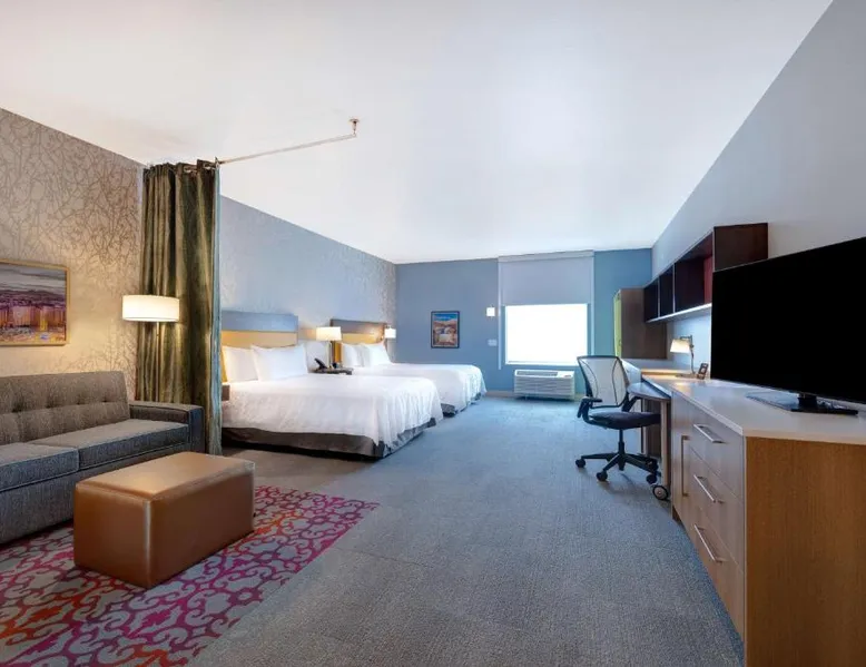 Comfortable Accommodations: Home2 Suites By Hilton Las Vegas Northwest in Las Vegas offers comfortable rooms with air-conditioning, kitchen facilities, and free WiFi. Each room includes a sofa bed, work desk, and TV, ensuring a pleasant stay. Leisure Facilities: Guests can enjoy a fitness center, year-round outdoor swimming pool, and hot tub. Additional amenities include a lounge, outdoor fireplace, and outdoor seating areas, providing ample opportunities for relaxation and socializing. Convenient Location: Located 19 mi from Harry Reid International Airport, the hotel is near attractions such as Tpc Summerlin (8.7 mi) and Floyd Lamb State Park (3.1 mi). Free on-site private parking is available, and cycling activities are nearby. Guest Services: The property offers a 24-hour front desk, daily housekeeping, and express check-in and check-out services. Additional amenities include a business area, electric vehicle charging station, and barbecue facilities, catering to all guest needs. Meals can be prepared in the well-fitted kitchen, which is fitted with a refrigerator, a dishwasher, kitchenware and a microwave. The suite offers air conditioning, a tea and coffee maker, a seating area, heating, as well as a TV with cable channels. The unit has 2 beds.